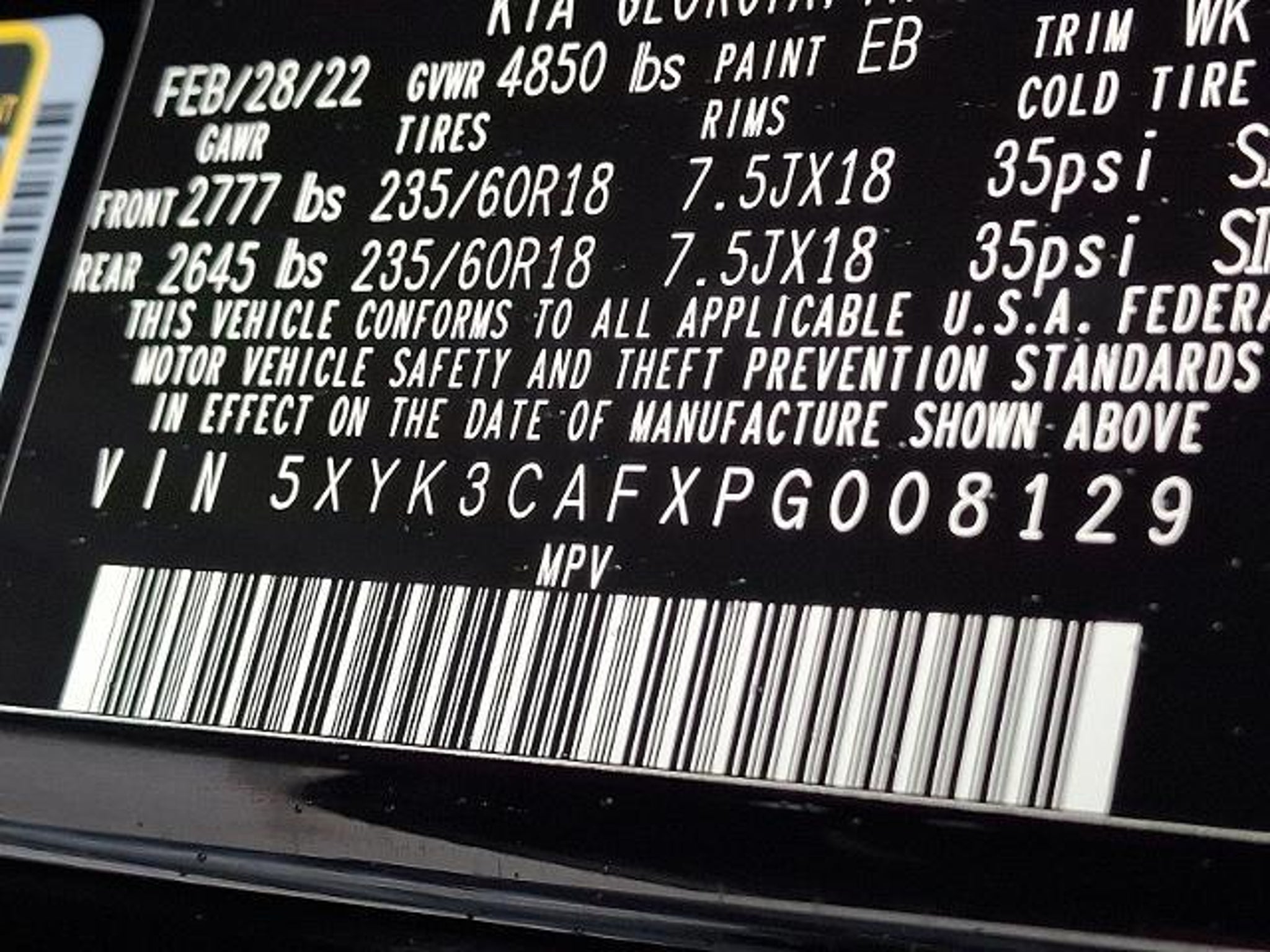 5XYK3CAFXPG008129 |