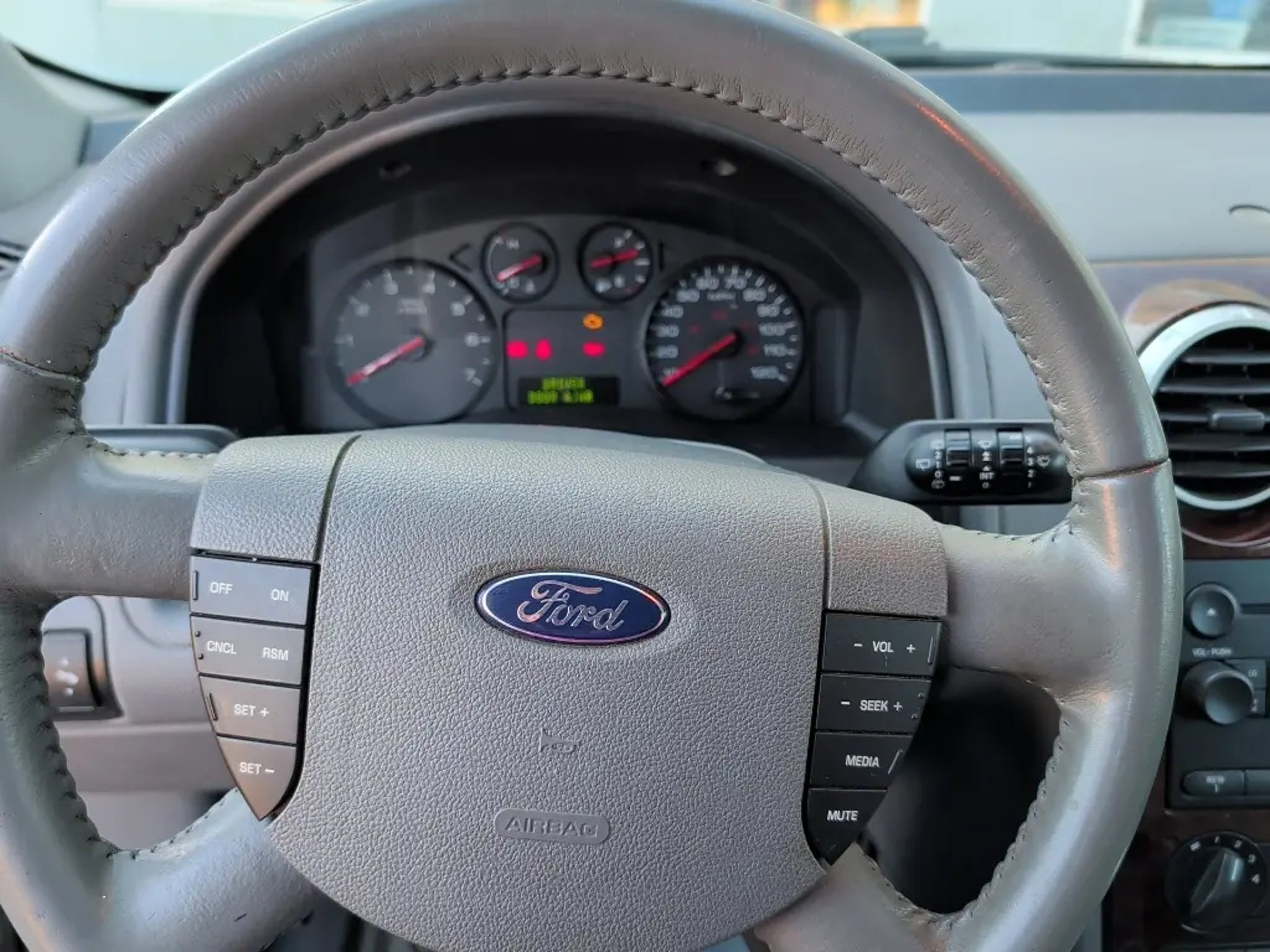 Ford Freestyle FWD Duratec 3.0L V6 24V CVT 17 5-Spoke Bright Aluminum Wheels, 3rd row seats: bench, Alloy wheels, Heated door mirrors, Leather Shift Knob, Leather steering wheel, Panic alarm, Power door mirrors, Power driver seat, Power windows, Remote keyless entry, Security system, Speed control, Steering wheel mounted audio controls. Odometer is 37012 miles below market average! 20/27 City/Highway MPG