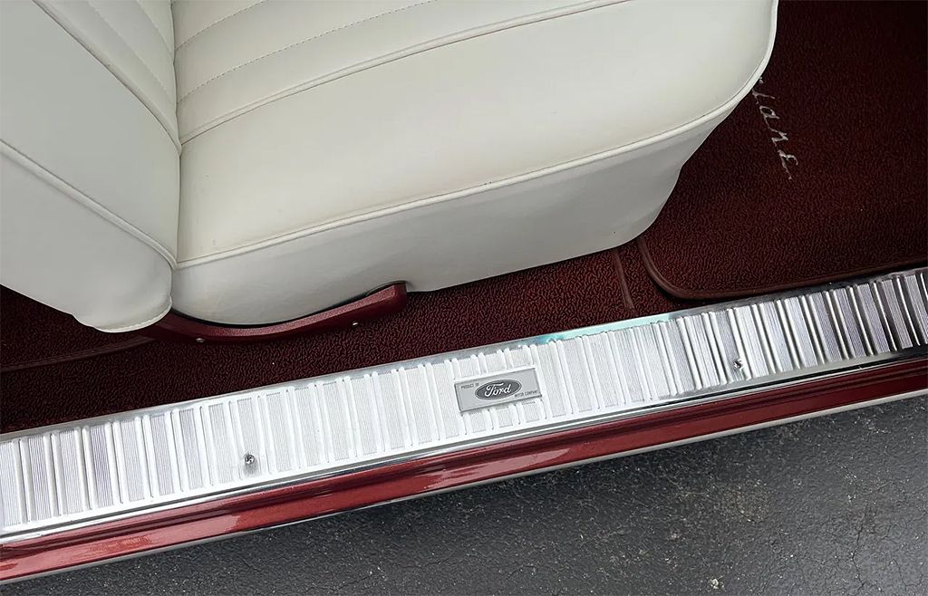 Clean Tennessee car, Recent Body-Up Restoration, beautiful factory (V) Chestnut metallic car, all new white vinyl interior, 302 ci engine, Edelbrock 4 bbl, Edelbrock Performer RPM aluminum intake, mild camshaft, factory exhaust manifolds, HEI distributor, finned aluminum air cleaner & valve covers, aftermarket air conditioning, aluminum radiator with flex fan, automatic transmission, factory bench seat, factory dash & gauges, wood steering wheel, functional am radio, dual exhaust, factory 3.25 rear axle, 205/70R15 tires, new 14” Magnum 500 wheels, dual chrome mirrors, tinted windshield, Drive Anywhere!