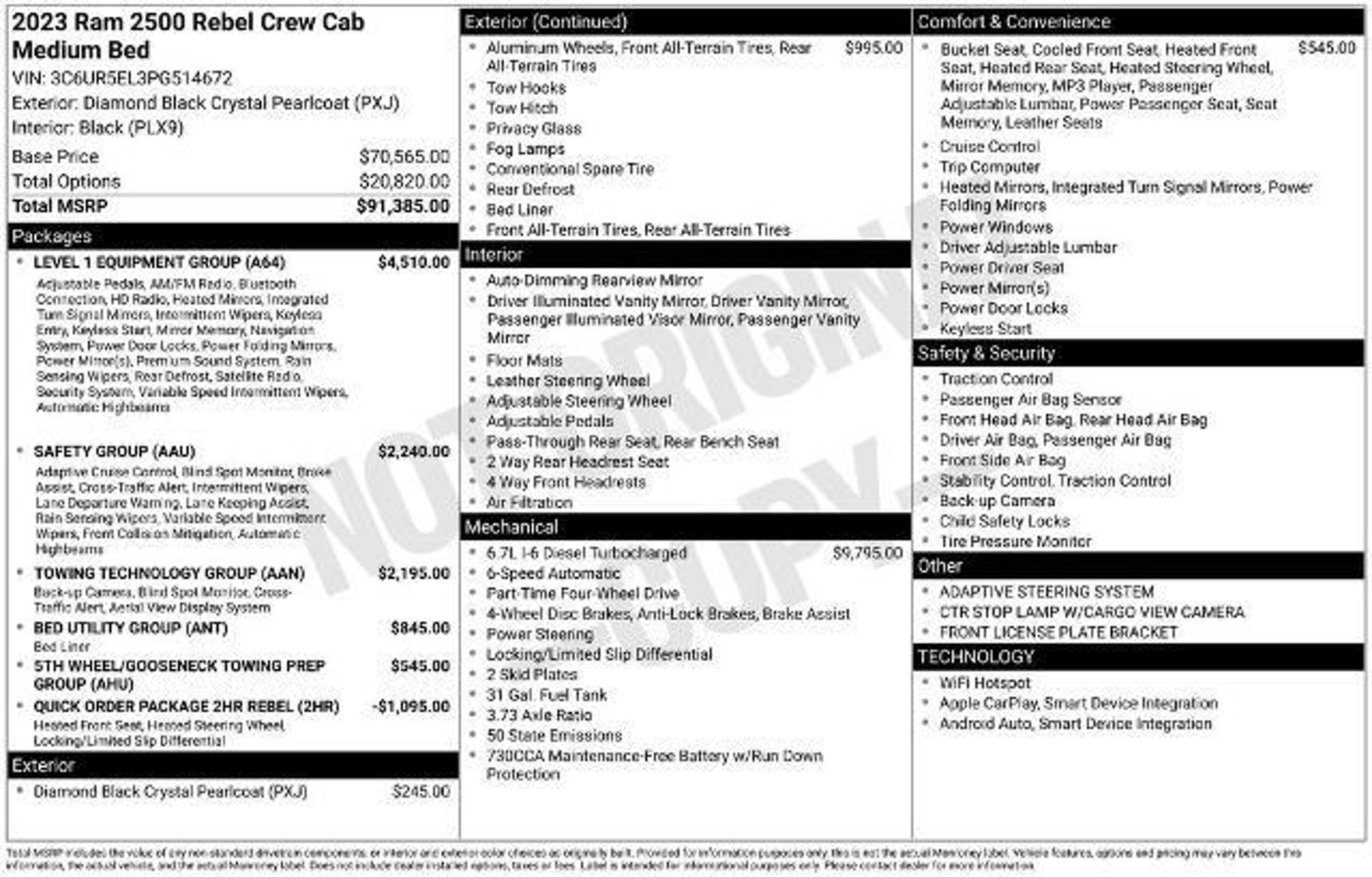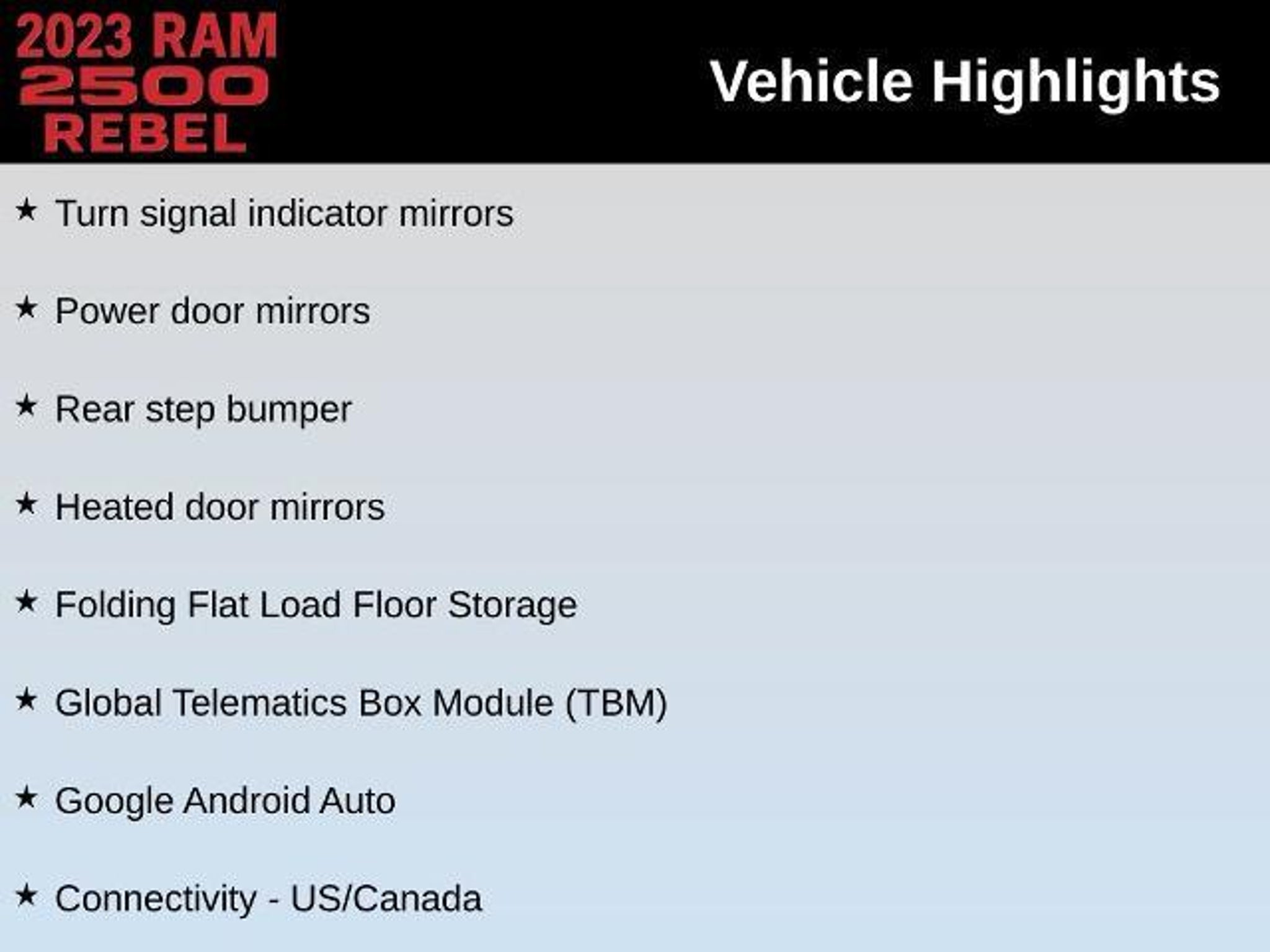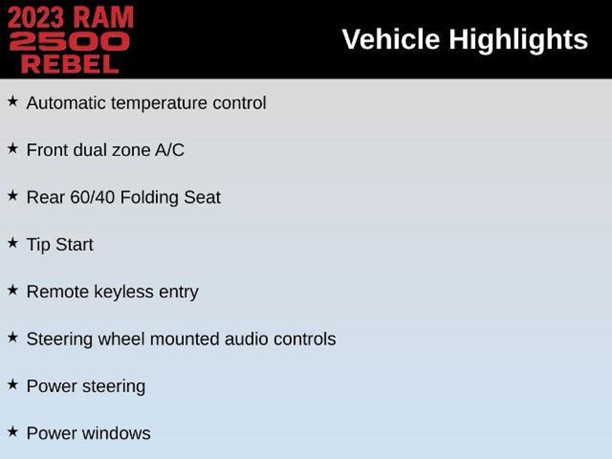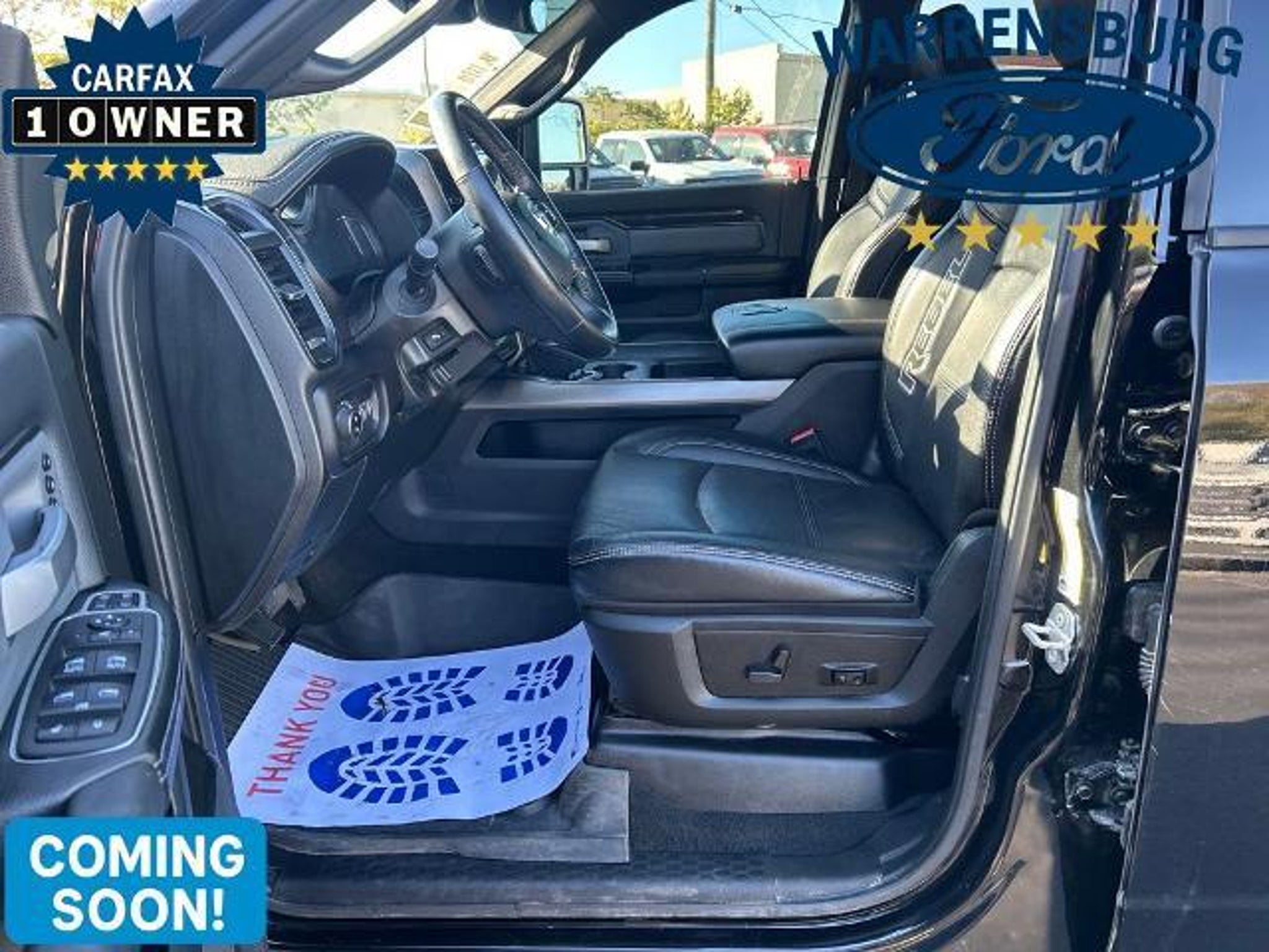 This 2023 Ram 2500 Rebel Crew Cab 4x4 combines hardcore diesel performance with premium comfort advanced technology and unmistakable Ram styling. Powered by the legendary 6.7L Cummins Turbo Diesel this heavy-duty truck delivers massive torque outstanding towing confidence and long-term durability. Paired with a 6-speed automatic transmission part-time 4WD 3.73 axles skid plates and a locking/limited-slip differential this Rebel is built for work weekend hauling and off-road exploration. The Rebel package adds aggressive all-terrain tires aluminum wheels tow hooks fog lamps power-folding heated mirrors with integrated turn signals and bold exterior styling wrapped in Diamond Black Crystal Pearlcoat. Inside you get a refined black interior with leather-trimmed seating premium bucket seats heated and cooled front seats heated rear seats a heated steering wheel power driver/passenger seats with memory an auto-dimming mirror and full comfort/convenience upgrades. This truck is equipped with the Level 1 Equipment Group adding Adjustable Pedals Premium Audio HD Radio Bluetooth Integrated Trailer Brake Controller Navigation Power Folding Mirrors Rain-Sensing Wipers Automatic Highbeams and more. Safety features include Adaptive Cruise Control Blind Spot Monitoring Cross-Traffic Alert Lane Departure Warning Lane Keeping Assist Forward Collision Mitigation Front/Side/Rear Airbags Stability Control and Tire Pressure Monitoring. Tech highlights include Apple CarPlay Android Auto Wi-Fi Hotspot Premium Sound MP3 capability a Trip Computer Universal Garage Door Opener and a full suite of convenience tools. With the Rebel Off-Road Suspension 5th Wheel/Gooseneck Tow Prep Group Bed Utility Group and a bed liner this 2500 Rebel is ready for any challenge. This truck also includes Warranty Forever a true lifetime powertrain warranty at no additional cost. Warranty Forever covers the engine transmission and drive assemblies for as long as you own the vehicle. That includes internally lubricated engine components timing systems the transmission case and gears torque converter all drive axle internals and even turbocharger components. There is no deductible no mileage limit no time limit and the coverage remains active for life as long as you follow factory-recommended maintenance at any ASE-certified repair facility and keep proper records. Real lifetime protection included automatically. At Warrensburg Ford in Warrensburg Missouri our team takes tremendous pride in delivering a dealership experience rooted in honesty hard work and community commitment. Were proud to serve the people of our region with reliable vehicles transparent service and long-term value and wed love for YOU to be another Happy Customer. If youre looking for a premium heavy-duty diesel truck with off-road capability advanced safety luxury comfort and lifetime powertrain coverage included this 2023 Ram 2500 Rebel Crew Cab stands at the top of the market.