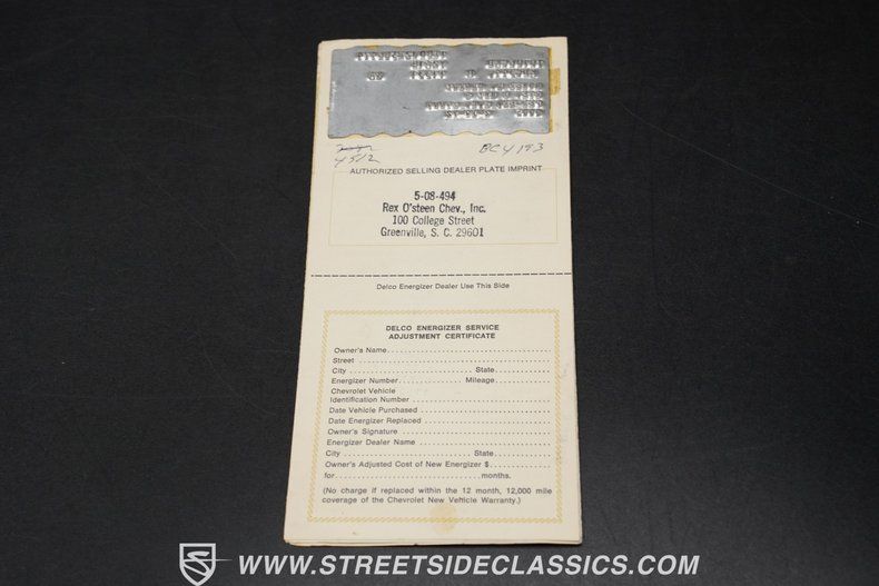 PERIOD-CORRECT 350-CUBIC-INCH V8 ENGINE 4-BARREL EDELBROCK CARBURETOR 3-SPEED AUTOMATIC TH350 TRANSMISSION DUAL EXHAUST POWER STEERING POWER BRAKES, WITH DISCS UP FRONT AIR SHOCKS IN THE BACK FACTORY-CORRECT MULSANNE BLUE PAINT BLACK VINYL TOP BLACK VINYL INTERIOR BENCH SEAT RETRO-SOUND AM/FM STEREO WITH BLUETOOTH CONNECTIVITY AIR CONDITIONING WARRANTY CARD INCLUDED OWNER'S MANUAL INCLUDED