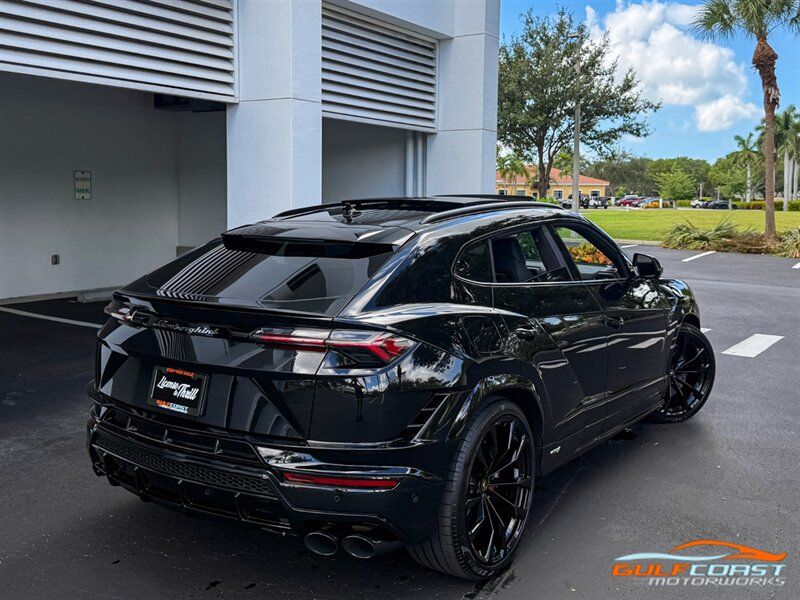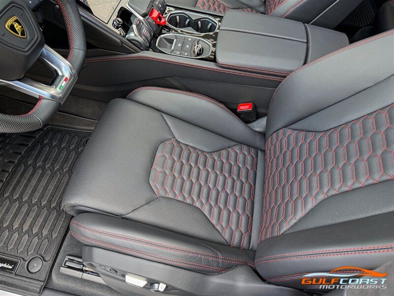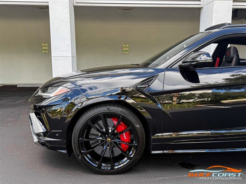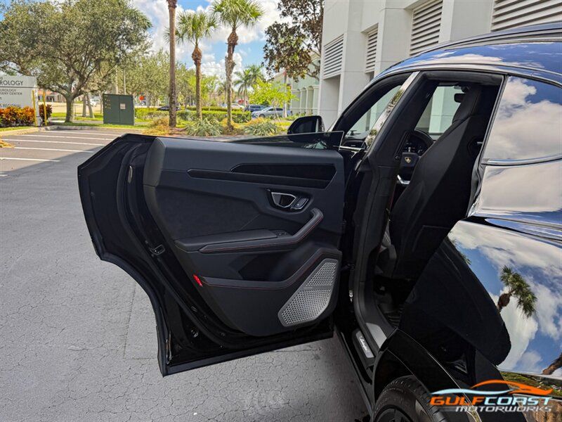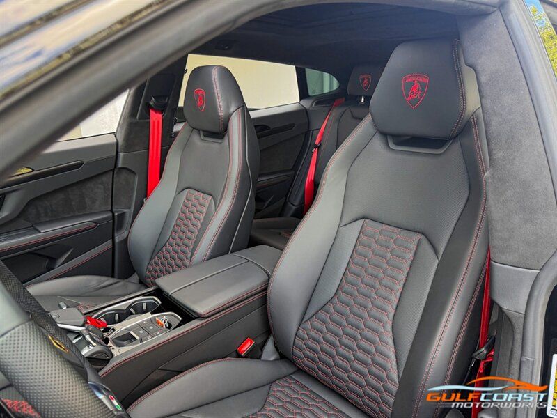 "2024 Lamborghini Urus S. Nero Noctis Exterior with Nero Ade Interior. Features Include: 657 Horsepower 4.0L Twin Turbo V8 Engine, Eight-Speed ZF Automatic Transmission, 23"" 10-Spoke Taigete Wheels In Black, Carbon Ceramic Brakes, Red Brake Calipers, Active Damping Air Suspension, Adjustable Suspension & Ride Height, Dual Mode Exhaust, Full LED Adaptive Headlamps, LED Tail Lights, LED DRLs, Heated Power Folding Side Mirrors, Hands Free Tailgate, Soft Close Doors, Keyless Access & Ignition with Push Button Start, Digital Instrument Cluster, Leather Wrapped Multifunction Steering Wheel, Shift Paddles, Selectable Drive Modes, Heated & Ventilated Full Electric Front Seats, Black Seatbelts, Alcantara Headliner, Lamborghini Crest Embroidered on Headrests, Red Accent Stitching, Interior Dark Package, Bang & Olufsen Sound System, Touchscreen Infotainment, Navigation, Surround View Cameras, Smartphone Integration, Bluetooth, Four-Zone Automatic Climate Control. Priced at only $267,995. Financing and leasing available. We ship worldwide. We pay top dollar for lightly used sports cars, Call or text our Product Specialist today at 239-522-2262 or email us at sales@gcmworks.com. Fees and Taxes: $1199.00 Doc Fee on all Purchases. Out of state buyers are responsible for all state, county, city taxes and fees, as well as title/registration fees in the state that the vehicle will be registered. -- INSTALLED FEATURES: Air filtration: active charcoal, Front air conditioning: automatic climate control, Front air conditioning zones: dual, Rear air conditioning: automatic climate control / independently controlled, Rear air conditioning zones: dual, Airbag deactivation: occupant sensing passenger, Front airbags: dual, Side airbags: front / rear, Side curtain airbags: front / rear, Antenna type: diversity / mast, Auxiliary audio input: Bluetooth / iPod/iPhone, In-Dash CD: DVD audio, Radio: AM/FM / touch screen display / voice operated, Radio data system, Remote CD location: glove compartment, Satellite radio: SiriusXM, Speed sensitive volume control, Total speakers: 8, ABS: 4-wheel, Braking assist, Cornering brake control, Electronic brakeforce distribution, Electronic parking brake, Emergency braking preparation, Front brake type: carbon ceramic disc, Painted brake calipers, Power brakes, Rear brake type: carbon ceramic disc, Armrests: rear center with cupholders / rear folding, Center console trim: leather, Dash trim: aluminum / faux suede / leather, Door sill trim: aluminum, Door trim: leather, Floor mat material: carpet, Floor material: carpet, Floor mats: front / rear, Foot pedal trim: aluminum, Headliner trim: faux suede, Interior accents: aluminum, Steering wheel trim: leather, Adaptive cruise control, Adaptive stop and go cruise control: semi-automatic, Ambient lighting: color, Cargo area light, Cargo cover: hard, Center console: front console with armrest and storage, Courtesy lights: door, Cupholders: 4 / front / illuminated / rear, Footwell lights, Memorized settings: 2 driver / audio system / climate control / driver seat / liftgate / side mirrors, Multi-function remote: proximity entry system / trunk release, One-touch windows: 4, Overhead console: front, Power outlet(s): 12V cargo area / two 12V front / two 12V rear, Power steering: variable/speed-proportional, Power windows: lockout button, Push-button start, Reading lights: front / rear, Rearview mirror: auto-dimming, Steering wheel: power tilt and telescopic, Steering wheel mounted controls: audio / multi-function / paddle shifter / phone / voice control, Storage: cargo tie-down anchors and hooks / door pockets / front seatback, Universal remote transmitter: garage door opener, Vanity mirrors: dual illuminating, Wireless charging station: front, Body side moldings: chrome, Door handle color: body-color, Exhaust: quad tip, Exhaust tip color: stainless steel, Fender lip moldings: black, Front bumper color: black, Grille color: black, Ground effects/lower spoilers, Mirror color: black, Rear bumper color: black, Rear spoiler: lip / roofline, Rear spoiler color: body-color, Rear trunk/liftgate: liftgate / power operated, Rocker panel color: black, Skid plate(s): front, Window trim: black, Connected in-car apps: Google POIs / Google search, Infotainment screen size: 8.6 in. and 10.1 in. (dual), Smartphone integration: Android Auto / Apple CarPlay, Video system: DVD player, Clock, Compass, Customizable instrument cluster, Digital odometer, External temperature display, Fuel economy display: MPG / range, Gauge: boost / tachometer, Head-up display, Instrument cluster screen size: 12.3 in., Multi-function display, Trip odometer, Warnings and reminders: coolant temperature warning / lamp failure / low fuel level / low oil pressure, Daytime running lights: LED, Exterior entry lights: approach lamps / puddle lamps, Headlights: auto delay off / auto high beam dimmer / auto on/off / cornering / LED / self-leveling, Taillights: LED, Side mirror adjustments: power / power folding, Side mirrors: auto-dimming / heated / integrated turn signals, 4WD type: full time, Auto start/stop, Battery saver, Cylinder deactivation, Drive mode selector, Limited slip differential: rear, Performance exhaust, Blind spot safety: sensor/alert, Camera system: rearview, Child safety door locks, Child seat anchors: LATCH system, Lane deviation sensors, Lane keeping assist, Parking sensors: front / rear, Pre-collision warning system: audible warning / visual warning, Rear pre-collision warning system: pedestrian detection, Rearview monitor: in dash, Front seatbelts: 3-point, Rear seatbelts: 3-point, Seatbelt force limiters: front / rear, Seatbelt pretensioners: front / rear, Seatbelt warning sensor: front, Driver seat: heated, Driver seat power adjustments: 12 / 4-way power lumbar / height / reclining, Front headrests: 2 / integrated, Front seat type: sport bucket, Passenger seat: heated, Passenger seat power adjustments: 12 / 4-way power lumbar / height / reclining, Rear headrests: 
