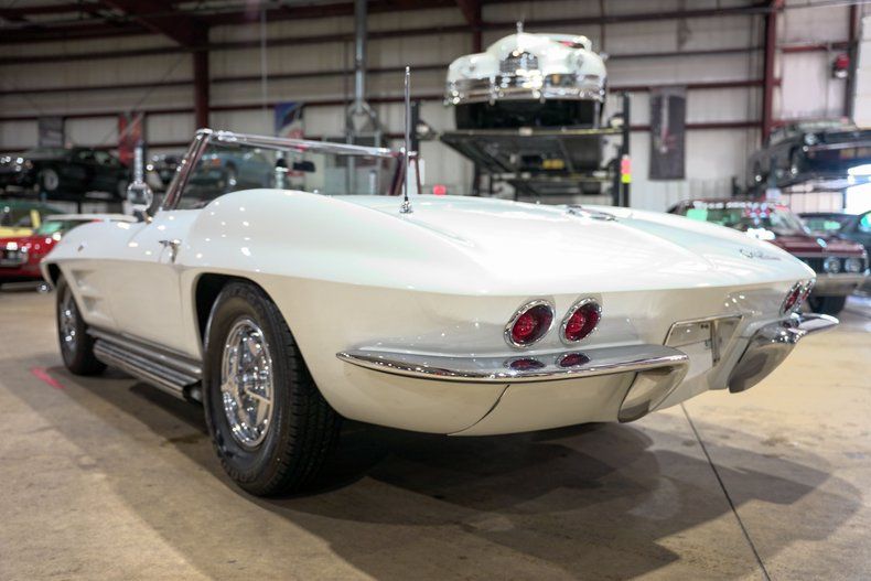 GR Auto Gallery is excited to present this 1963 Chevrolet Corvette Stingray Convertible, finished in classic Ermine White over a vibrant red leather interior with a white soft top. This first-year C2 Corvette is a head-turner from every angle, with clean lines, flip-up headlights, turbine-style hubcaps, and just the right touch of chrome. The car's stance is pure midyear magic, with a presence that's unmistakable on the road or at any show.
