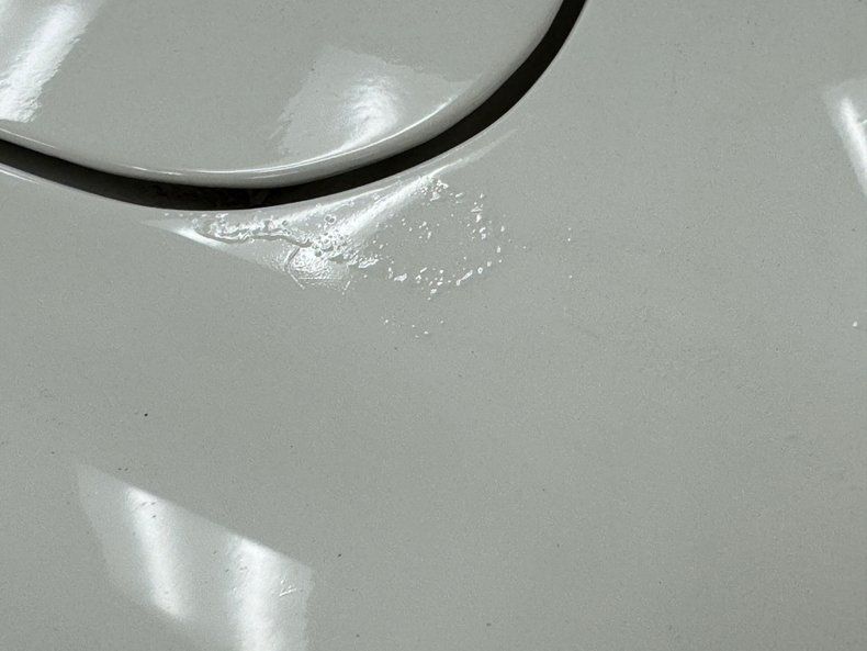 Using original GM colors, two stage Twilight Turquoise was applied under India Ivory for a classic configuration that we never get tired of seeing. The white coves are sandwiched by the turquoise roof and the integrated C-pillars. So attractive is this design that we hope whoever originally penned this layout back in the 50's was fittingly compensated. Big chrome bumpers, a substantial glossy grille and its framing, and window trim are complemented here by the 15-inch wheels with dynamic covers within the turquoise steel ring, all framed in wide white walls. The tail light nacelles are wonderfully ornate and in great shape housing relatively small lights for such a big car and the eagle headed jet plane hood ornament heads up a car that has excellent paint and brightwork, but is not without some imperfections that include various areas of bubbling.