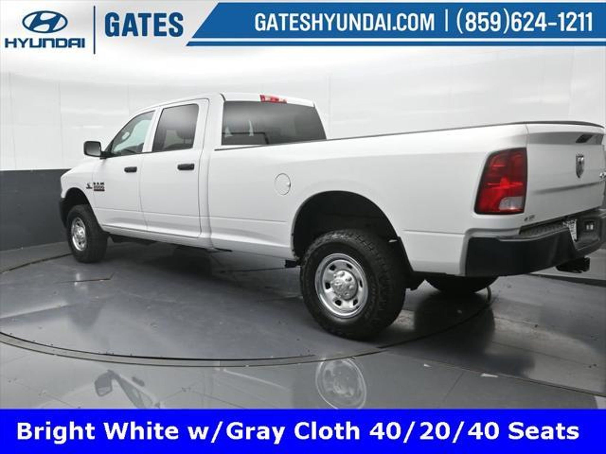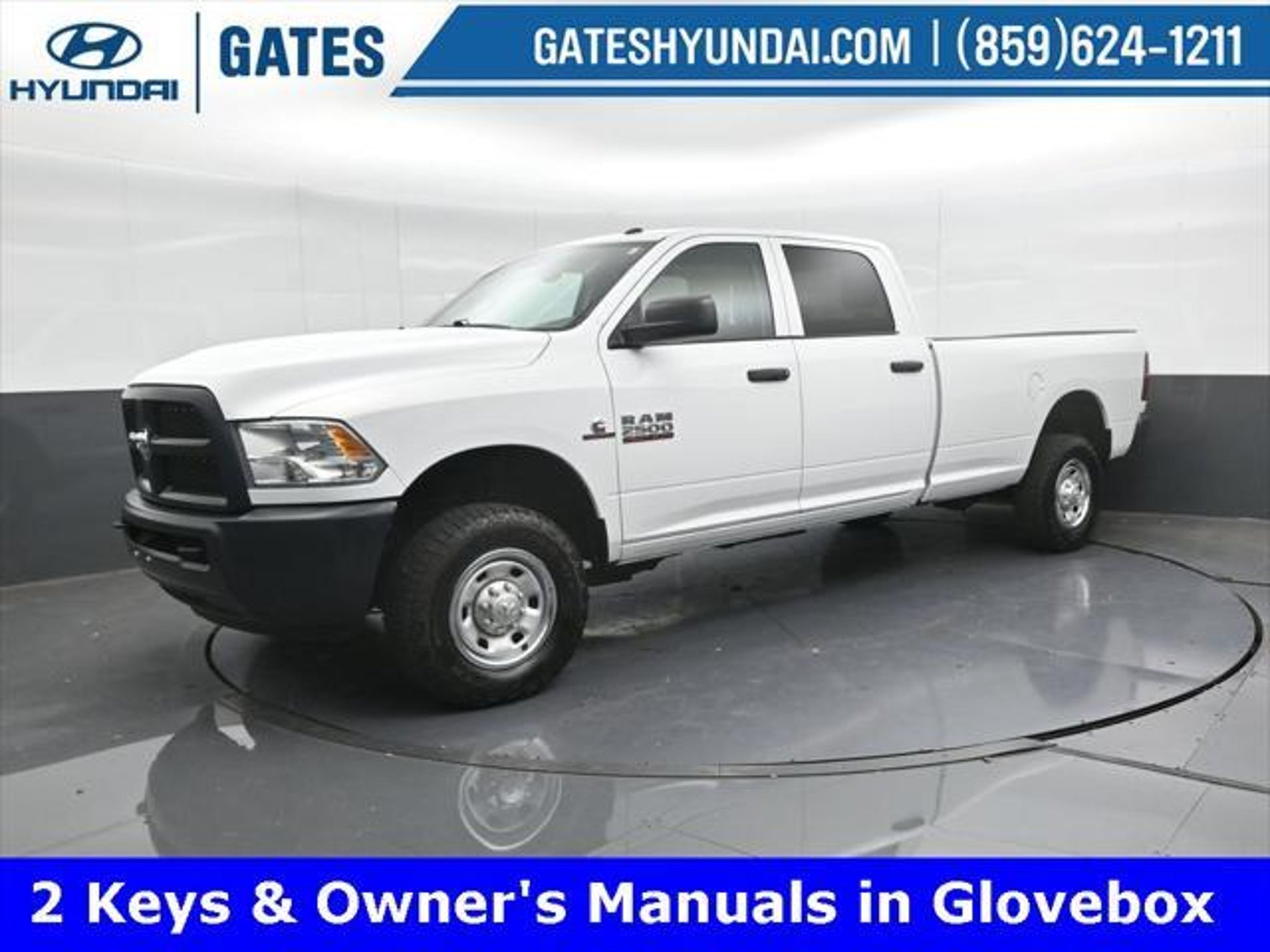 Bright White Clearcoat 2016 Ram 2500 Tradesman 4WD 6-Speed Automatic Cummins 6.7L I6 Turbodiesel Gates Hyundai 1-Yr SiriusXM Radio Service 17 x 7.5 Steel Styled Wheels 180 Amp Alternator 4-Wheel Disc Brakes 40/20/40 Split Bench Seat 5.0 Touchscreen Display 6 Speakers ABS brakes Air Conditioning AM/FM radio Anti-Spin Differential Rear Axle Black Exterior Mirrors Brake assist Carpet Floor Covering Center Hub Charge Only Remote USB Port Cloth 40/20/40 Bench Seat Cold Weather Group Delay-off headlights Driver door bin Dual front impact airbags Dual front side impact airbags Electronic Stability Control Electronically Controlled Throttle Engine Block Heater Exterior Mirrors w/Heating Element For More Info Call Front & Rear Floor Mats Front anti-roll bar Front Bumper Sight Shields Front Center Armrest Fully automatic headlights GPS Antenna Input Heated door mirrors Heavy Duty Vinyl 40/20/40 Split Bench Seat Hemi Badge Integrated Voice Command w/Bluetooth Low tire pressure warning Manual Adjust Seats Manufacturers Statement of Origin Media Hub (USB AUX) Next Generation Engine Controller No Satellite Coverage w/AK/HI Occupant sensing airbag Overhead airbag Overhead Console Passenger door bin Popular Equipment Group Power door mirrors Power steering Power windows Protection Group Quick Order Package 2FA Tradesman Radio data system Radio: 3.0 Radio: Uconnect 5.0 Rear Folding Seat Rear seat center armrest Rear step bumper Rear View Mirror w/Microphone Remote Keyless Entry SiriusXM Satellite Radio Speed control Tachometer Temperature & Compass Gauge Tilt steering wheel Tip Start Traction control Transmission Oil Cooler Variably intermittent wipers Voltmeter Winter Front Grille Cover. Odometer is 54895 miles below market average! Reviews: * Monumental torque with diesel and automatic powertrain; high-quality cabin; Mega Cabs roomy rear seat; highly off-road-capable Power Wagon version; quiet comfortable ride. Source: Edmunds We are a family owned and operated business that began in 1915. We are now in our 4th generation of family ownership. As a family-run business its never been about gimmicks to get customers. We believe in earning our business the hard way - the only way - with referrals and satisfied customers. Were very proud of our business and dedication to superior customer service but we couldnt have done it without our customers. Thank you for taking the time to look at this terrific 2016 Ram 2500. We are open online 24/7! Get pre-approved receive a prompt trade evaluation and purchase from the comfort of your home. We will do the rest. Within a 100 mile radius we offer free delivery to your door for any new or pre-owned vehicle. Call us message us via online chat or email us to get started! Thank you for allowing our family the opportunity to serve your family. ***GATES HYUNDAI ***
