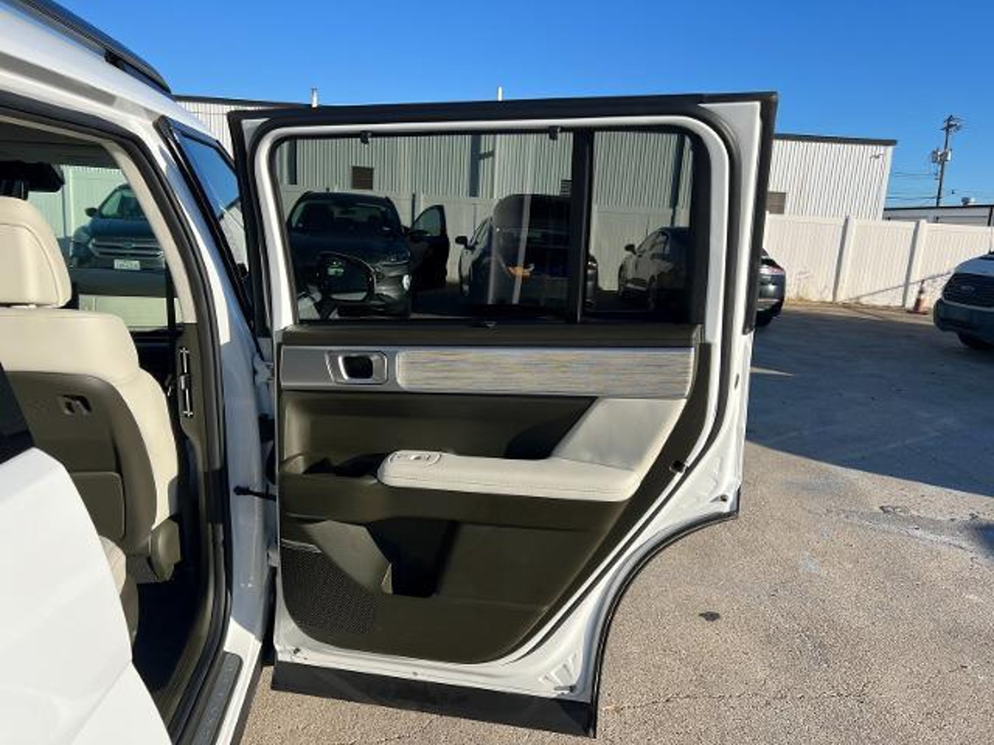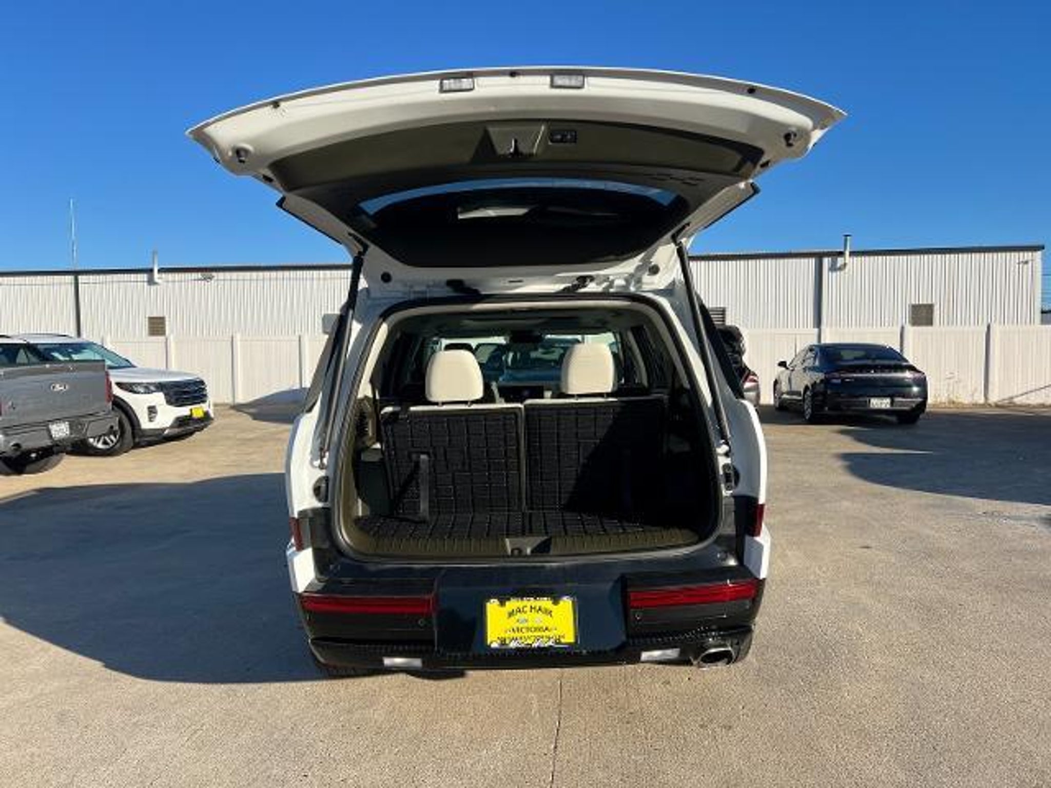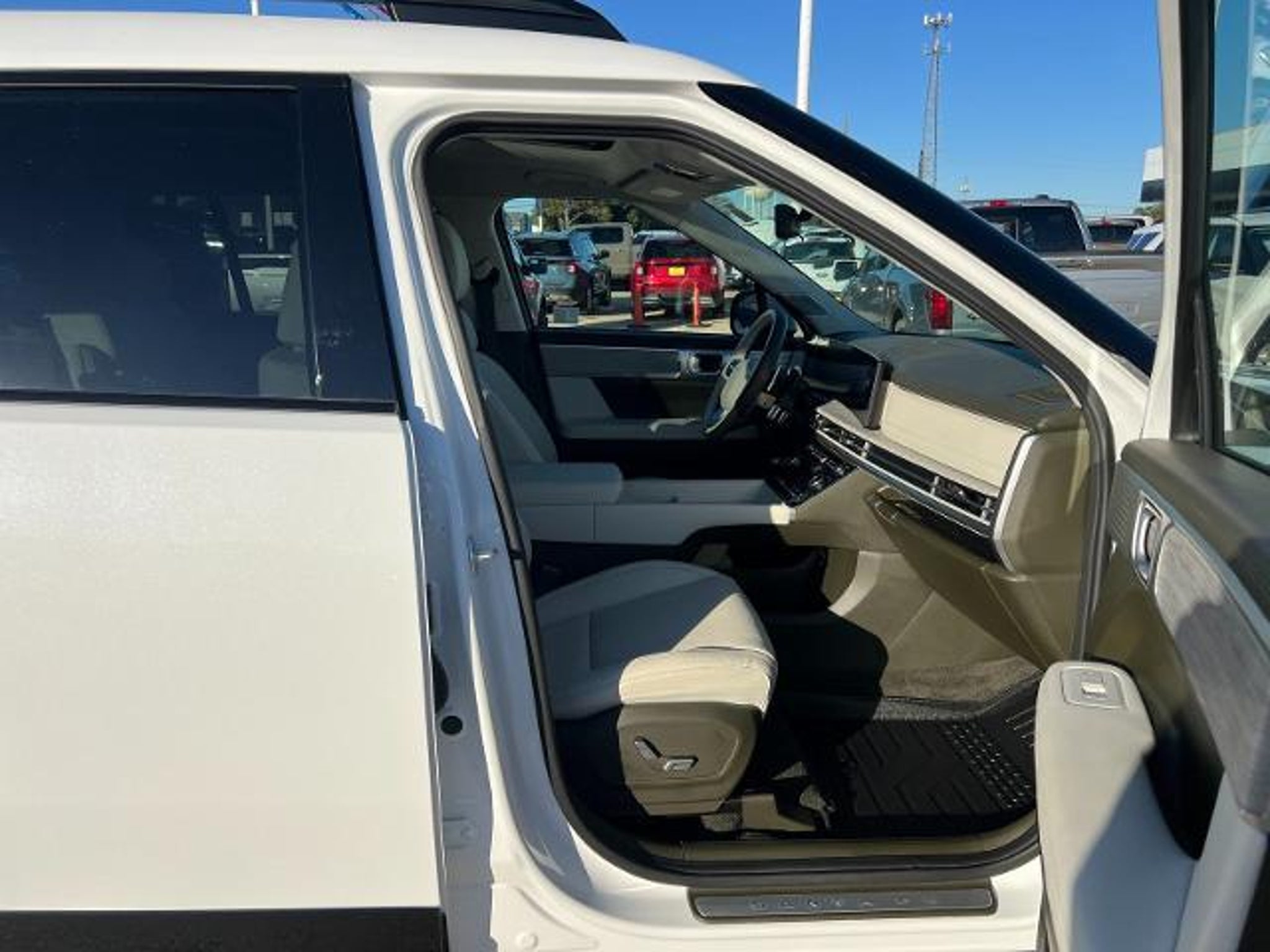 CARFAX One-Owner. Serenity White 2025 Hyundai Santa Fe Calligraphy FWD Shiftronic 2.5L I4 Beige Leather. This 2025 Hyundai Santa Fe Calligraphy in Serenity White includes the following features: 2.5L I4 Shiftronic FWD Option Group 01, Beige Leather, 12 Speakers, 3rd row seats: bench, 4-Wheel Disc Brakes, ABS brakes, Air Conditioning, Alloy wheels, AM/FM radio: SiriusXM, Apple CarPlay & Android Auto, Auto High-beam Headlights, Auto-dimming Rear-View mirror, Automatic temperature control, Brake assist, Bumpers: body-color, Cargo Net, Carpeted Floor Mats, Cross Rails, Delay-off headlights, Driver door bin, Driver vanity mirror, Dual front impact airbags, Dual front side impact airbags, Electronic Stability Control, Emergency communication system, Exterior Parking Camera Rear, First Aid Kit, Four wheel independent suspension, Front anti-roll bar, Front Bucket Seats, Front Center Armrest, Front dual zone A/C, Front reading lights, Fully automatic headlights, Garage door transmitter: HomeLink, Heads-Up Display, Heated & Ventilated Front Bucket Seats, Heated door mirrors, Heated front seats, Heated rear seats, Heated steering wheel, Illuminated entry, Knee airbag, Leather steering wheel, Low tire pressure warning, Memory seat, Navigation System, Occupant sensing airbag, Outside temperature display, Overhead airbag, Overhead console, Panic alarm, Passenger door bin, Passenger vanity mirror, Power door mirrors, Power driver seat, Power Liftgate, Power moonroof, Power passenger seat, Power steering, Power windows, Premium Nappa Leather Seat Trim, Radio: AM/FM/HD Bose Premium Audio System, Rain sensing wipers, Rear anti-roll bar, Rear side impact airbag, Rear window defroster, Rear window wiper, Remote keyless entry, Security system, Speed control, Speed-sensing steering, Split folding rear seat, Spoiler, Steering wheel mounted audio controls, Tachometer, Telescoping steering wheel, Tilt steering wheel, Traction control, Trip computer, Turn signal indicator mirrors, Variably intermittent wipers, Ventilated front seats, Wheel Locks, and Wheels: 21 x 8.5J Unique Dark Finish Alloy. Odometer is 2353 miles below market average! 20/29 City/Highway MPG At Mac Haik, we believe in customer satisfaction and try to make it our mission that each and every shopper is happy with our service. Visit us now and experience why Mac Haik is Victoria's most awarded dealership of all time!*Don't miss out! Call us today at: (361) 541-6131*