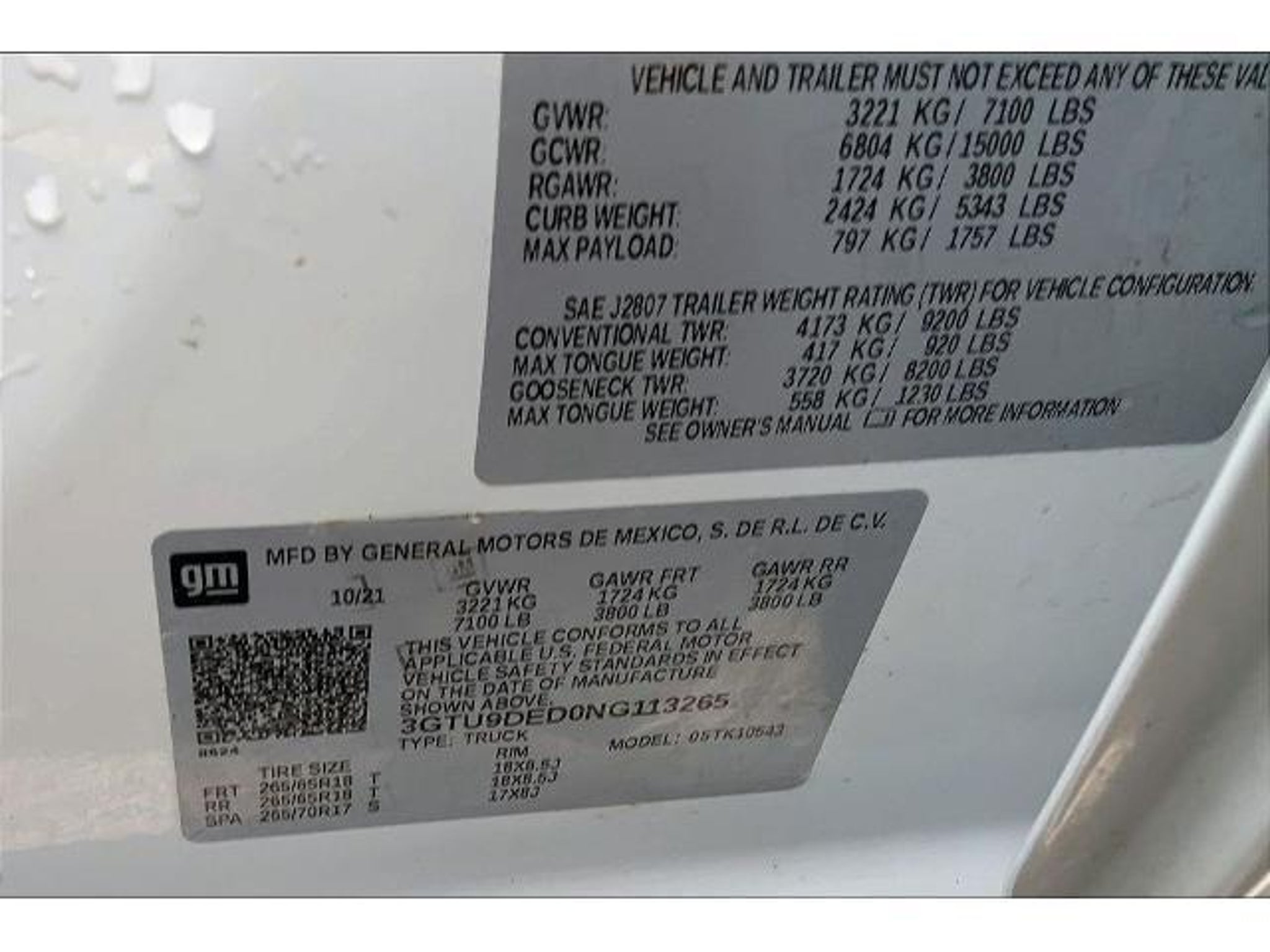 3GTU9DED0NG113265 |