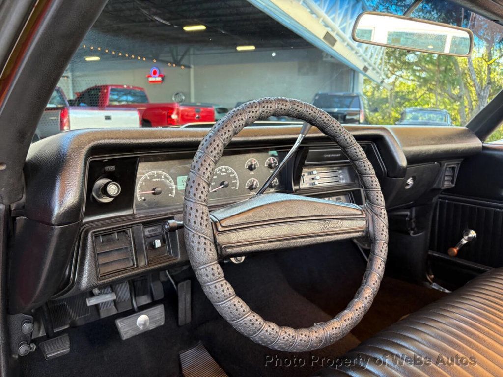 1972 Chevrolet Chevelle Badged SS Convertible Why This Car Is Special The 1972 Chevrolet Chevelle SS Convertible represents an iconic era in American muscle cars, blending performance with striking aesthetics that make it a perfect choice for collectors and enthusiasts alike. This particular model, seen vibrantly dressed in a red exterior with black interior, is a stellar example of craftsmanship and classic style. Badged as an SS, the car's appeal is not only in its eye-catching appearance but also in its robust mechanical configurationhighlighted by the GM 350 V8 engine. This Chevelle is perfect for anyone seeking a classic convertible that combines strong performance with head-turning good looks. Features List - GM 350 V8 engine - Automatic transmission - Power steering - Power disc brakes - Power top - Dakota digital dashboard - Custom Auto Sound System stereo - GM 12 bolt rear end - Hood pins - Correct SS stripes - Correct SS wheels - Borla exhaust - PPG Base/Clear paint Mechanical Under the hood, this Chevelle boasts a powerful GM 350 V8 engine that is both a reliable and potent source of horsepowermaking it capable of delivering exhilarating performance. The automatic transmission ensures smooth shifting and drives power effectively, complemented by the GM 12 bolt rear end for enhanced durability and handling. Functional power steering makes for an easier and more comfortable driving experience, while power disc brakes ensure the car stops as well as it goes. Interior The interior of the 1972 Chevrolet Chevelle SS is elegantly trimmed in black vinyl, providing both comfort and durability. The Dakota digital dashboard pays homage to the classic design but with modern technology, giving the driver precise feedback. Comfort is also enhanced by the power top, which allows for quick and easy conversion from a cozy coupe to an open-air ride. The addition of a Custom Auto Sound System stereo ensures that trips in this classic are accompanied by high-quality audio. Exterior The exterior of the Chevelle features the iconic SS stripes and correct SS wheels, enhancing its muscular appearance and automotive significance. The Borla exhaust not only contributes to a fantastic performance but also emits a throaty rumble that is music to any car enthusiast's ears. The PPG Base/Clear paint job in radiant red is not only eye-catching but also speaks volumes about the vehicle's well-maintained condition and the attention to detail that has been paid throughout its restoration. Conclusion This 1972 Chevrolet Chevelle Badged SS Convertible is indeed a special vehicle, evoking the spirit and excitement of the golden age of muscle cars. It combines thrilling performance features with a timeless design and modern upgrades that enhance both its functionality and appeal. This Chevelle is more than just a car; it's a piece of automotive history that continues to captivate and thrill collectors and driving enthusiasts. To see this remarkable car in person or to learn more about it, please dont hesitate to call the dealership at 941-254-6608. Disclaimer Information found on the website is presented as given to us by the owner of the car, whether on consignment or from the owner we bought it from. Some Photos, materials for videos, descriptions and other information are provided by the consignor/seller and is deemed reliable, but Skyway Classics does not warranty or guarantee this information. Skyway Classics is not responsible for information that may incorrect or a publishing error. The decision to purchase should be based solely on the buyers personal inspection of the vehicle or by a professional inspection service prior to offer or purchase being made. WeBe Autos Specializes in Marketing and Advertising Muscle, Classic, Vintage and Specialty Cars. We offer Professional Photography, HD Movies, and Staging that Sells Cars. Let us showcase and sell your specialty car. Please visit our website for more details. Keep in Touch, Michael Runnalls Specialty Car Marketing & Media WeBe Autos Ltd. Long Island, NY 11780 Michael@WeBeAutos.com www.WeBeAutos.com (O)631-339-0399 (C)516-729-2003 Skype: webeautos (F)631-389-2605 - - - Contact Michael Runnalls at 631-339-0399 or Michael@WeBeAutos.com for more information. -