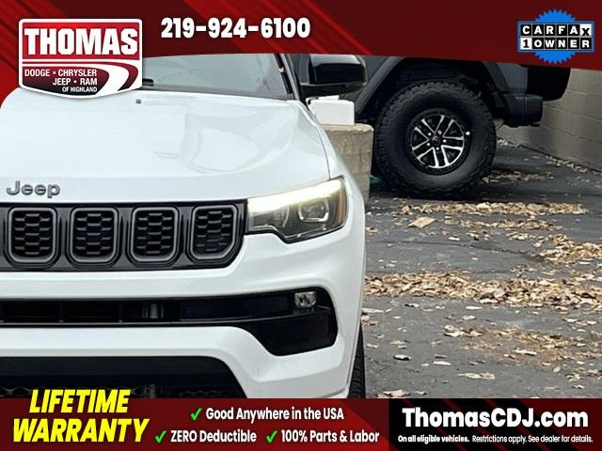 2025 Bright White Clearcoat Jeep Compass 24/32 City/Highway MPG One Owner, Power Front/Fixed Rear Full Sunroof, 4WD, 10.1 Touchscreen Display, Alexa Built-In, Alloy wheels, Apple CarPlay/Android Auto, Auto High-beam Headlights, Automatic temperature control, Front dual zone A/C, Front fog lights, Fully automatic headlights, GPS Navigation, Heated front seats, High Altitude Package, Integrated Voice Command w/Bluetooth, Leather Shift Knob, Leather steering wheel, Leatherette Seats, LED Low/Highbeam Projector Headlamps, ParkView Rear Back-Up Camera, Power driver seat, Power Front/Fixed Rear Full Sunroof, Premium Alpine Speaker System, Premium LED Fog Lamps, Security system, Speed control, Spoiler, Wheels: 19 x 7.5 Aluminum Painted. Incoming unit LIFETIME WARRANTY FOREVER! On ALL eligible new & used vehicles - $0 Deductible Parts and Labor! - Valid Anywhere in the USA! - Can be Serviced at any Licensed Facility in the USA! - No Expiration Full Powertrain Coverage for Your Entire Ownership! * NO CATCH & NO COST TO YOU! * On All Eligible New and Used Vehicles * Only at ThomasDCJ.com.