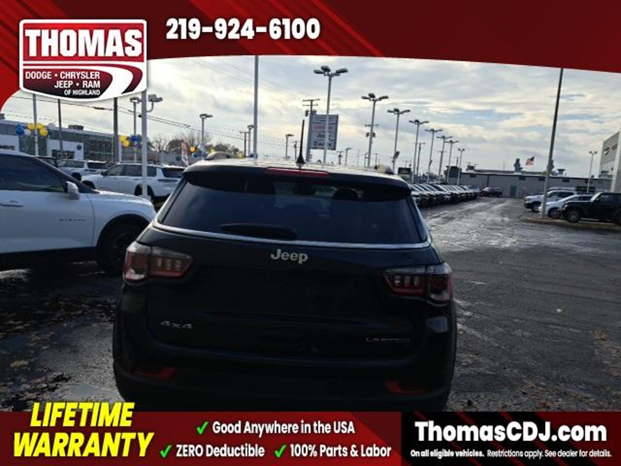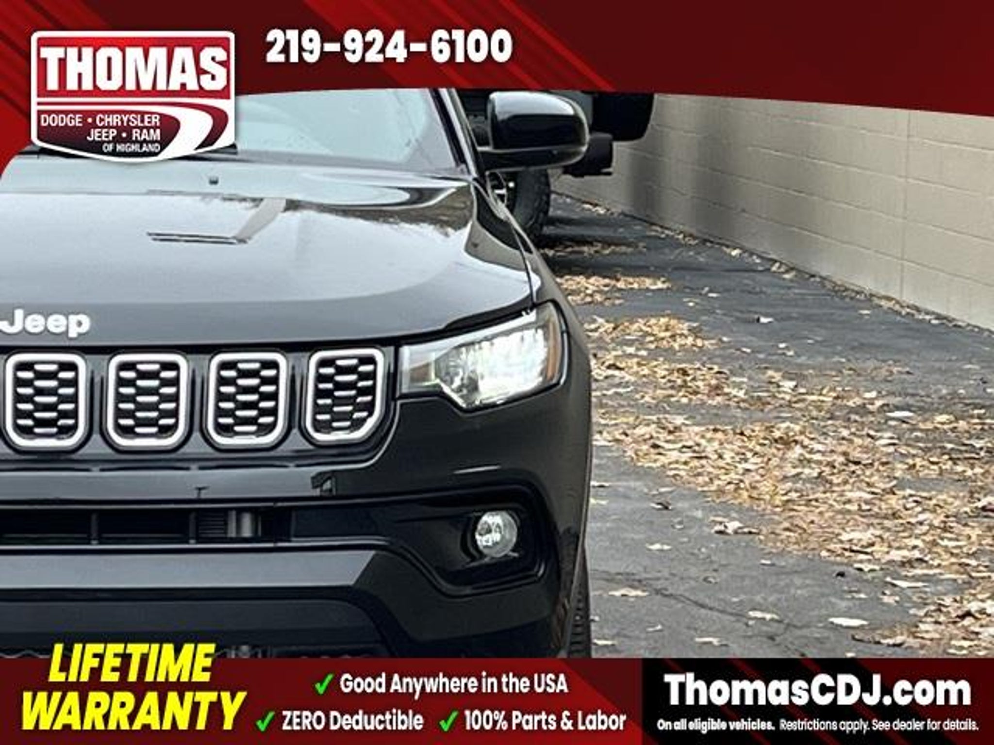 2025 Diamond Black Crystal Pearlcoat Jeep Compass 24/32 City/Highway MPG One Owner, 4WD, 10.1 Touchscreen Display, Alloy wheels, Apple CarPlay/Android Auto, Auto High-beam Headlights, Automatic temperature control, Compass, Front fog lights, Fully automatic headlights, Heated door mirrors, Heated front seats, Leather Shift Knob, Leather steering wheel, Leatherette Seats, Power door mirrors, Power driver seat, Premium audio system: UConnect 5, Radio: Uconnect 5 w/10.1 Display, Security system, Speed control, Spoiler, Wheels: 18 x 7 Painted Diamond Cut Alum (DISC). LIFETIME WARRANTY FOREVER! On ALL eligible new & used vehicles - $0 Deductible Parts and Labor! - Valid Anywhere in the USA! - Can be Serviced at any Licensed Facility in the USA! - No Expiration Full Powertrain Coverage for Your Entire Ownership! * NO CATCH & NO COST TO YOU! * On All Eligible New and Used Vehicles * Only at ThomasDCJ.com.