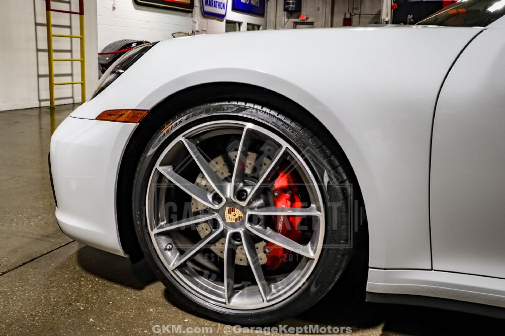 Under the rear decklid sits a potent 3.0-liter twin-turbocharged flat-six engine producing 443 horsepower, paired to Porsche's lightning-fast 8-speed PDK dual-clutch transmission. The combination delivers breathtaking acceleration and razor-sharp shifts, offering an exceptional driving experience whether on the highway or the backroads. The Carrera S's balanced chassis and rear-engine layout provide impeccable handling, while the sport exhaust system enhances the car's character with an aggressive, unmistakable Porsche soundtrack.