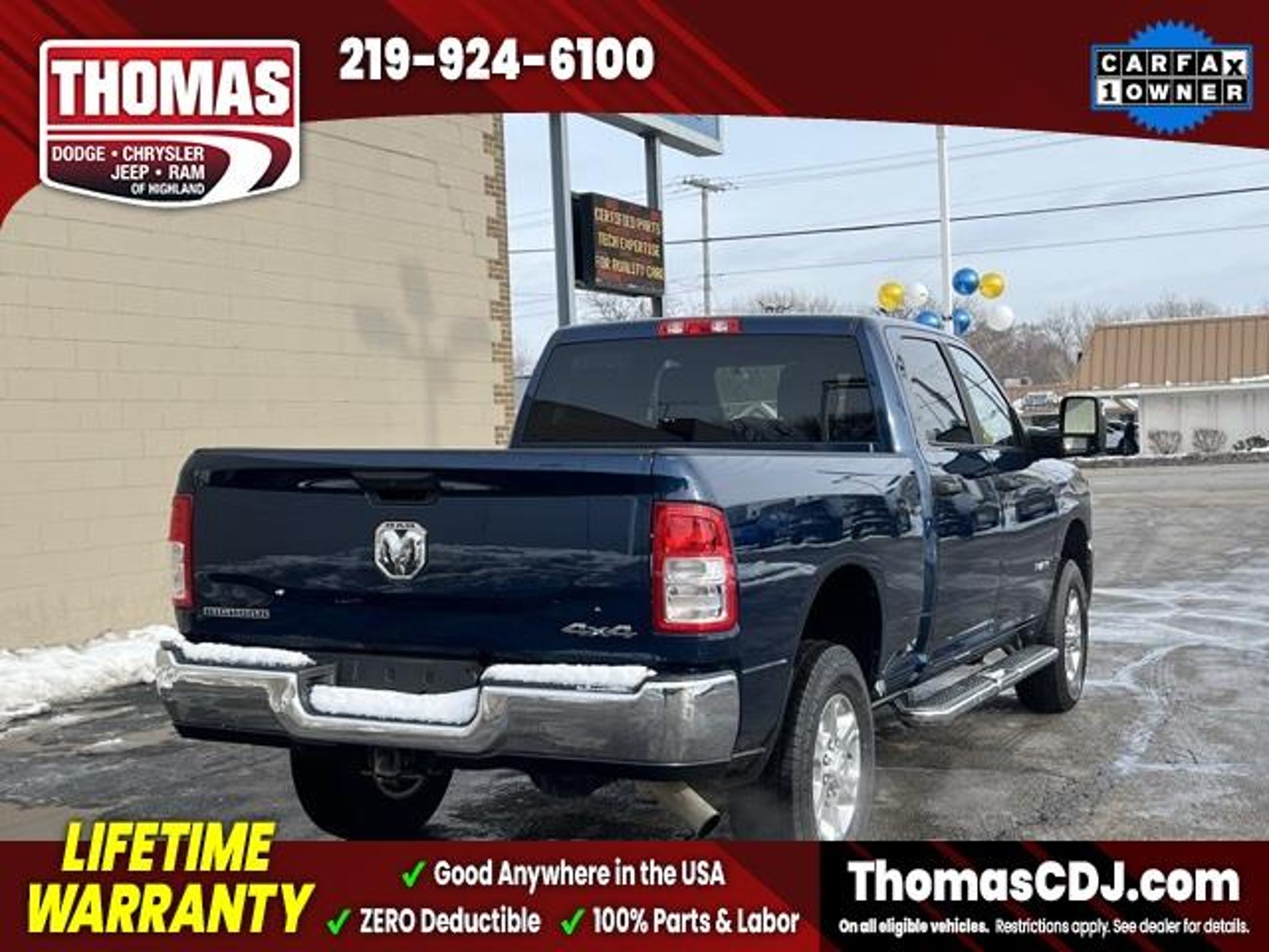 2024 Patriot Blue Pearlcoat Ram 2500 One Owner, Chrome Flat CabLength SideSteps, 2nd Row In Floor Storage Bins, 4G LTE Wi-Fi Hot Spot, 8.4 Touchscreen Display, Apple CarPlay, Auto Power-Folding Mirrors, Black Exterior Mirrors, Bluetooth Handsfree Phone & Audio, Front Fog Lamps, Fully automatic headlights, Google Android Auto, Heated door mirrors, Integrated Voice Command w/Bluetooth, Leather Wrapped Steering Wheel, Level 1 Equipment Group, Mirror Running Lights, ParkView Rear Back-Up Camera, Power 2-Way Driver Lumbar Adjust, Power Adjust 8-Way Driver Seat, Power Heated Fold Telescope Mirrors, Premium Cloth 40/20/40 Bench Seat, Radio: Uconnect 5 W w/8.4 Display (A62), Remote USB Port - Charge Only, Speed control, Wheels: 18 x 8.0 Polished Aluminum. LIFETIME WARRANTY FOREVER! On ALL eligible new & used vehicles - $0 Deductible Parts and Labor! - Valid Anywhere in the USA! - Can be Serviced at any Licensed Facility in the USA! - No Expiration Full Powertrain Coverage for Your Entire Ownership! * NO CATCH & NO COST TO YOU! * On All Eligible New and Used Vehicles * Only at ThomasDCJ.com.