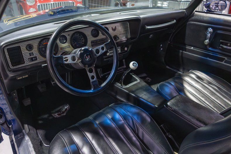*6.6L/400 Cu. In. V8 *Single 4 Barrel Carburetor *4 Speed Manual Transmission *"Safe-T-Track" Limited Slip Differential *Power Steering & Front Disc Brakes *Shaker Hood w/ "Screaming Chicken" *Refinished in Nautilus Blue *Black Bucket Seat Interior w/ Center Console *17" Snowflake Wheels w/ Radial Tires *AM/FM/8-Track Entertainment System *Stock Instrumentation *Odometer Reads: 59,307 Miles