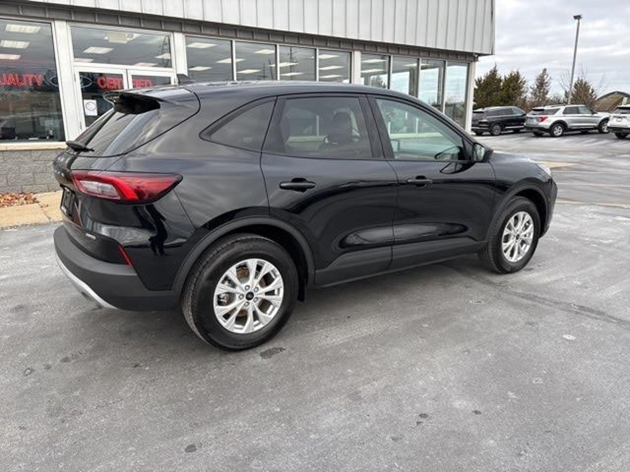 Ford 2025 Escape Active 6 Speakers, Air Conditioning, Auto High-beam Headlights, Brake assist, Equipment Group 200A, FordPass Connect, Front Bucket Seats, Panic alarm, Speed control, Steering wheel mounted audio controls, SYNC 4, Telescoping steering wheel, Wheels: 17 Shadow Silver-Painted Aluminum. CARFAX One-Owner. Clean CARFAX. 4D Sport Utility Black Metallic 1.5L EcoBoost 8-Speed Automatic AWD Odometer is 6413 miles below market average! Priced below KBB Fair Purchase Price! 26/32 City/Highway MPG Stop searching, start calling today!