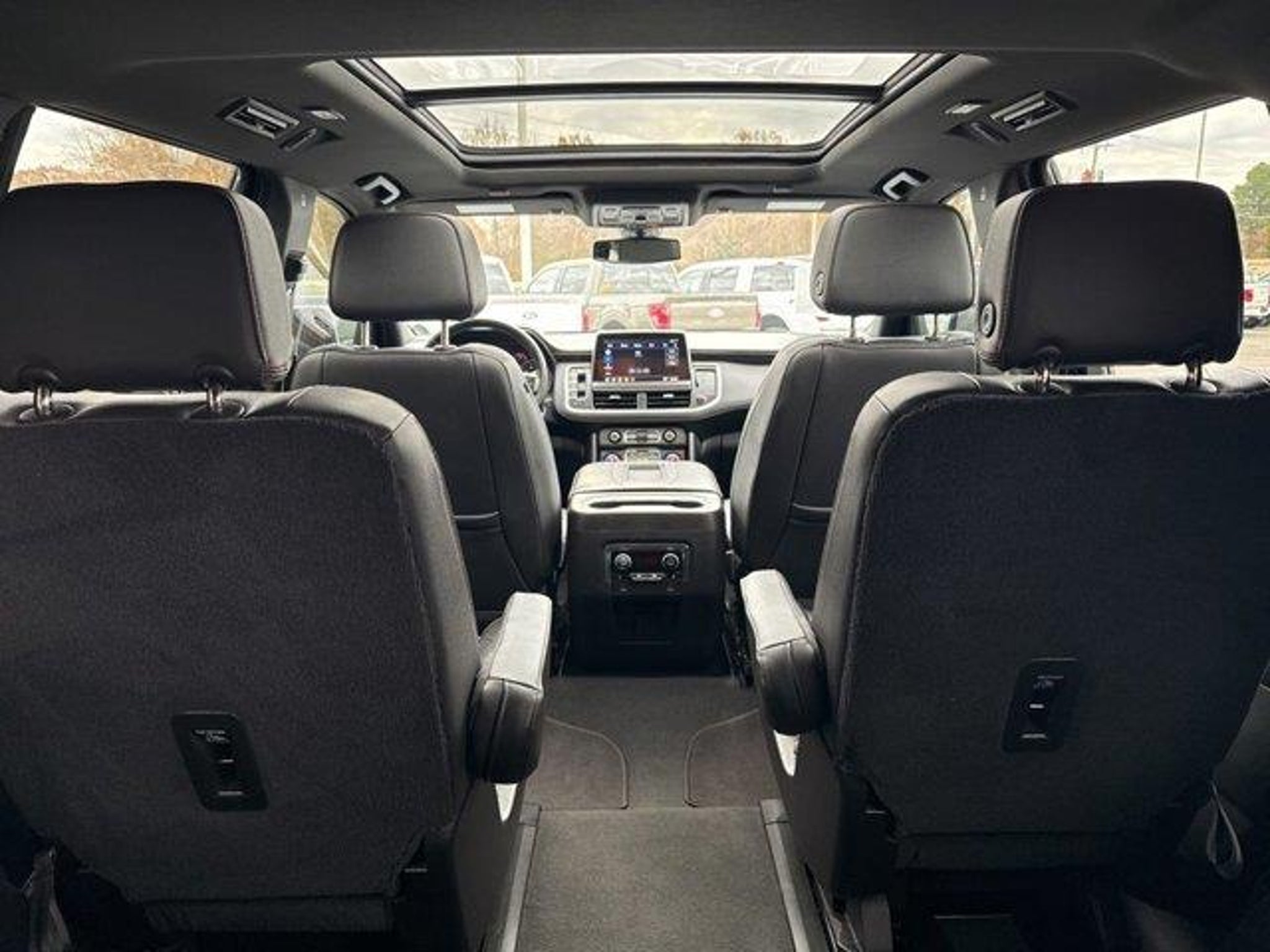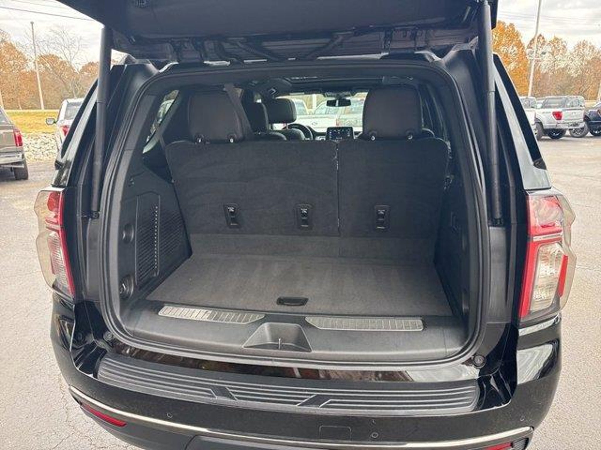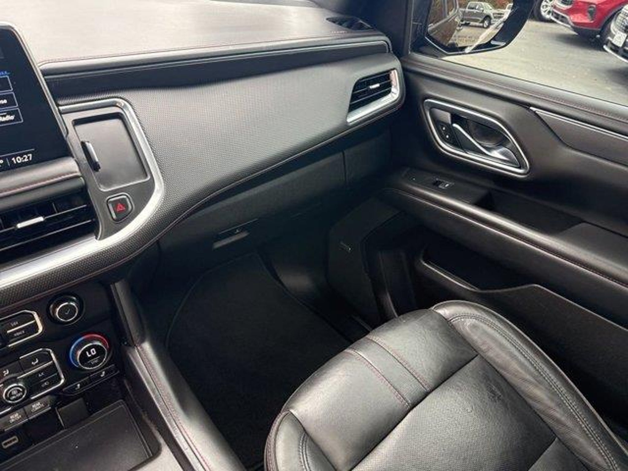 Black 2021 Chevrolet Tahoe RST 4WD 10-Speed Automatic with Overdrive EcoTec3 5.3L V8 4WD Jet Black/Victory Red Leather 10-Way Power Driver & Passenger Seat Adjusters 1st & 2nd Row Color-Keyed Carpeted Floor Mats 2 USB Data Ports 2-Speed Active Electronic AutoTrac Transfer Case 2nd Row Pwr Release 60/40 Split-Folding Bench Seat 3.23 Rear Axle Ratio 3rd Row 60/40 Power-Folding Split-Bench Seat 3rd row seats: split-bench 4-Wheel Disc Brakes 9 Speakers ABS brakes Advanced Trailering Package Advanced Trailering System Air Conditioning Alloy wheels AM/FM radio: SiriusXM with 360L Apple CarPlay/Android Auto Auto High-beam Headlights Auto-Dimming Inside Rear-View Mirror Auto-dimming Rear-View mirror Automatic Heated Steering Wheel Automatic temperature control Bose 9-Speaker Stereo Audio System Feature Brake assist Bright Front & Rear Door Sill Plates Bumpers: body-color Color-Keyed Carpeting Floor Covering Compass Delay-off headlights Driver & Front Outboard Passenger Airbags Driver Alert Package Driver door bin Driver vanity mirror Dual front impact airbags Dual front side impact airbags Dual-Pane Power Panoramic Sunroof Electronic Stability Control Emergency communication system: OnStar and Chevrolet connected services capable Extra Capacity Cooling System Floor Console w/Storage Area Four wheel independent suspension Front & Rear Park Assist Front anti-roll bar Front Bucket Seats Front Center Armrest Front dual zone A/C Front High-Back Reclining Bucket Seats Front reading lights Fully automatic headlights Garage door transmitter Hands-Free Rear Power Programmable Liftgate HD Radio HD Surround Vision Heated 2nd Row Outboard Seats Heated door mirrors Heated Driver & Front Passenger Seats Heated front seats Hitch Guidance w/Hitch View Illuminated entry Infotainment Display Integrated Trailer Brake Controller Lane Change Alert w/Side Blind Zone Alert Lane Keep Assist w/Lane Departure Warning Leather steering wheel Leather-Wrapped Steering Wheel LED Daytime Running Lamps Low tire pressure warning Luxury Package Max Trailering Package Memory seat Memory Settings Memory Settings for Driver Occupant sensing airbag Outside Heated Power-Adjustable Mirrors Outside temperature display Overhead airbag Overhead console Panic alarm Passenger door bin Passenger vanity mirror Perforated Leather Seat Trim Power door mirrors Power driver seat Power Liftgate Power passenger seat Power Release 2nd Row Bucket Seats Power steering Power Tilt & Telescopic Steering Column Power windows Preferred Equipment Group 1SP Premium audio system: Chevrolet Infotainment 3 Premium Smooth Ride Suspension Radio: Chevrolet Infotainment 3 Plus System Rain sensing wipers Rear air conditioning Rear anti-roll bar Rear Cross Traffic Alert Rear Pedestrian Alert Rear reading lights Rear seat center armrest Rear window defroster Rear window wiper Remote keyless entry Remote Start Roof rack: rails only Security system Set of 4 Wheel Locks (LPO) SiriusXM Radio w/360L Speed control Speed-sensing steering Split folding rear seat Spoiler Steering wheel mounted audio controls Tachometer Telescoping steering wheel Tilt steering wheel Traction control Trip computer Universal Home Remote Variably intermittent wipers Voltmeter Wheels: 22 Multi-Spoke Gloss Black (LPO) Wheels: 22 x 9 Steel Interim (LPO). Recent Arrival! Awards: * JD Power Automotive Performance Execution and Layout (APEAL) Study * ALG Residual Value