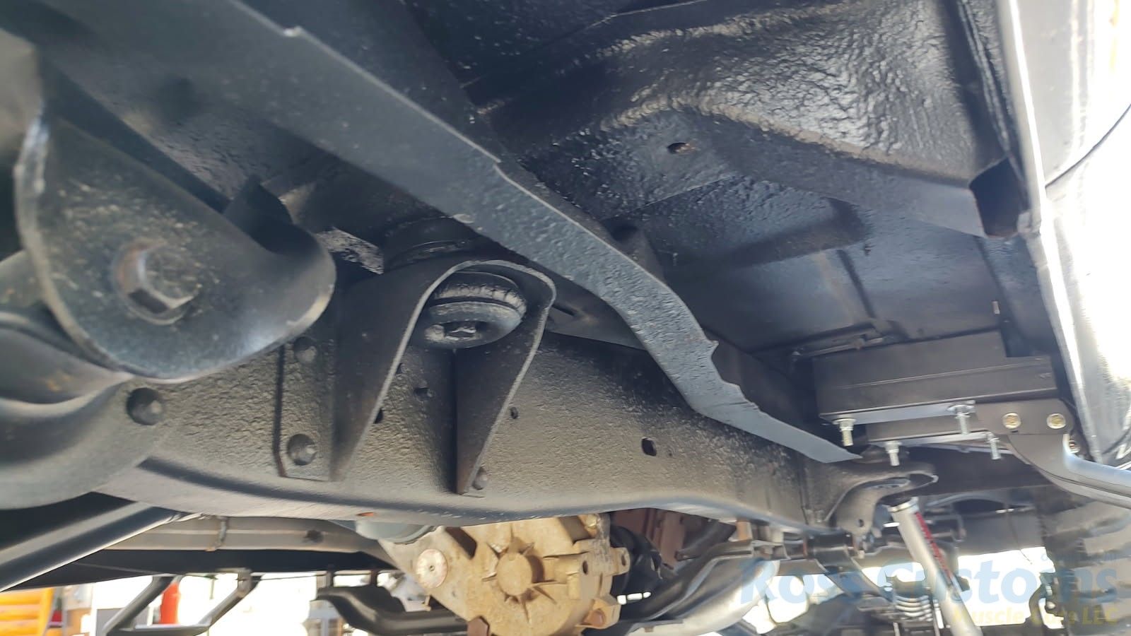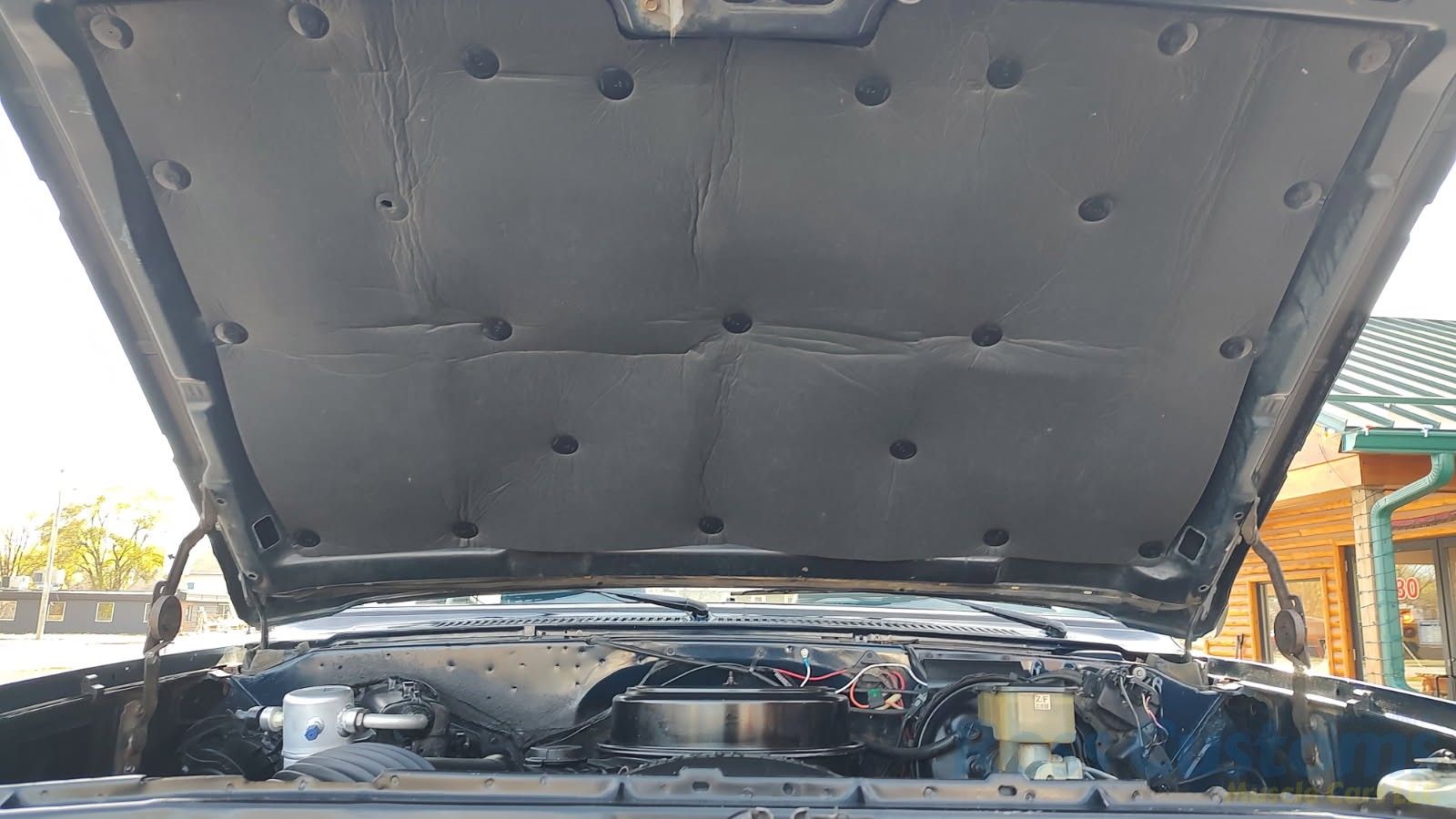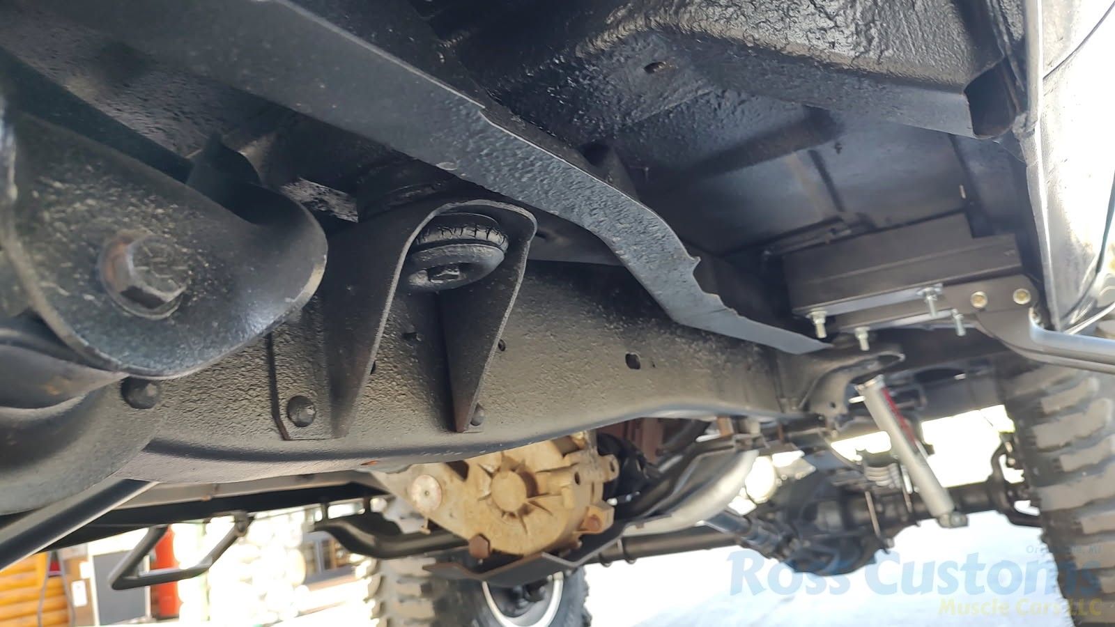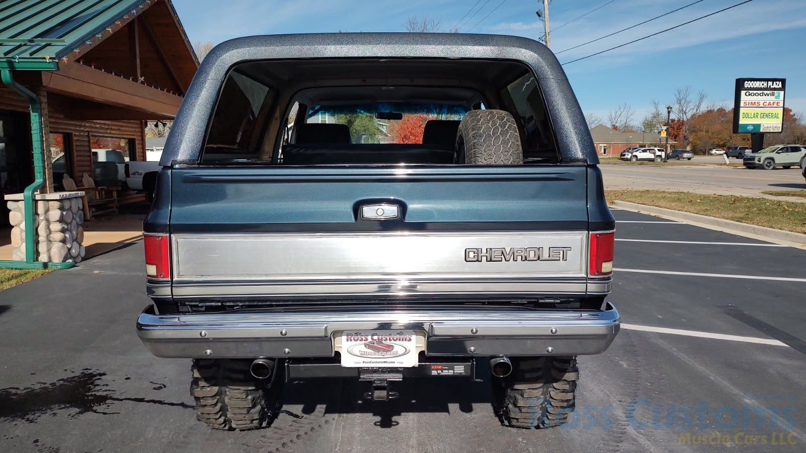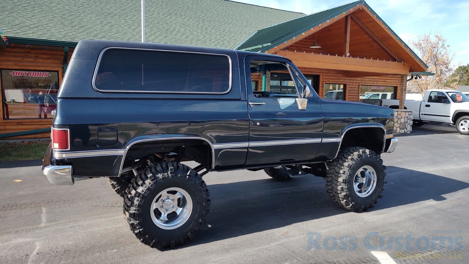 Under the hood we have the original 350, factory AC, power steering, power disc brakes, factory exhaust manifolds into 2 1/2 inch exhaust with stainless muffler and dual tailpipes out the back, manual 4 speed trans, brand new 6 inch Rough Country lift, all springs - no blocks, new shocks, new drive shafts.