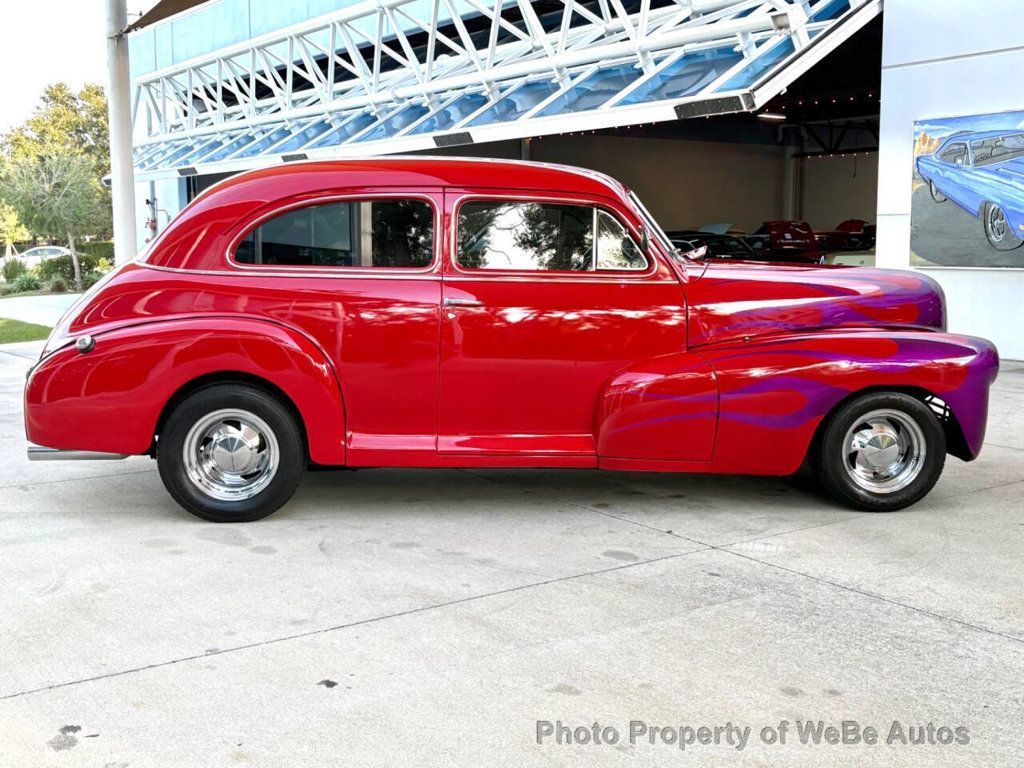 1947 Chevrolet Fleetmaster Why This Car Is Special The 1947 Chevrolet Fleetmaster stands as a remarkable testament to post-war American ingenuity and style. With its eye-popping red and purple flame exterior and a host of modern upgrades, this Fleetmaster is not merely a car; it's a bridge between the classic charm of the 1940s and the high-performance expectations of todays discerning collector. Ideal for someone who cherishes vintage aesthetics but craves contemporary reliability and power, this vehicle is a collector's dream. Features List - Speed shop comp cam 280H 350 V8 engine - Holley 670 CFM Street Avenger carburetor - Accel Blueprint HEI ignition system - Cyclone Headers - Walker Cobra radiator with Cooling Components Fan - TCI Street Rodder TH350 automatic transmission - TCI 9' 2.70 Night Special Converter - Engineered Components, Inc. Mustang Dual FR Master Cylinder - BF Goodrich TA tires on American Racing Wheels - Updated 1977 GM wiring - A suite of Classic Instruments gauges - Sun Super Tach and Auto Meter Speedometer - Dakota Digital Gear Shift Sender - Modern electric wipers and digital tach - Pioneering sound system with components from Pioneer and Kicker - Specialty Purple Sound System by Street/Glow Kicker - Passed the NSRA 23-point safety inspection - Includes a specialty owners manual Mechanical Under the hood lies a robust 280H 350 V8 engine equipped with a Holley 670 CFM Street Avenger, ensuring not just power but also precision in performance. The Cyclone Headers complement the Accel Blueprint HEI ignition system to provide a reliable and explosive driving experience. Cooling is managed by a Walker Cobra radiator paired with a Cooling Components Fan, showcasing a setup that is built to handle high performance without overheating issues. Interior Inside, the Fleetmaster offers a plush gray cloth interior that juxtaposes modern comfort with classic styling. The vehicle features a technically equipped dashboard including Classic Instruments gauges, a Sun Super Tach, and an Auto Meter Speedometer, all modern touches that respect the vintage feel. Electric wipers and a digital tach offer convenience while maintaining the cars classic charm. The superb Pioneer / Kicker sound system ensures that your ride is as entertaining as it is comfortable. Exterior The vibrant red body with striking purple flames makes for a head-turning appearance. This Fleetmasters exterior is finished to show quality, with attention to detail that respects its heritage while making a bold contemporary statement. The American Racing Wheels wrapped in BF Goodrich TA tires do not only add to the visual appeal but also enhance the driving dynamics of this classic. Conclusion This 1947 Chevrolet Fleetmaster is a seamless blend of the past and the present, making it a truly special vehicle for anyone who values both performance and style in a classic car. It offers an escape to the nostalgia of the 1940s while delivering the excitement of modern technology and engineering. Experience this perfect marriage of old and new by visiting us or calling at 941-254-6608 to learn more about this exquisite vehicle. Disclaimer Information found on the website is presented as given to us by the owner of the car, whether on consignment or from the owner we bought it from. Some Photos, materials for videos, descriptions and other information are provided by the consignor/seller and is deemed reliable, but Skyway Classics does not warranty or guarantee this information. Skyway Classics is not responsible for information that may incorrect or a publishing error. The decision to purchase should be based solely on the buyers personal inspection of the vehicle or by a professional inspection service prior to offer or purchase being made. WeBe Autos Specializes in Marketing and Advertising Muscle, Classic, Vintage and Specialty Cars. We offer Professional Photography, HD Movies, and Staging that Sells Cars. Let us showcase and sell your specialty car. Please visit our website for more details. Keep in Touch, Michael Runnalls Specialty Car Marketing & Media WeBe Autos Ltd. Long Island, NY 11780 Michael@WeBeAutos.com www.WeBeAutos.com (O)631-339-0399 (C)516-729-2003 Skype: webeautos (F)631-389-2605 - - - Contact Michael Runnalls at 631-339-0399 or Michael@WeBeAutos.com for more information. -