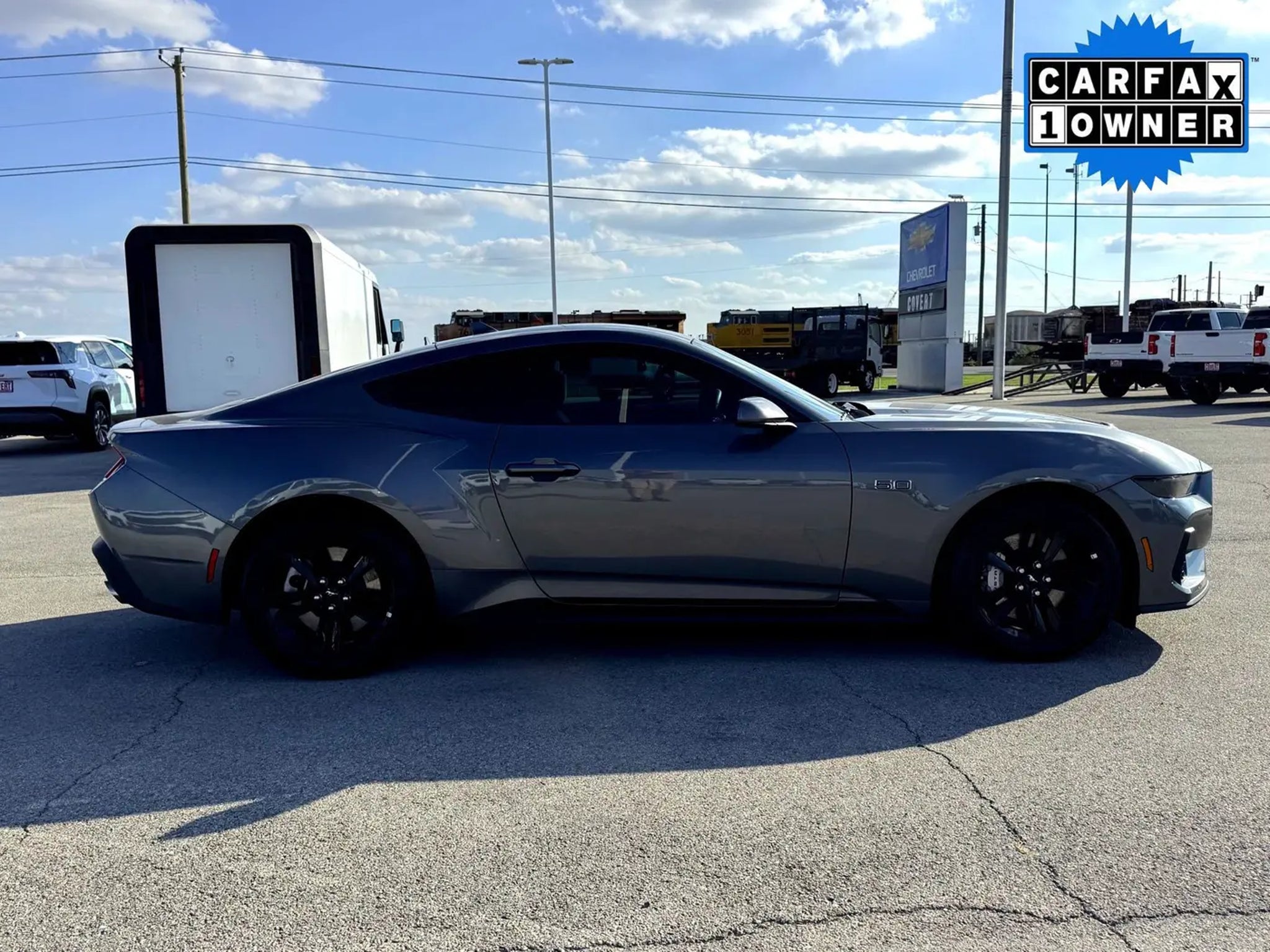 Certified V8 Power: 2025 Ford Mustang GT CoupeUnleash the iconic power of the Mustang with this certified, low-mileage 2025 Ford Mustang 2D Coupe, finished in striking Carbonized Gray Metallic. This sports car is a single-owner vehicle with a Clean Carfax history (One Owner, Clean Carfax), and is powered by the legendary 5.0L V8 Ti-VCT engine.The 5.0L V8 engine in the Mustang GT (implied by the 5.0L V8 and Equipment Group 300A Standard Package) delivers a stout 480 horsepower and 415 lb-ft of torque with the standard exhaust, which is boosted to 486 horsepower and 418 lb-ft of torque when equipped with the Active Valve Performance Exhaust as this one is!This Mustang is offered as a Ford Blue Advantage: Blue Certified vehicle, giving you quality assurance and warranty coverage:Certification Benefits: Enjoy peace of mind with a 139 Point Inspection and a Limited Warranty: 3 Month/4,000 Mile (whichever comes first) coverage, plus Roadside Assistance and 11,000 FordPass Rewards Points.Performance & Sound: The heart of this coupe is the 5.0L V8 engine, enhanced by the thrilling Active Valve Performance Exhaust, which allows you to adjust the volume of the muscle car growl.Technology & Safety: The interior features the intuitive SYNC 4 system for connectivity and media. Driver confidence is boosted by Blind Spot Monitoring (BLIS), Rear Parking Sensors, Exterior Parking Camera Rear, and Auto High-beam Headlights.This 2025 Mustang GT offers raw V8 power, advanced technology, and the assurance of a Ford certified pre-owned program.We are just a short drive from these areas: Austin 78758, Round Rock 78665, 78664, Georgetown 78626, 78628, 78633, Pflugerville 78660, Killeen 76540, 76542, Temple 76513, 76502, 76504, Elgin 78621, Taylor 76574, Bartlett 76511, Thorndale 76577, Coupland 78615, Granger 76530, Thrall 76578, Liberty Hill 78642, Leander 78641, 78646, Jarrell 76537, 78626 Cedar Park 78613, 78630. Please come out and be a part of the Covert family.