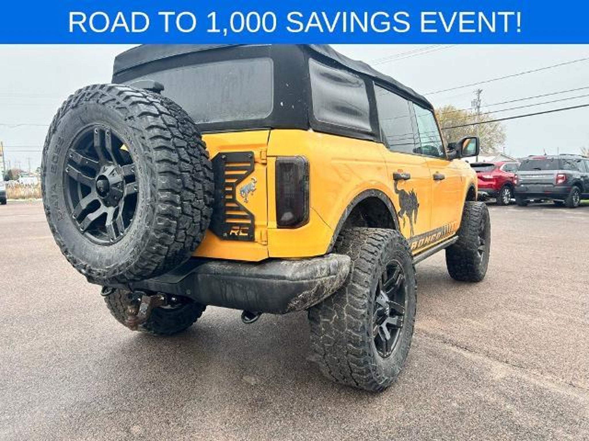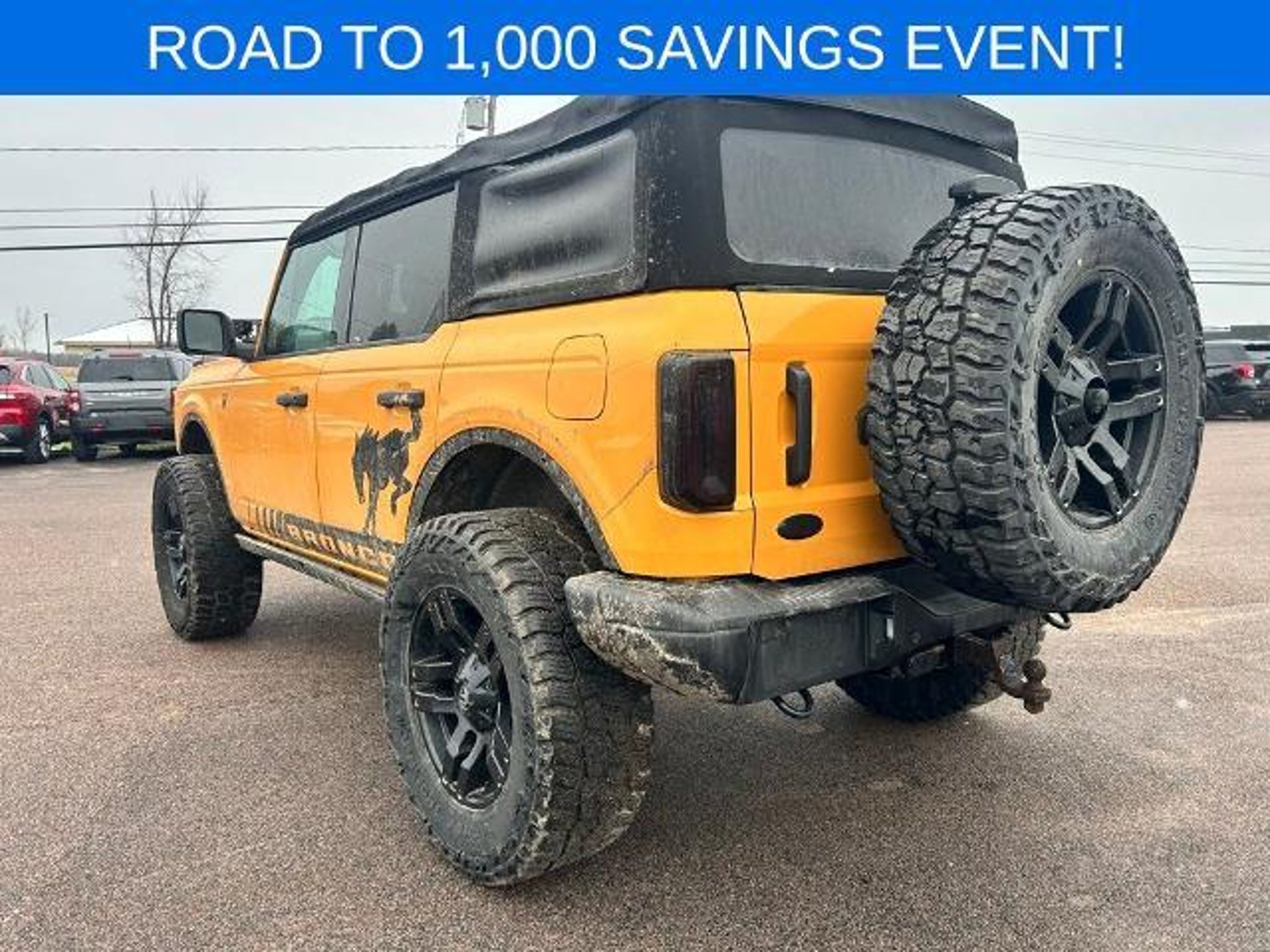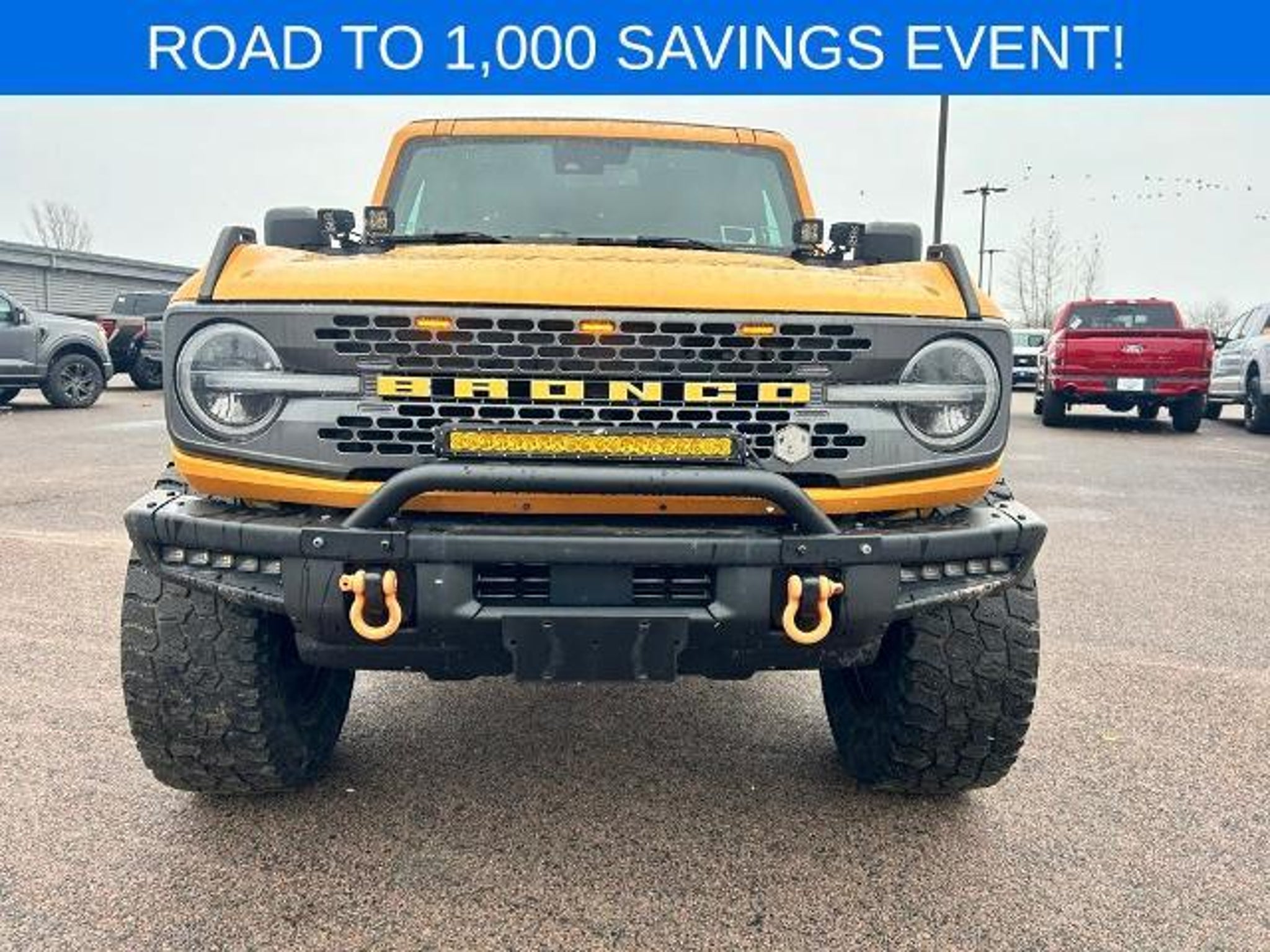LOCAL TRADE, BELOW BOOK VALUE, 4X4, BLUETOOTH HANDS FREE PHONE, BACK-UP CAMERA, NAVIGATION, APPLE CAR PLAY/ANDROID AUTO. Priced below KBB Fair Purchase Price! 2021 Ford Bronco Badlands Orange Metallic 4WD 10-Speed Automatic 2.3L EcoBoost I-4 This vehicle features Equipment Group 332A Mid Package (2-Door Intelligent Access w/Lock/Unlock, Ambient Footwell Lighting, Auto-Dimming Interior Rear-View Mirror, Connected Navigation, Dr & Pass Illuminated Sliding Visor Vanity Mirrors, Dual-Zone Electronic Automatic Temperature Control, Enhanced Voice Recognition, Front Row Heated Seats, Power Outlet - Back Side of Center Floor Console, and Reverse Sensing System), 4-Wheel Disc Brakes, 4.7 Axle Ratio, 6 Speakers, ABS brakes, Air Conditioning, Alloy wheels, AM/FM radio: SiriusXM with 360L, AM/FM Stereo, Auto High-Beam Headlamps, Auto High-beam Headlights, BLIS Blind Spot Information System, Brake assist, Compass, Connected Built-In Navigation, Delay-off headlights, Door Storage Bags, Driver door bin, Driver vanity mirror, Dual front impact airbags, Dual front side impact airbags, Emergency communication system: 911 Assist, Exterior Parking Camera Rear, Front & Rear Floor Liners, Front anti-roll bar, Front Bucket Seats, Front Center Armrest, Front License Plate Bracket, Front reading lights, Front wheel independent suspension, Fully automatic headlights, Heated door mirrors, Illuminated entry, Integrated roll-over protection, Lane-Keeping System, Leather Shift Knob, Low tire pressure warning, Marine Grade Vinyl Bucket Seats, Occupant sensing airbag, Outside temperature display, Overhead airbag, Overhead console, Panic alarm, Passenger door bin, Passenger vanity mirror, Power door mirrors, Power steering, Power windows, Pre-Collision Assist w/Automatic Emergency Braking, Radio data system, Rear-View Camera, Remote keyless entry, Security system, SiriusXM Radio w/360L, Speed control, Split folding rear seat, Steering wheel mounted audio controls, SYNC 4, Tachometer, Telescoping steering wheel, Tilt steering wheel, Towing Capability, Traction control, Trip computer, Variably intermittent wipers, Voltmeter, Wheels: 17 Black High Gloss-Painted Aluminum (64W), and Wheels: 17 Machined Carbonized Aluminum. Odometer is 627 miles below market average!