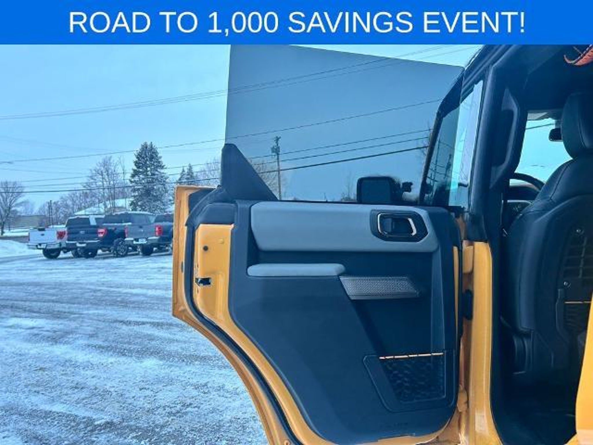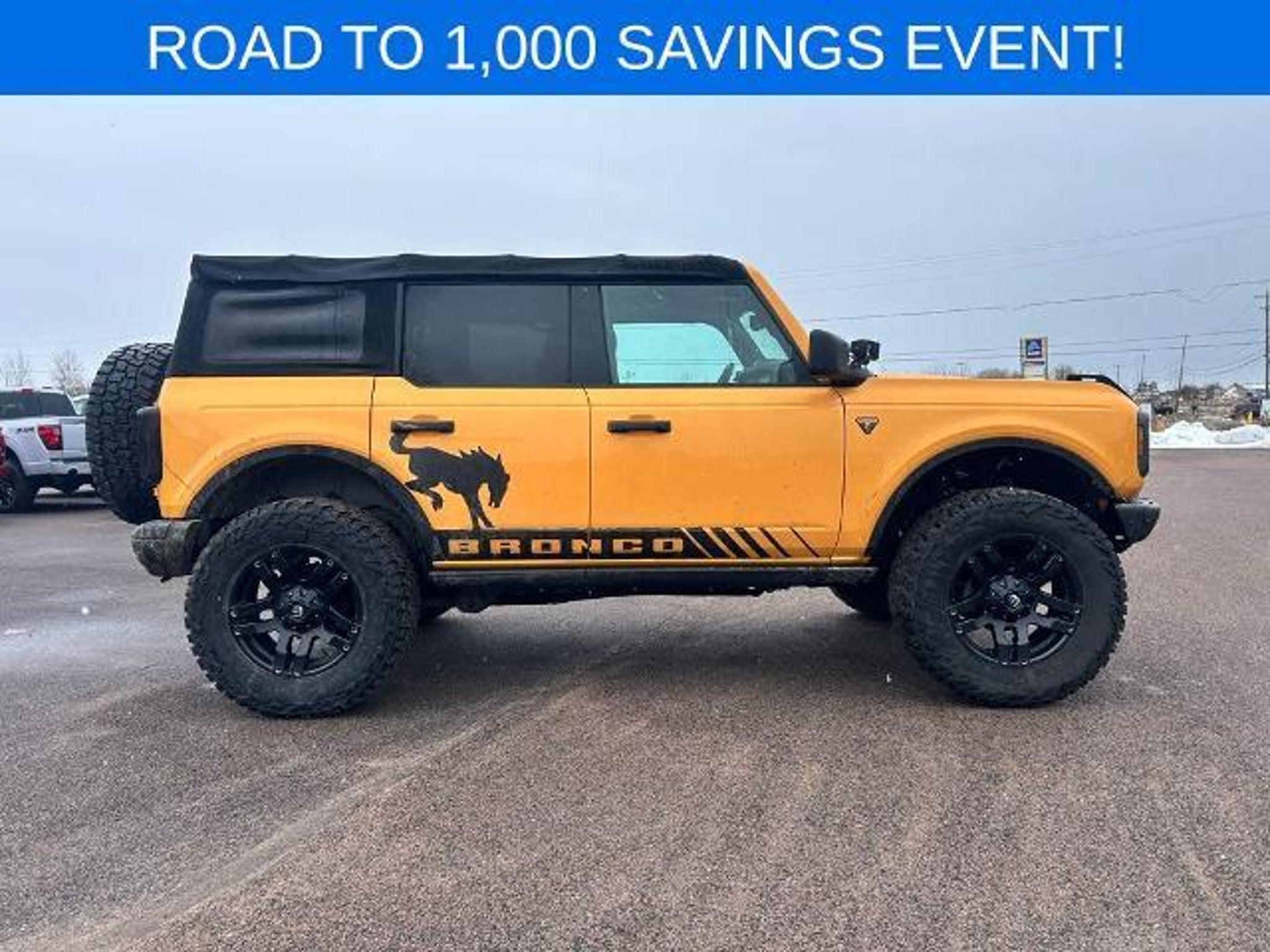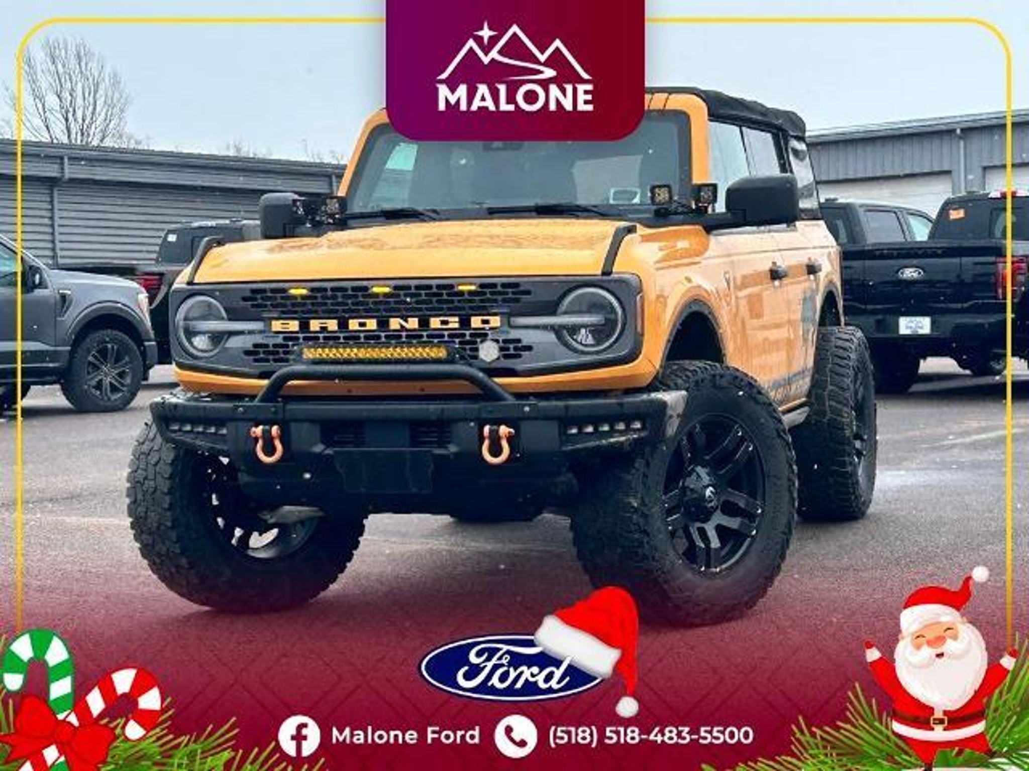 LOCAL TRADE, BELOW BOOK VALUE, 4X4, BLUETOOTH HANDS FREE PHONE, BACK-UP CAMERA, NAVIGATION, APPLE CAR PLAY/ANDROID AUTO. Priced below KBB Fair Purchase Price! 2021 Ford Bronco Badlands Orange Metallic 4WD 10-Speed Automatic 2.3L EcoBoost I-4 This vehicle features Equipment Group 332A Mid Package (2-Door Intelligent Access w/Lock/Unlock, Ambient Footwell Lighting, Auto-Dimming Interior Rear-View Mirror, Connected Navigation, Dr & Pass Illuminated Sliding Visor Vanity Mirrors, Dual-Zone Electronic Automatic Temperature Control, Enhanced Voice Recognition, Front Row Heated Seats, Power Outlet - Back Side of Center Floor Console, and Reverse Sensing System), 4-Wheel Disc Brakes, 4.7 Axle Ratio, 6 Speakers, ABS brakes, Air Conditioning, Alloy wheels, AM/FM radio: SiriusXM with 360L, AM/FM Stereo, Auto High-Beam Headlamps, Auto High-beam Headlights, BLIS Blind Spot Information System, Brake assist, Compass, Connected Built-In Navigation, Delay-off headlights, Door Storage Bags, Driver door bin, Driver vanity mirror, Dual front impact airbags, Dual front side impact airbags, Emergency communication system: 911 Assist, Exterior Parking Camera Rear, Front & Rear Floor Liners, Front anti-roll bar, Front Bucket Seats, Front Center Armrest, Front License Plate Bracket, Front reading lights, Front wheel independent suspension, Fully automatic headlights, Heated door mirrors, Illuminated entry, Integrated roll-over protection, Lane-Keeping System, Leather Shift Knob, Low tire pressure warning, Marine Grade Vinyl Bucket Seats, Occupant sensing airbag, Outside temperature display, Overhead airbag, Overhead console, Panic alarm, Passenger door bin, Passenger vanity mirror, Power door mirrors, Power steering, Power windows, Pre-Collision Assist w/Automatic Emergency Braking, Radio data system, Rear-View Camera, Remote keyless entry, Security system, SiriusXM Radio w/360L, Speed control, Split folding rear seat, Steering wheel mounted audio controls, SYNC 4, Tachometer, Telescoping steering wheel, Tilt steering wheel, Towing Capability, Traction control, Trip computer, Variably intermittent wipers, Voltmeter, Wheels: 17 Black High Gloss-Painted Aluminum (64W), and Wheels: 17 Machined Carbonized Aluminum. Odometer is 627 miles below market average!