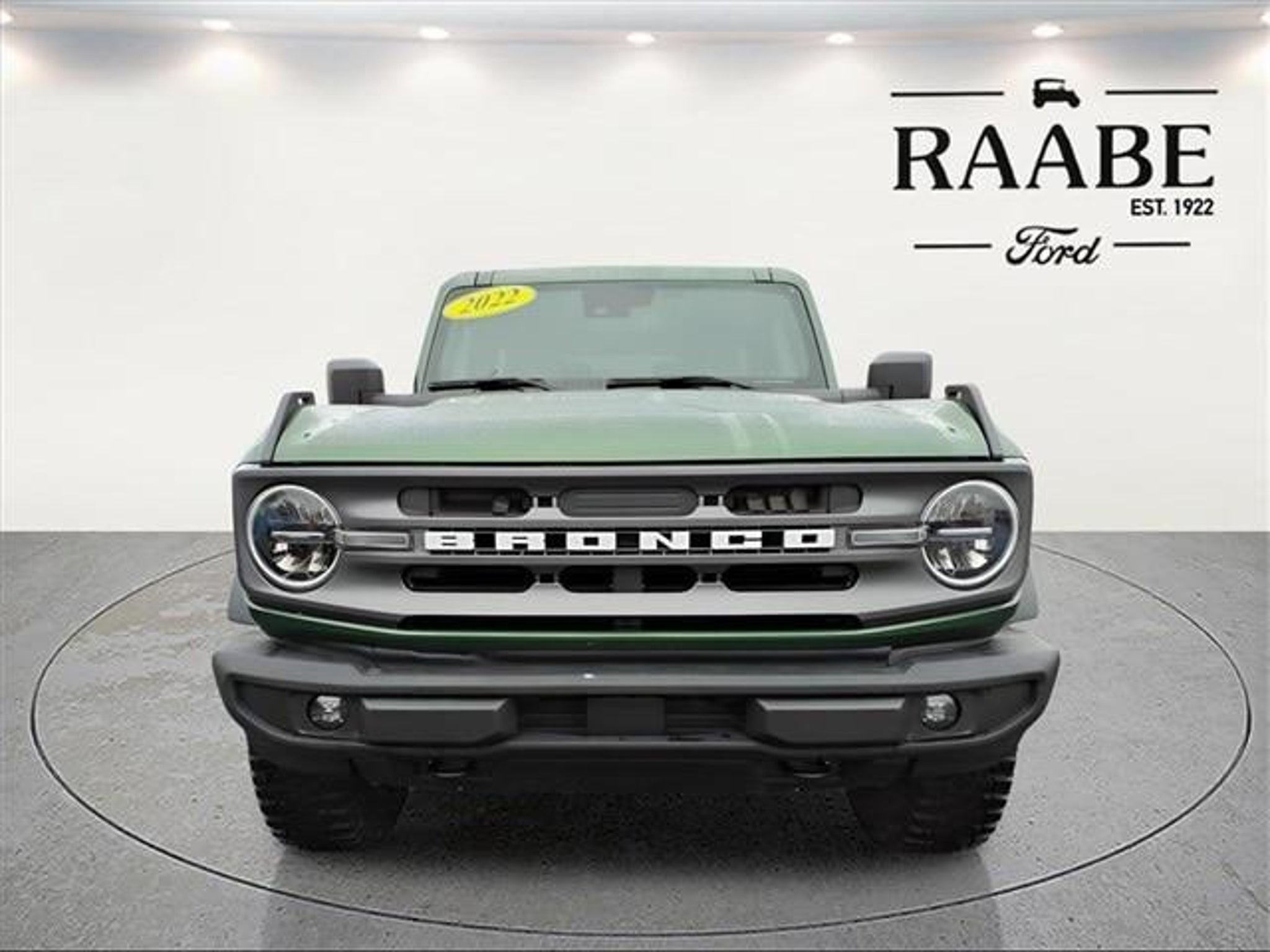 **Free CarFax provided on our website!** 2022 Ford Bronco 4WD Big Bend 10-Speed Automatic Eruption Green Metallic 2D Sport Utility 2.3L EcoBoost I-4 NAVIGATION, SYNC Bluetooth Technology, ALLOY WHEELS, TRAILER TOW, NO ACCIDENT CARFAX, TWO SETS OF KEYS, FULL TANK OF GAS UPON DELIVERY, HARD TOP, HEATED SEATS, 2D Sport Utility, 2.3L EcoBoost I-4, 4WD, 2-Door Intelligent Access w/Lock/Unlock, ABS brakes, Alloy wheels, Ambient Footwell Lighting, Auto-Dimming Interior Rear-View Mirror, Compass, Connected Navigation, Dr & Pass Illuminated Sliding Visor Vanity Mirrors, Dual-Zone Electronic Automatic Temperature Control, Electronic Stability Control, Enhanced Voice Recognition, Equipment Group 222A Mid Package, Front Row Heated Seats, Heated door mirrors, Illuminated entry, Low tire pressure warning, Navigation System, Power Outlet - Back Side of Center Floor Console, Rear Parking Sensors, Remote keyless entry, Remote Start System, Traction control. Awards: * NACTOY 2022 North American Utility of the Year Raabe Ford Lincoln has an A Rating with the Better Business Bureau. Feel free to compare us to other dealers in the area before your make your purchasing decision. We assist in finding the right vehicle that fits within your wants, needs and budget. We offer several options to ensure Your Vehicle Purchase and Give You Peace of Mind! We've been selling and servicing the residents of Allen, Putnam, Van Wert Counties and Lima, Delphos, and Ft. Wayne for 105 years.