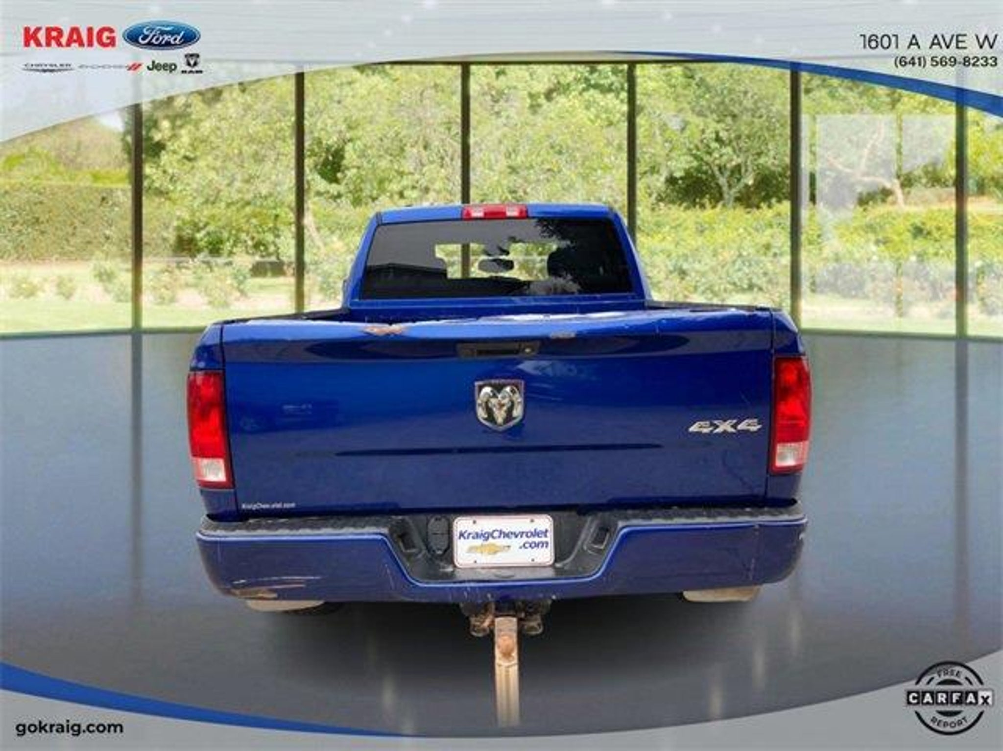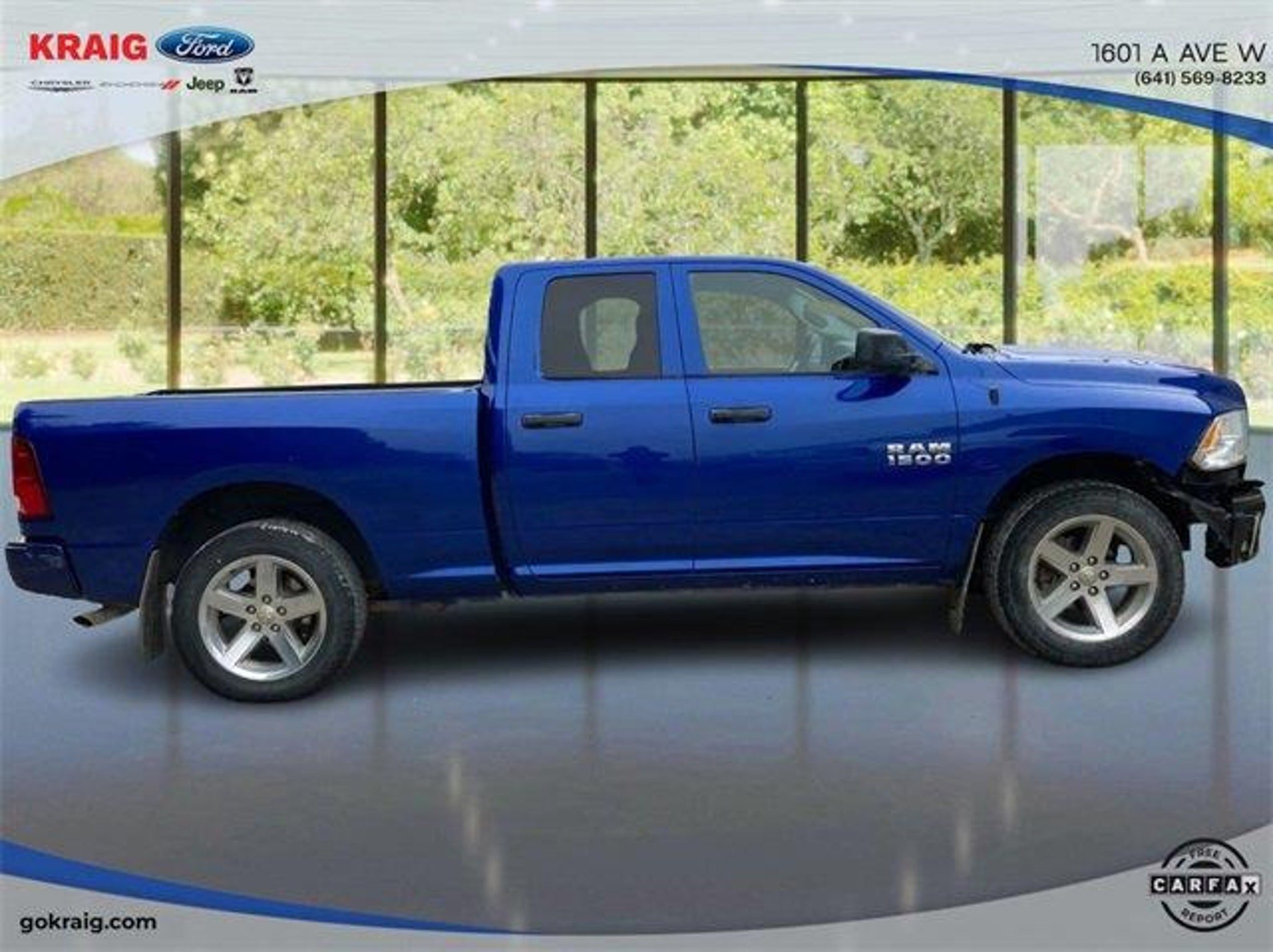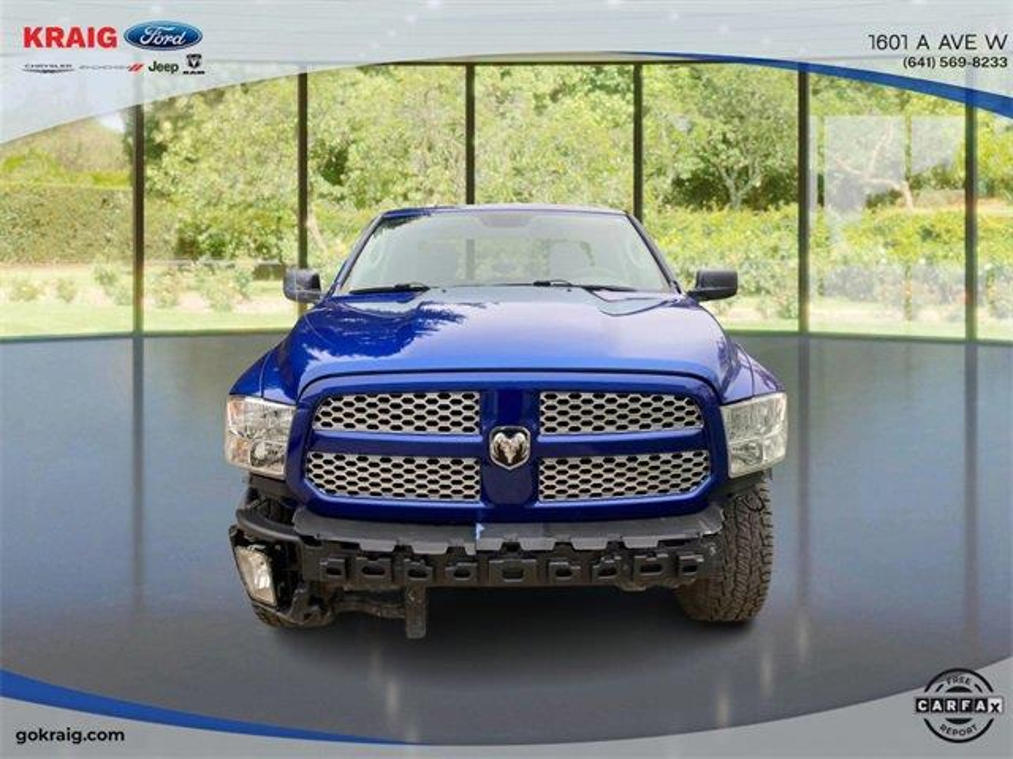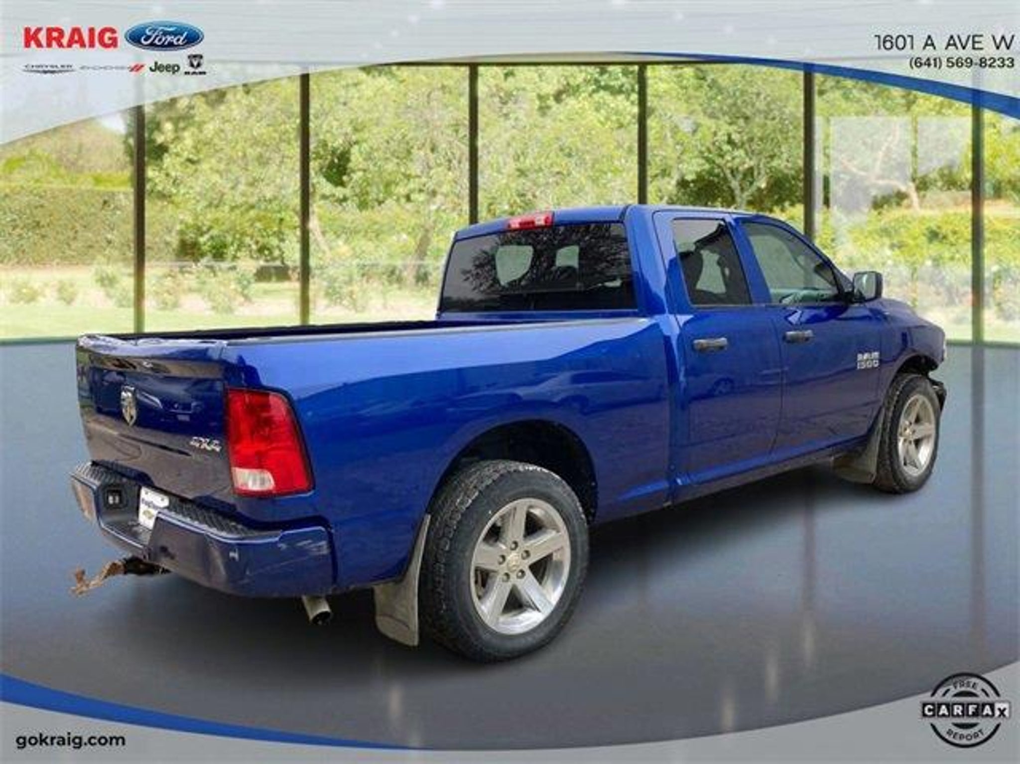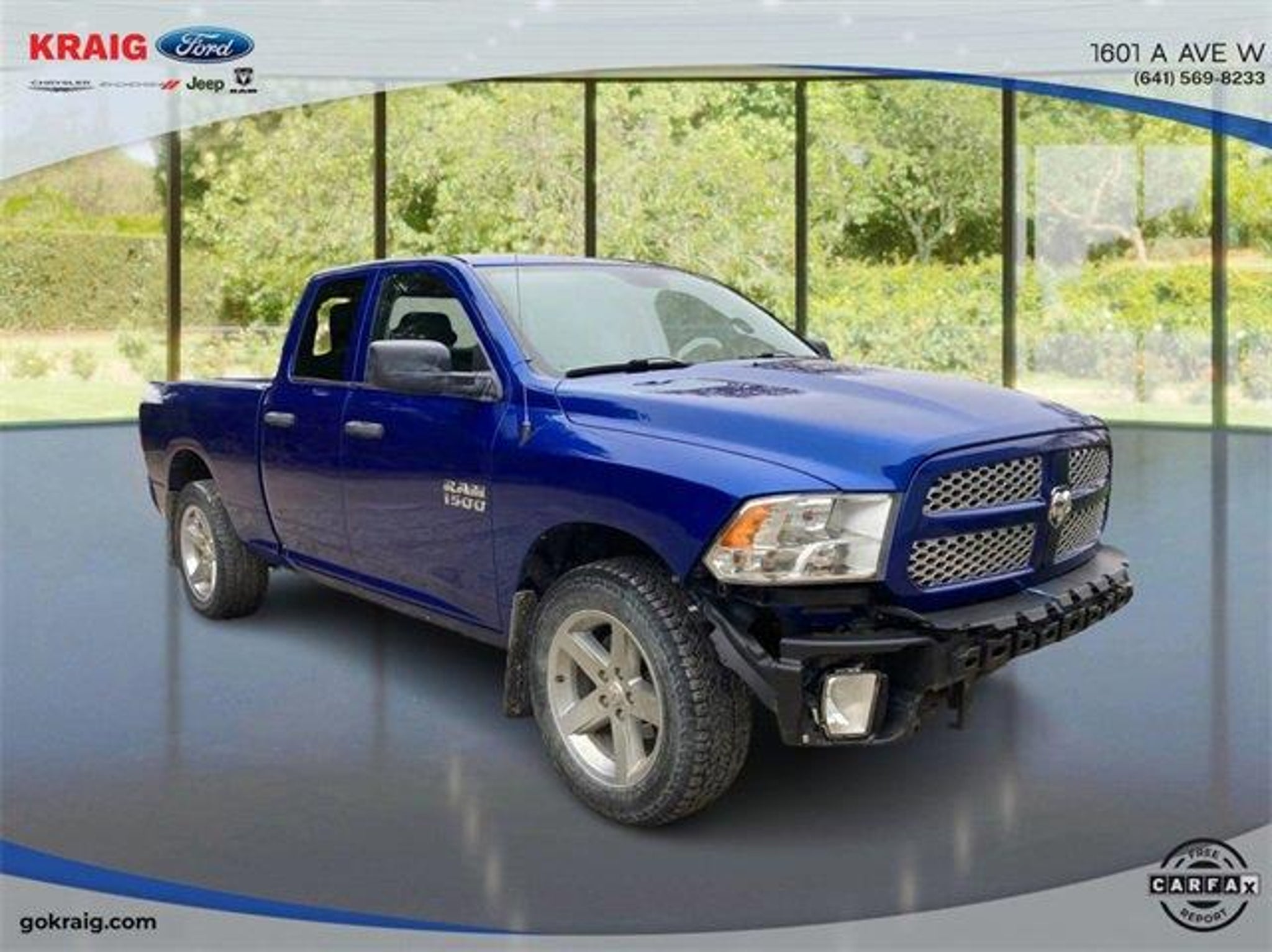 CARFAX One-Owner. Priced below KBB Fair Purchase Price!1-Year SiriusXM Radio Service, 17 x 7 Aluminum Wheels, 4-Wheel Disc Brakes, 40/20/40 Split Bench Seat, 5.0 Touchscreen Display, 6 Speakers, ABS brakes, Add Class IV Receiver Hitch, Air Conditioning, AM/FM radio, Audio Jack Input for Mobile Devices, Auto-dimming Rear-View mirror, Black Exterior Mirrors, Body Color Front Fascia, Body Color Grille, Body Color Rear Bumper w/Step Pads, Brake assist, Carpet Floor Covering, Center Hub, Charge Only Remote USB Port, Cloth 40/20/40 Bench Seat, Delay-off headlights, Delete Class IV Receiver Hitch, Delete Spray In Bedliner, Driver door bin, Dual front impact airbags, Dual front side impact airbags, Electronic Stability Control, Express Value Package, Exterior Mirrors w/Heating Element, For More Info, Call 800-643-2112, Front anti-roll bar, Front Armrest w/3 Cupholders, Front Center Armrest, Front Floor Mats, Front Fog Lamps, Front wheel independent suspension, Fully automatic headlights, GPS Antenna Input, Heated door mirrors, Heavy Duty Vinyl 40/20/40 Split Bench Seat, Integrated Voice Command w/Bluetooth, Low tire pressure warning, Manual Adjust Seats, Media Hub (USB, AUX), No Satellite Coverage w/AK/HI/PR/VI/GU, Occupant sensing airbag, Overhead airbag, Overhead Console, ParkView Rear Back-Up Camera, Passenger door bin, Power door mirrors, Power steering, Power windows, Quick Order Package 22J Express, Radio data system, Radio: 3.0, Radio: Uconnect 3 w/5 Display, Ram 1500 Express, Rear anti-roll bar, Rear Floor Mats, Rear Folding Seat, Rear step bumper, Rear View Day/Night Mirror, Remote Keyless Entry w/All-Secure, Remote USB Port, SiriusXM Satellite Radio, Speed control, Tachometer, Temperature & Compass Gauge, Tilt steering wheel, Traction control, Variably intermittent wipers, Voltmeter, Wheels: 20 x 8 Aluminum Chrome Clad.Blue Streak Pearlcoat 2018 Ram 1500 Express 4WD 8-Speed Automatic 3.6L V6 24V VVTAt Kraig Ford CDJR our vast selection of Pre-Owned vehicles along with competitive pricing and financing options equals great deals and savings for you!Kraig Ford CDJR is a family owned dealership and that is portrayed in the small town atmosphere of the dealership. The owner of the dealership, Craig Ford, is a veteran of the U.S. Army and proudly supports our troops and veterans.