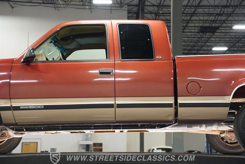 Trucks like this don't come around too often. This 1998 GMC Sierra 1500 looks and drives very well for its age. With no notable restoration, someone has taken very good care of this truck. The Light Autumnwood and Copper paint is believed to be original and presents very well. The chrome bumpers still shine, and the original wheels are clean and in good shape. There is a trailer hitch on the bumper for light towing and a trailer hitch assembly underneath for heavier-duty towing. A bed liner protects the truck bed, and polished diamond tread-bright railing covers are installed on top of the quarter panels and tailgate.