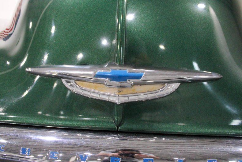 This 1950 Chevrolet Styleline Coupe presents a striking blend of vintage character and thoughtful modern upgrades. Finished in a rich metallic green, the car has a smooth, eye-catching shine that pairs perfectly with its classic Paint Master wheels, complete with chrome outer rings and bright chrome hubcaps. The exterior maintains the timeless look of a post-war Chevy while incorporating subtle enhancements that elevate its presence on the road. A third taillight has been added for safety, and the trunk has been fully recoated and fitted with a new trunk mat. New taillight gaskets further complement the clean, refreshed appearance.