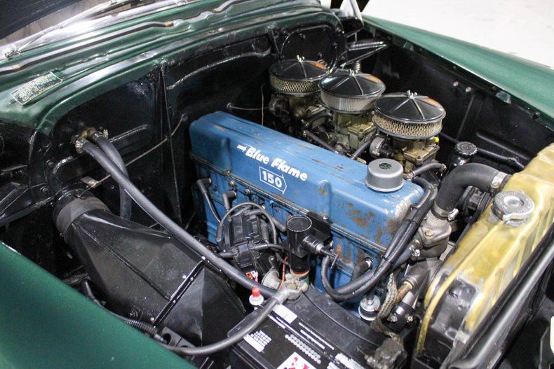 Under the hood, this Styleline houses a 235-cubic-inch inline-six backed by a performance-oriented induction and ignition setup. The engine is equipped with a three-deuces carburetor arrangement, a split manifold with dual exhaust, and an HEI distributor for improved spark and reliability. Power is delivered through a five-speed manual transmission sourced from an S-10, paired with an S-10 rear end to create a highway-friendly drivetrain that dramatically improves drivability compared to the car's original configuration.