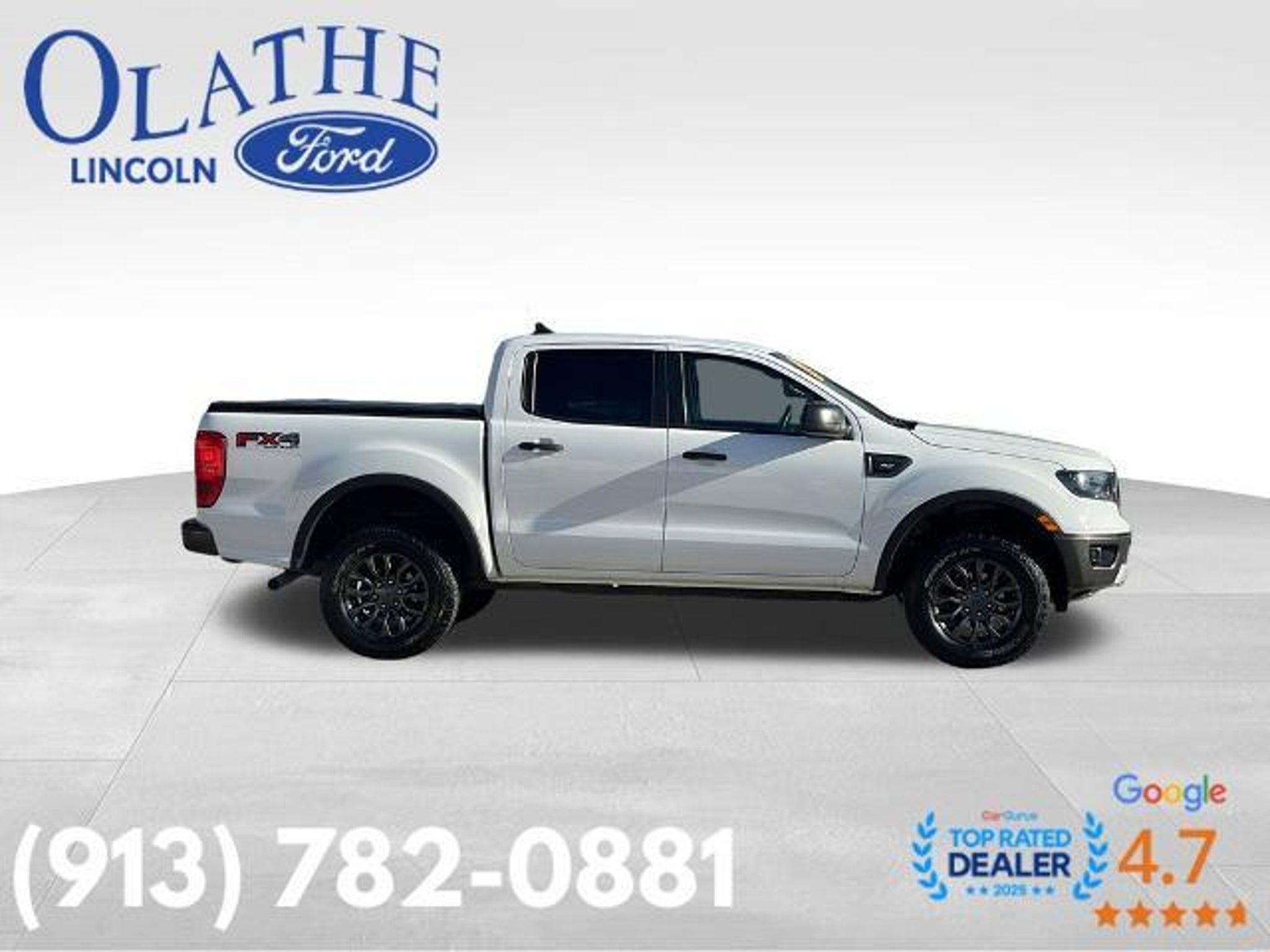 2023 Ford Ranger XLT Oxford White 4WD **1-OWNER - NO ACCIDENTS** **APPLE CARPLAY/ANDROID AUTO** **FORDPASS CONNECT** 110V AC Power Outlet Auto-Dimming Rear-View Mirror Black Mesh Grille w/Magnetic Painted Surround Black Wheel-Lip Molding Class IV Trailer Hitch Receiver Electronic-Locking Rear Differential Equipment Group 301A Mid Exterior Parking Camera Rear FX4 Off-Road Box Decal FX4 Off-Road Package Leather-Wrapped Shifter Leather-Wrapped Steering Wheel Magnetic Painted Fender Vent Surround Magnetic Painted Front & Rear Bumper Off-Road Screen in Cluster Off-Road Tuned Suspension Rear Parking Sensors Sport Appearance Package Sport Box Decal Terrain Management System Trailer Tow Package Wheels: 17 Magnetic Painted Aluminum Sport 4-Wheel Disc Brakes 4G LTE Wi-Fi Hotspot Removal 6 Speakers ABS brakes Air Conditioning Alloy wheels AM/FM radio: SiriusXM AM/FM Stereo Auto High-beam Headlights Auto Start-Stop Removal Automatic temperature control Brake assist Bumpers: body-color Compass Delay-off headlights Driver door bin Driver vanity mirror Dual front impact airbags Dual front side impact airbags Electronic Stability Control Emergency communication system: SYNC 3 911 Assist Front anti-roll bar Front Bucket Seats Front Center Armrest Front dual zone A/C Front fog lights Front Premium Cloth Bucket Seats Front reading lights Front wheel independent suspension Fully automatic headlights Illuminated entry Low tire pressure warning Occupant sensing airbag Outside temperature display Overhead airbag Overhead console Panic alarm Passenger door bin Passenger vanity mirror Power door mirrors Power steering Power windows Rear reading lights Rear seat center armrest Rear step bumper Rear window defroster Remote keyless entry Remote Start System Security system SiriusXM Satellite Radio Speed control Speed-sensing steering Steering wheel mounted audio controls SYNC 3 SYNC 3/Apple CarPlay/Android Auto Telescoping steering wheel Tilt steering wheel Traction control Trip computer Variably intermittent wipers Voltmeter Wheels: 17 Silver-Painted Aluminum 110V AC Power Outlet Auto-Dimming Rear-View Mirror Black Mesh Grille w/Magnetic Painted Surround Black Wheel-Lip Molding Class IV Trailer Hitch Receiver Electronic-Locking Rear Differential Equipment Group 301A Mid Exterior Parking Camera Rear FX4 Off-Road Box Decal FX4 Off-Road Package Leather-Wrapped Shifter Leather-Wrapped Steering Wheel Magnetic Painted Fender Vent Surround Magnetic Painted Front & Rear Bumper Off-Road Screen in Cluster Off-Road Tuned Suspension Rear Parking Sensors Sport Appearance Package Sport Box Decal Terrain Management System Trailer Tow Package Wheels: 17 Magnetic Painted Aluminum Sport. With Market Value Pricing youll find our competitive market-based price on every new vehicle upfront. No games. No hassles. Just real prices! ..... Call our Internet Specialists to schedule a test drive! . Olathe Ford Lincoln is Home to the Worlds Happiest Customers! Stickers prepared by Dealer Specialties at the request of the Dealer solely for his and its conveniences and this Dealership make no representations expressed or implied to any actual or perspective purchaser or owner of this vehicle as to existence ownership accuracy description or condition of this vehicle listed equipment accessories price or any warranties. Any and all differences must be addressed prior to the sale of the vehicle. Dealer will not honor pricing errors displayed here. Pricing does not include administrative fee of $499.00 All subject to management approval.