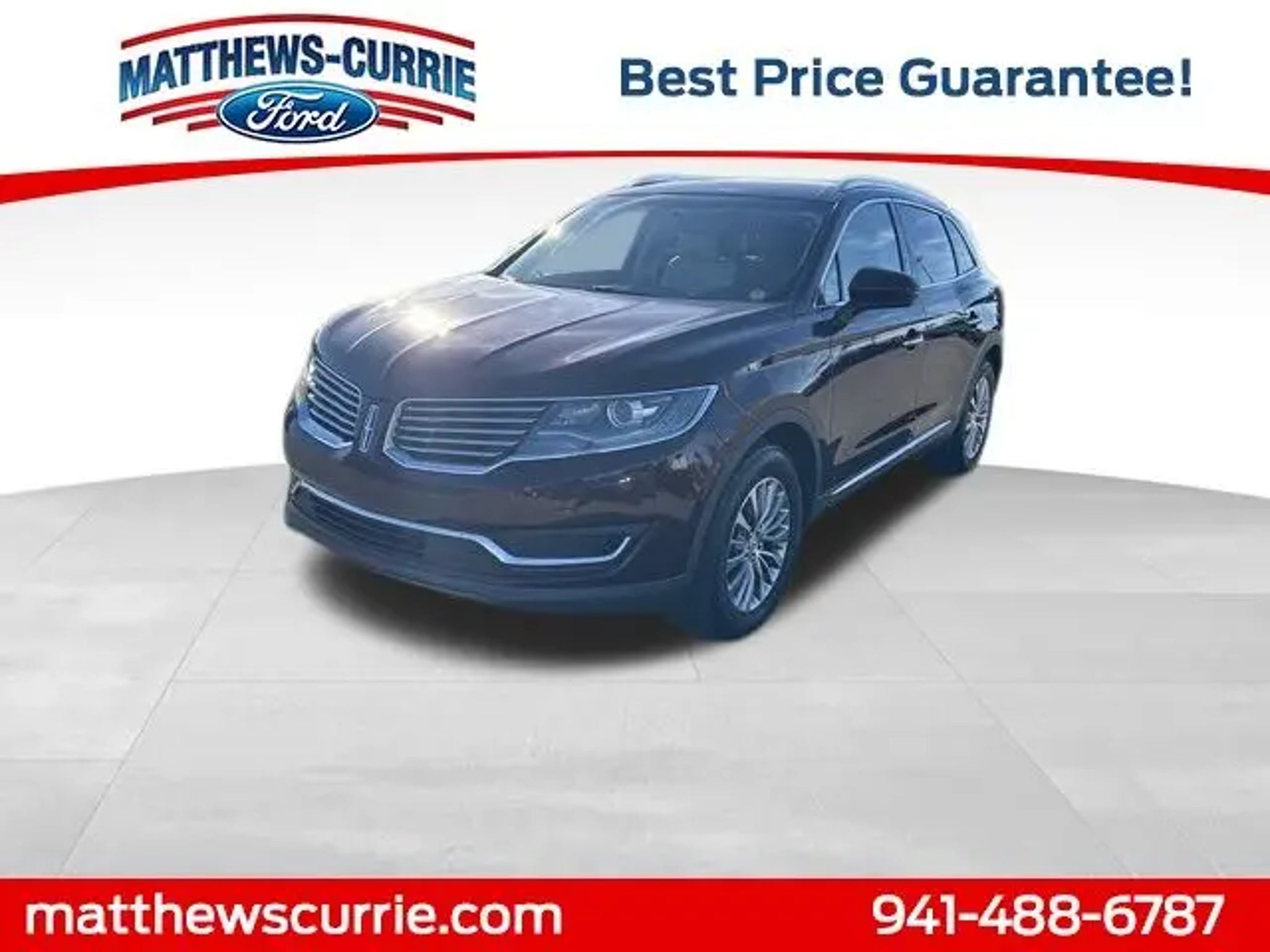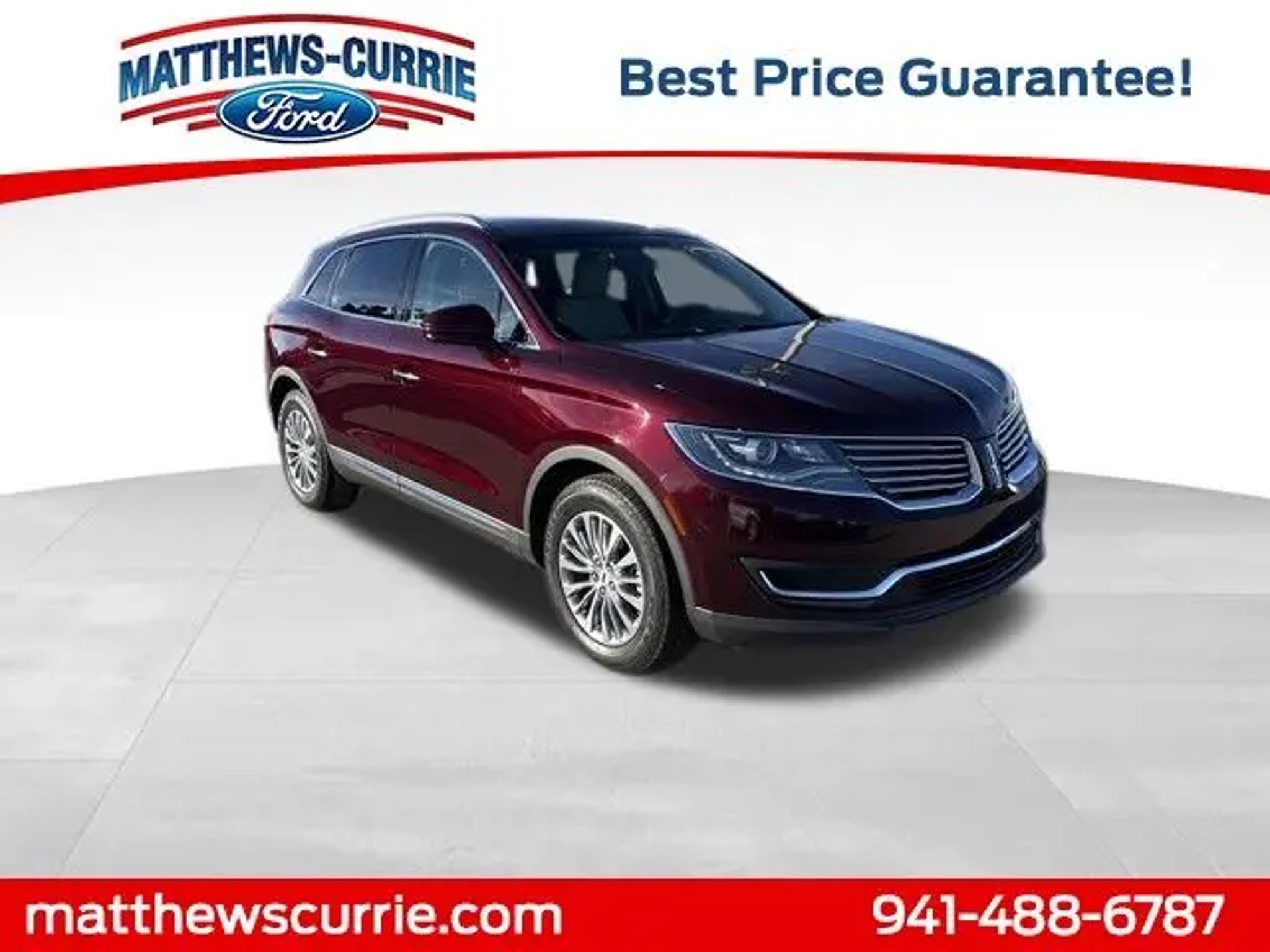 This 2017 Lincoln MKX Select in Burgundy features:CLEAN CARFAX 3.7L V6 ENGINE*18:PREM PAINTED ALUM WHEELS*SELECT PLUS PACKAGE*NAVIGATION*BLIS*HEATED LEATHER SEATS*DUAL 10 WAY POWER SEATS*YOUR UNDISPUTED PRICE LEADER MATTHEWS CURRIE FORD Awards: * 2017 IIHS Top Safety Pick Reviews: * Quiet interior with spacious rear seating; comfortable ride quality; a lot of features for the money; strong turbocharged V6 engine option. Source: Edmunds Must finance with Matthews Currie Ford to get advertised savings second key, floor mats, owner's manual may not be available on all pre-owned vehicles, all prices are plus tax, tag, licensing and $999.00 dealership fee and may not include certification and reconditioning costs. While Every Reasonable Effort Is Made To Ensure The Accuracy Of This Data, We Are Not Responsible For Any Errors Or Omissions Contained On These Pages.