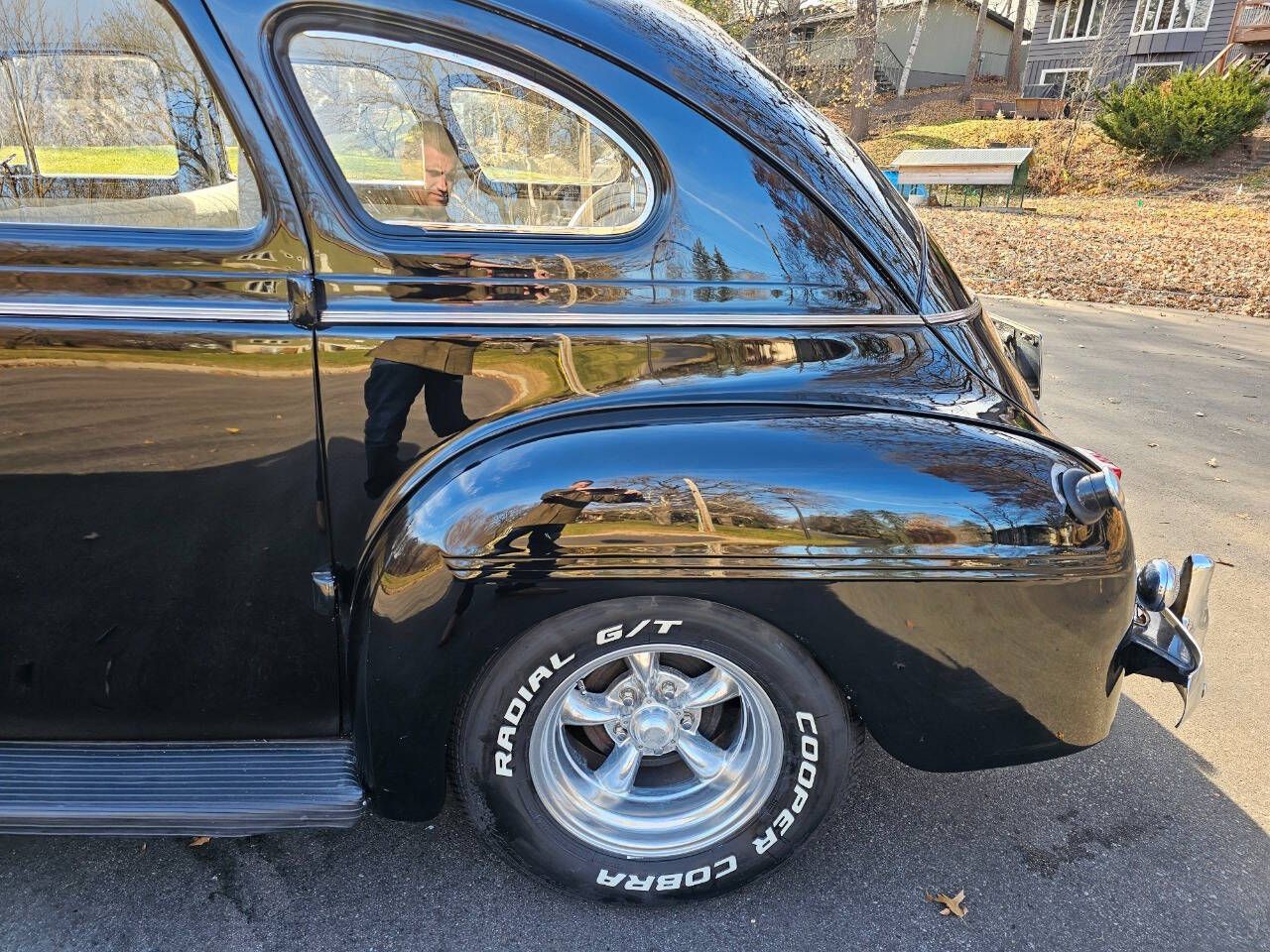 This beautiful 1940 Dodge Sedan Street Rod to cruise the streets. It has been well built and very well maintained. It always is stored in a temperature-controlled storage. Under the hood is a built 350ci V8 with a GM aluminum intake, Holly 4bbl carb, and HEI ignition. It is paired to a 700R4 4-speed transmission and a 10-bolt rear axle with posi. It is equipped with power steering, power front disc brakes, Vintage Air System (blows cold), aftermarket stereo system (in glove box), Faria gauges, tilt steering column, aftermarket billet steering wheel, front and rear seat belts, Cooper tires, American Racing wheels, dual exhaust, Flowmaster mufflers, and battery relocated to the trunk. The exterior is in good condition and shows well. There are a couple road chips from being drive. The body panels, lines, gaps, etc., are all in good condition. The interior is in overall good condition. There are a couple stains seen on the carpet. The door panels, dash, seats, headliner, etc. are all in good condition. All lights, turn signals, wipers, radio, etc. are all in good working condition. This is a great entry level street rod with all the amenities to drive coast to coast with no worries. We have a clean and clear title in hand as well as additional photos and video upon request. We can assist with financing, warranty, and worldwide shipping Check us out online: https://www.madmusclegarage.com View our full inventory: https://www.mmgclassiccars.com About Mad Muscle Garage: Discover Mad Muscle Garage, your ultimate destination for vintage and collector car aficionados. Immerse yourself in our array of professional, high-end services tailored to cater to both seasoned collectors and weekend enthusiasts. Explore our time-tested, globally renowned vehicle consignment program, guaranteeing your classic car's sale within 90 days, devoid of any upfront or concealed fees. Our vehicles find homes not just locally but also across state lines and overseas. Engage our certified vehicle appraisal services covering diverse makes, models, and years, spanning from bank/insurance market value assessments to instances of total loss. Experience our nationwide travel for third-party pre-purchase inspections, providing you unparalleled assurance when purchasing a vehicle unseen. Rely on our meticulously detailed inspection reports, accompanied by comprehensive narratives, abundant visual aids, including photos and videos, fostering your confidence in your purchase decision. Peruse our extensive online dealership showcasing a dynamic inventory of classic cars for sale, continually refreshed with new arrivals weekly. For specific requirements, leverage our vehicle locating service, ensuring your dream car becomes a reality. Mad Muscle Garage doesn't just stop at sales; we offer a spectrum of automotive services, from routine tune-ups to comprehensive rotisserie restorations, addressing any automotive need, big or small. Your journey into the world of classic cars starts here. Let Mad Muscle Garage create your next automotive memory! Contact Us: 952-220-2993 or matt@madmusclegarage.com