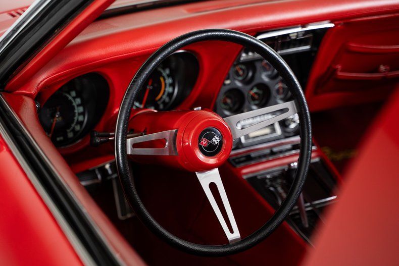 This 1971 Corvette captures everything people love about an early C3 Corvette. It retains its numbers-matching 350 V8 and Turbo-Hydramatic automatic transmission, a pairing that gives this Chevrolet Corvette the smooth, confident feel the C3 generation is known for. Finished in Mille Miglia Red with T-tops and a chrome luggage rack, it has the unmistakable presence of a true Corvette.