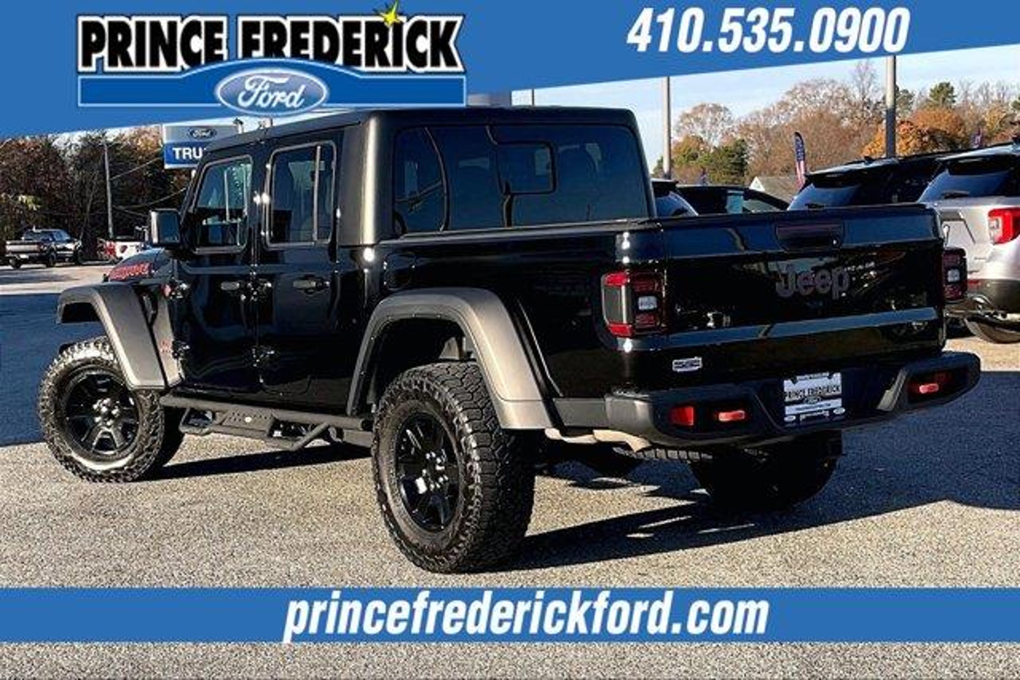 2023 Jeep Gladiator Mojave **ONE OWNER, *** 4 WHEEL DRIVE, ***CREW CAB, LOCAL, ONE OWNER TRADE!, STILL UNDER FACTORY WARRANTY!, THIS IS A MUST SEE AND DRIVE!, HARD TOP, AUTOMATIC, PREMIUM LED LIGHTING GROUP, COLD WEATHER GROUP, TRAILER TOW PACKAGE, LEATHER, Gladiator Mojave, 4D Crew Cab, 3.6L V6 24V VVT, 8-Speed Automatic, 4WD, Black Clearcoat, Black Leather. NO HIDDEN COSTS ! ALL VEHICLE PRICING INCLUDES COMPREHENSIVE 100 POINT MD STATE INSPECTION AND ALL RECONDITIONING FEES. We at PRINCE FREDERICK FORD are driven to provide the finest automotive purchasing and ownership experience by not only meeting the customer's expectations, but consistently exceeding them. Our goal is to become the BEST STORE FOR YOU through an unrivaled DEDICATION TO EXCELLENCE. CALL US AT 1-410-535-0900 OR VISIT US ON THE WEB AT WWW.PRINCEFREDERICK FORD.COM.We at PRINCE FREDERICK FORD are driven to provide the finest automotive purchasing and ownership experience by not only meeting the customer's expectations, but consistently exceeding them. Our goal is to become the world's largest volume dealership through an unrivaled DEDICATION TO EXCELLENCE. CALL US AT 1.410.535.0900 OR visit us on the web at WWW.PRINCEFREDERICKFORD.COM.