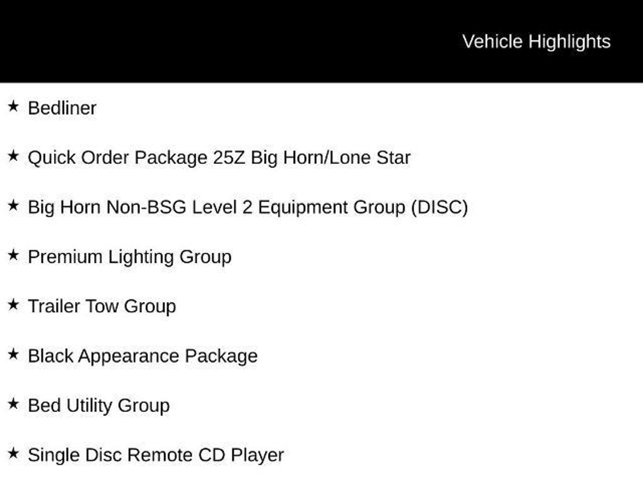 Diamond Black Crystal Pearlcoat 2019 Ram 1500 Big Horn/Lone Star RWD 8-Speed Automatic HEMI 5.7L V8 Multi Displacement VVT Bedliner, 1-Year SiriusXM Radio Service, 3 Rear Seat Head Restraints, 4 Adjustable Cargo Tie-Down Hooks, 4 Way Front Headrests, 8.4 Touchscreen Display, Add Class IV Receiver Hitch, Air Conditioning ATC w/Dual Zone Control, Apple CarPlay, Auto-Dimming Exterior Driver Mirror, Auto-Dimming Rear-View Mirror, Bed Utility Group, Big Horn IP Badge, Big Horn Non-BSG Level 2 Equipment Group (DISC), Black Appearance Package, Black Exterior Truck Badging, Black Headlamp Bezels, Black Interior Accents, Body Color Door Handles, Body Color Front Bumper, Body Color Rear Bumper w/Step Pads, Bucket Seats, Center Console Parts Module, Class IV Receiver Hitch, Cluster 7.0 TFT Color Display, Dampened Tailgate, Deluxe Cloth Bucket Seats, Dual Exhaust w/Black Tips, Exterior Mirrors Courtesy Lamps, Exterior Mirrors w/Memory, Exterior Mirrors w/Supplemental Signals, Foam Bottle Insert (Door Trim Panel), For More Info, Call|Front LED Fog Lamps, Front Seat Back Map Pockets, Full Length Floor Console, Glove Box Lamp, Google Android Auto, Grille B/Color Outline 1 Texture 2, Heated Front Seats, Heated Steering Wheel, Integrated Center Stack Radio, LED Reflector Headlamps, LED Taillamps, Manual Adjust 4-Way Front Passenger Seat, ParkSense Front/Rear Park Assist w/Stop, Pick-Up Box Lighting, Power 4-Way Driver Lumbar Adjust, Power 8-Way Driver Seat, Power Adjustable Pedals, Power Black Trailer Tow Mirrors, Power Heated Fold Away Mirrors, Power Heated Fold-Away Mirrors, Power-Folding Mirrors, Premium Lighting Group, Quick Order Package 25Z Big Horn/Lone Star, Radio: Uconnect 4 w/8.4 Display, Rear 60/40 Folding Seat, Rear Dome w/On/Off Switch Lamp, Rear Power Sliding Window, Rear Window Defroster, Remote Start System, Security Alarm, Single Disc Remote CD Player, SiriusXM Satellite Radio, Spray In Bedliner, Steering Wheel Mounted Audio Controls, Sun Visors w/Illuminated Vanity Mirrors, Trailer Brake Control, Trailer Tow Group, Trailer Tow Mirrors, Universal Garage Door Opener, Wheels: 20 x 9 Cast Aluminum Black. This 2019 Ram 1500 Big Horn/Lone Star is available for sale just a country mile down the road from Corpus Christi in Aransas Pass, TX. Awards: * Motor Trend Automobiles of the year * NACTOY 2019 North American Truck of the Year * 2019 KBB.com Best Auto Tech Awards * 2019 KBB.com 10 Favorite New-for-2019 Cars * 2019 KBB.com 10 Best Road Trip Cars Make the short drive from Corpus Christi to Aransas Pass, TX and have your new 2019 Ram 1500 Big Horn/Lone Star sitting in your driveway this evening!