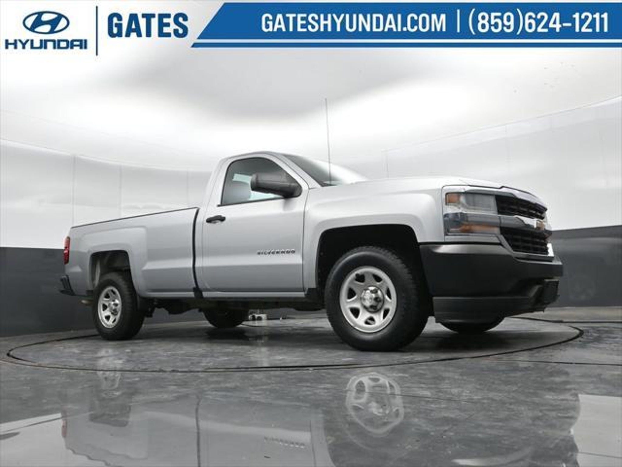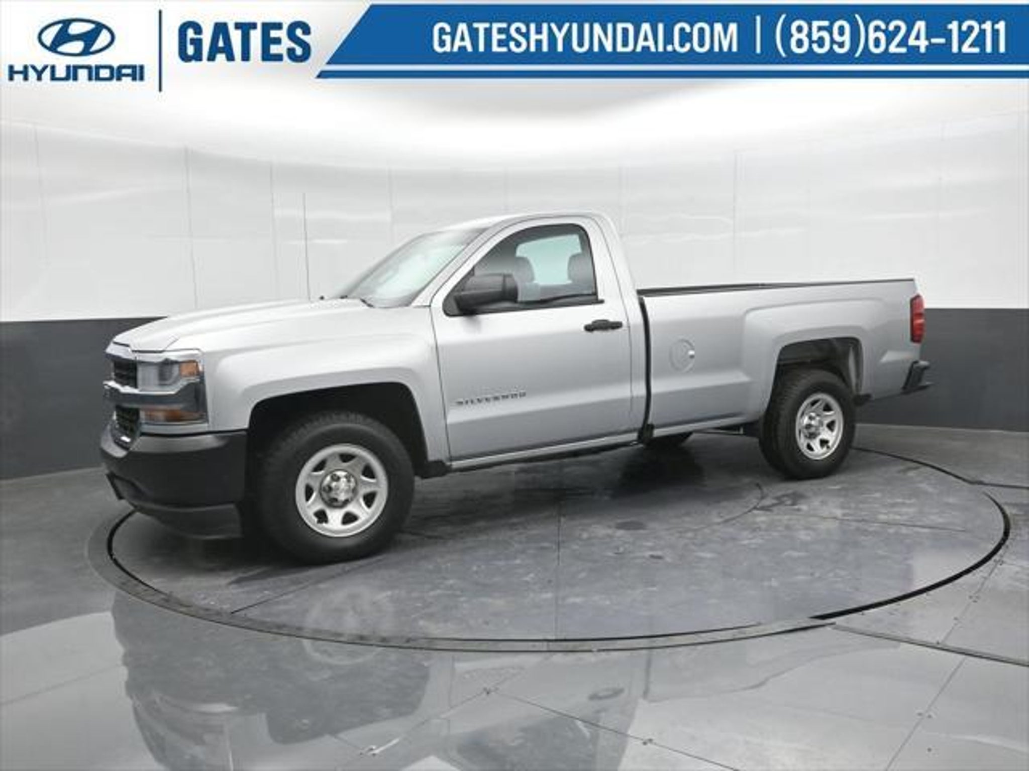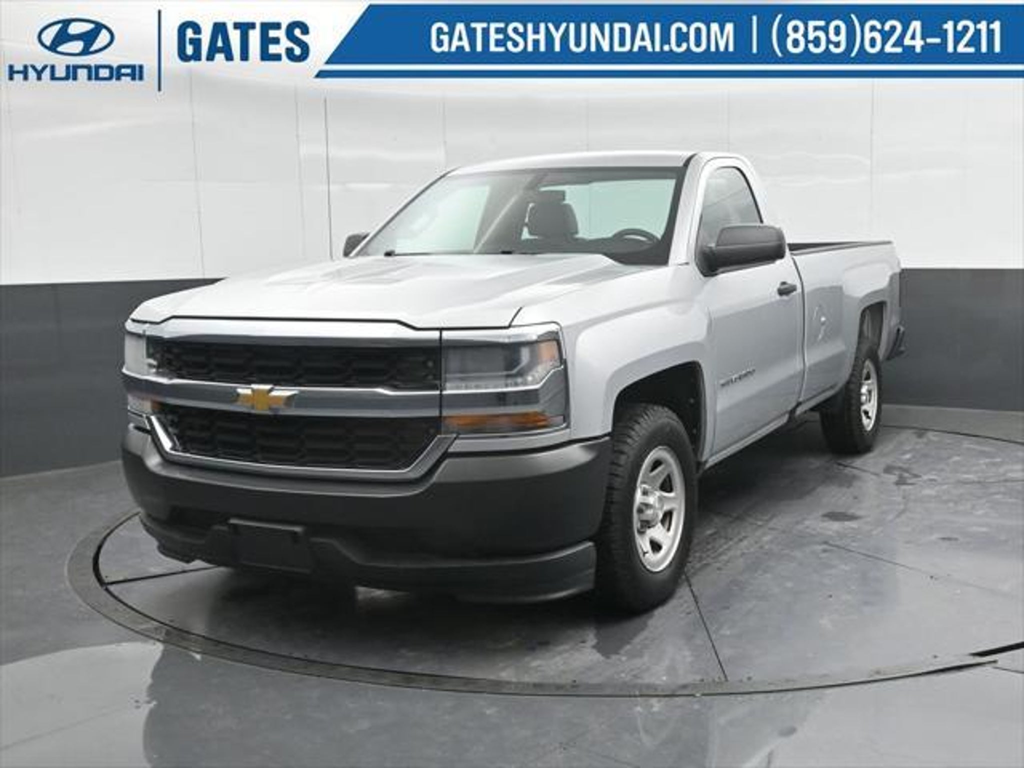 Silver Ice Metallic 2016 Chevrolet Silverado 1500 WT RWD 6-Speed Automatic Electronic with Overdrive EcoTec3 4.3L V6 Gates Hyundai 6-Speed Automatic Electronic with Overdrive Dark Ash With Jet Black Interior Accents Cloth 150 Amp Alternator 3.23 Rear Axle Ratio 4-Wheel Disc Brakes 40/20/40 Front Split Bench Seat 6 Speaker Audio System ABS brakes Air Conditioning AM/FM radio Black Power Adjustable Heated Outside Mirrors Bluetooth® For Phone Brake assist Chrome Grille Surround Cloth Seat Trim Deep-Tinted Glass Delay-off headlights Driver door bin Driver Information Center Dual front impact airbags Dual front side impact airbags E85 FlexFuel Capable Electronic Stability Control Front anti-roll bar Front Center Armrest w/Storage Front Chrome Bumper Front License Plate Kit Front reading lights Front wheel independent suspension Fully automatic headlights Graphite-Colored Rubberized-Vinyl Floor Covering Heavy Duty Suspension High-Intensity Discharge Headlights Low tire pressure warning Manual Tilt Wheel Steering Column Occupant sensing airbag OnStar 6 Months Guidance Plan OnStar w/4G LTE Overhead airbag Overhead console Passenger door bin Passenger vanity mirror Power steering Power Windows w/Driver Express Up Radio data system Radio: AM/FM w/7 Diagonal Color Touch Screen Rear Chrome Bumper Rear step bumper Remote Keyless Entry Remote Locking Tailgate Speed control Speed-sensing steering Tachometer Tilt steering wheel Traction control Trailering Package Trip computer Variably intermittent wipers Voltmeter 6-Speed Automatic Electronic with Overdrive Dark Ash With Jet Black Interior Accents Cloth. Odometer is 38853 miles below market average! We are a family owned and operated business that began in 1915. We are now in our 4th generation of family ownership. As a family-run business its never been about gimmicks to get customers. We believe in earning our business the hard way - the only way - with referrals and satisfied customers. Were very proud of our business and dedication to superior customer service but we couldnt have done it without our customers. Thank you for taking the time to look at this rock solid 2016 Chevrolet Silverado 1500. We are open online 24/7! Get pre-approved receive a prompt trade evaluation and purchase from the comfort of your home. We will do the rest. Within a 100 mile radius we offer free delivery to your door for any new or pre-owned vehicle. Call us message us via online chat or email us to get started! Thank you for allowing our family the opportunity to serve your family. ***GATES HYUNDAI ***