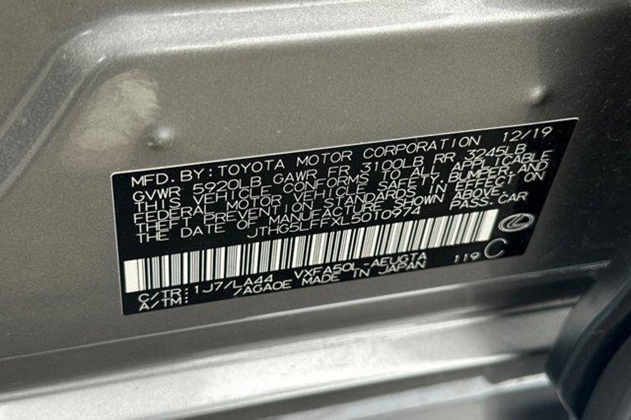 VIN JTHG5LFFXL5010974