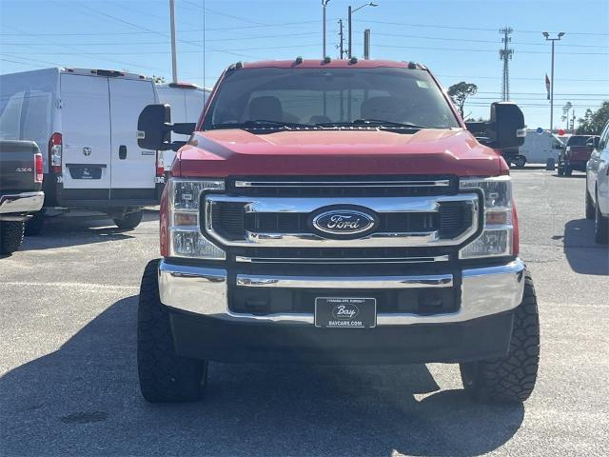 Priced below KBB Fair Purchase Price! 4WD, 110V/400W Outlet, 4-Wheel Disc Brakes, 7 Speakers, ABS brakes, Air Conditioning, Alloy wheels, AM/FM radio: SiriusXM, Auto High-beam Headlights, Brake assist, Bumpers: chrome, Cloth 40/20/40 Split Bench Seat, Compass, Delay-off headlights, Driver door bin, Driver vanity mirror, Dual front impact airbags, Dual front side impact airbags, Electronic Stability Control, Emergency communication system: SYNC 3 911 Assist, Exterior Parking Camera Rear, Front anti-roll bar, Front Center Armrest w/Storage, Front License Plate Bracket, Front reading lights, Fully automatic headlights, GVWR: 10,000 lb Payload Package, Heated door mirrors, Illuminated entry, Low tire pressure warning, Order Code 603A, Outside temperature display, Overhead airbag, Overhead console, Panic alarm, Passenger door bin, Passenger vanity mirror, Platform Running Boards, Power door mirrors, Power steering, Power windows, Privacy Glass, Radio data system, Radio: AM/FM Stereo/MP3 Player, Rear reading lights, Rear step bumper, Remote keyless entry, Security system, SiriusXM Radio, Speed control, Split folding rear seat, Steering wheel mounted audio controls, SYNC 3 Communications & Entertainment System, Tachometer, Telescoping steering wheel, Tilt steering wheel, Traction control, Trip computer, Turn signal indicator mirrors, Variably intermittent wipers, Wheels: 18 Sparkle Silver Painted Cast Aluminum, 4WD. Race Red 2021 Ford F-250SD XLT Custom Wheels, Lifted 4WD 10-Speed Automatic Power Stroke 6.7L V8 DI 32V OHV Turbodiesel