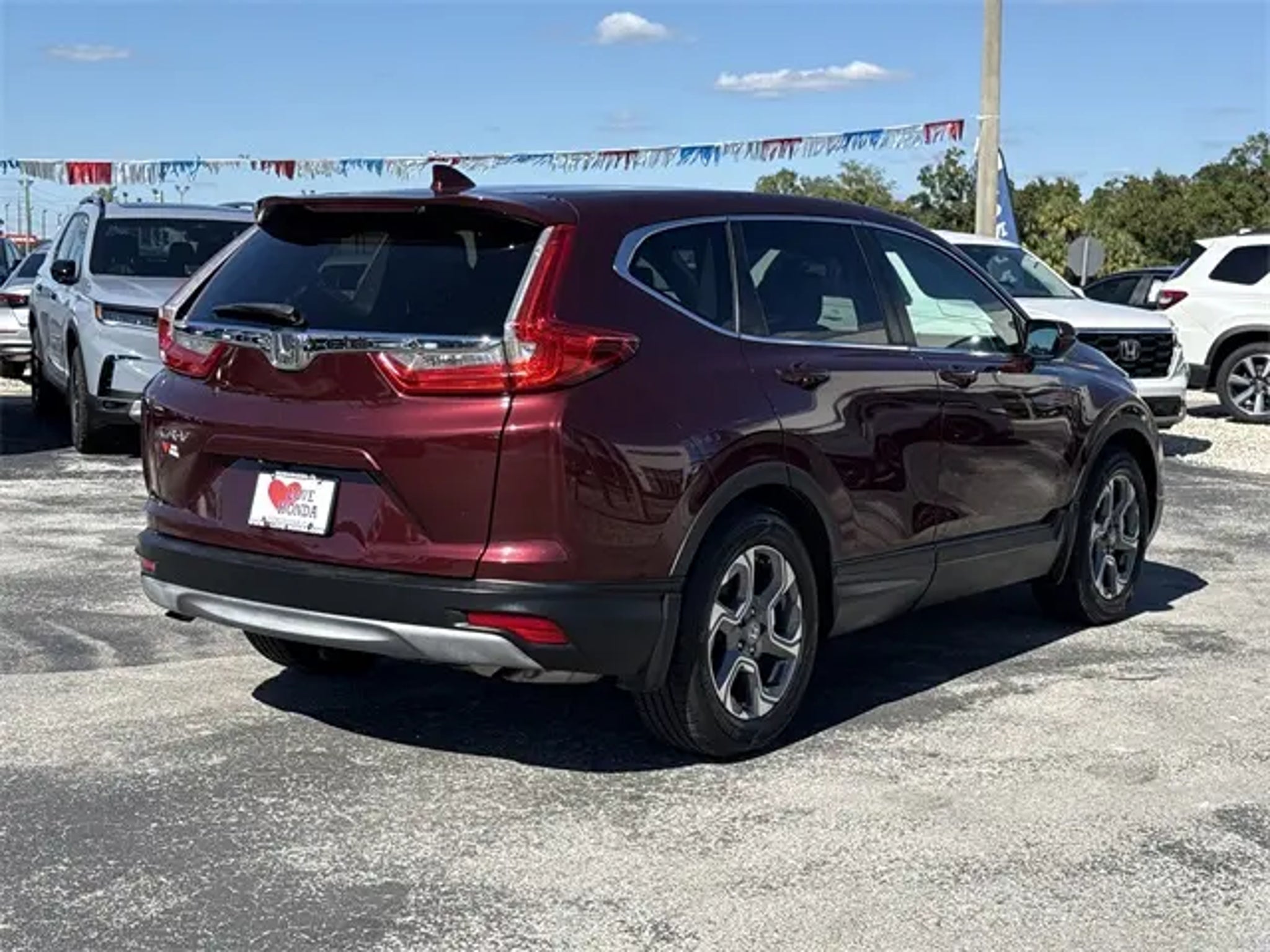 18 Alloy Wheels, 4-Wheel Disc Brakes, 5.64 Axle Ratio, 8 Speakers, ABS brakes, Air Conditioning, Alloy wheels, AM/FM radio: SiriusXM, Apple CarPlay/Android Auto, Auto High-beam Headlights, Auto-dimming Rear-View mirror, Automatic temperature control, Blind Spot Information (BSI) System warning, Brake assist, Bumpers: body-color, Compass, Cruise Control, Delay-off headlights, Driver door bin, Driver vanity mirror, Dual front impact airbags, Dual front side impact airbags, Electronic Stability Control, Four wheel independent suspension, Front anti-roll bar, Front Bucket Seats, Front Center Armrest, Front dual zone A/C, Front fog lights, Front reading lights, Fully automatic headlights, Garage door transmitter: HomeLink, Heated door mirrors, Heated Front Bucket Seats, Heated front seats, Illuminated entry, Leather Seat Trim, Leather Shift Knob, Low tire pressure warning, Memory seat, Occupant sensing airbag, Outside temperature display, Overhead airbag, Overhead console, Panic alarm, Passenger door bin, Passenger vanity mirror, Power door mirrors, Power driver seat, Power Liftgate, Power moonroof, Power passenger seat, Power steering, Power windows, Radio data system, Radio: AM/FM/HD/SiriusXM Audio System, Rear anti-roll bar, Rear seat center armrest, Rear View Camera, Rear window defroster, Rear window wiper, Remote keyless entry, Security system, Speed-sensing steering, Speed-Sensitive Wipers, Split folding rear seat, Spoiler, Steering wheel mounted audio controls, Tachometer, Telescoping steering wheel, Tilt steering wheel, Traction control, Trip computer, Turn signal indicator mirrors, and Variably intermittent wipers. 18 Alloy Wheels, 4-Wheel Disc Brakes, 5.64 Axle Ratio, 8 Speakers, ABS brakes, Air Conditioning, Alloy wheels, AM/FM radio: SiriusXM, Apple CarPlay/Android Auto, Auto High-beam Headlights, Auto-dimming Rear-View mirror, Automatic temperature control, Blind Spot Information (BSI) System warning, Brake assist, Bumpers: body-color, Compass, Cruise Control, Delay-off headlights, Driver door bin, Driver vanity mirror, Dual front impact airbags, Dual front side impact airbags, Electronic Stability Control, Four wheel independent suspension, Front anti-roll bar, Front Bucket Seats, Front Center Armrest, Front dual zone A/C, Front fog lights, Front reading lights, Fully automatic headlights, Garage door transmitter: HomeLink, Heated door mirrors, Heated Front Bucket Seats, Heated front seats, Illuminated entry, Leather Seat Trim, Leather Shift Knob, Low tire pressure warning, Memory seat, Occupant sensing airbag, Outside temperature display, Overhead airbag, Overhead console, Panic alarm, Passenger door bin, Passenger vanity mirror, Power door mirrors, Power driver seat, Power Liftgate, Power moonroof, Power passenger seat, Power steering, Power windows, Radio data system, Radio: AM/FM/HD/SiriusXM Audio System, Rear anti-roll bar, Rear seat center armrest, Rear View Camera, Rear window defroster, Rear window wiper, Remote keyless entry, Security system, Speed-sensing steering, Speed-Sensitive Wipers, Split folding rear seat, Spoiler, Steering wheel mounted audio controls, Tachometer, Telescoping steering wheel, Tilt steering wheel, Traction control, Trip computer, Turn signal indicator mirrors, Variably intermittent wipers. 2017 Honda CR-V EX-L Red Priced below KBB Fair Purchase Price! 28/34 City/Highway MPG Awards: * 2017 KBB.com 10 Most Awarded Brands * 2017 KBB.com Brand Image Awards Kelley Blue Book Brand Image Awards are based on the Brand Watch(tm) study from Kelley Blue Book Market Intelligence. Award calculated among non-luxury shoppers. For more information, visit Kelley Blue Book is a registered trademark of Kelley Blue Book Co., Inc. Reviews: * Plenty of adult-sized room in both seating rows; more cargo capacity than most rivals; rear seatbacks fold flat at the tug of a lever; appealing roster of tech and safety features. Source: Edmunds All vehicles have the Red Alert rear end deterren