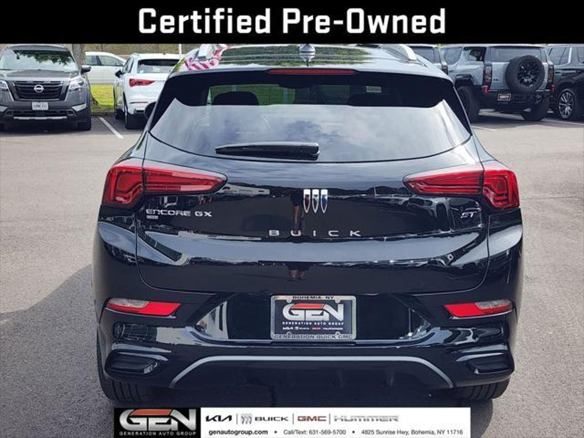 Certified. 2024 Buick Encore GX Sport Touring AWD Ebony Twilight Metallic | 9-Speed Automatic | ECOTEC 1.3L Turbo 26/28 City/Highway MPG Buick Certified Pre-Owned Details: Roadside Assistance 172 Point Inspection Warranty Deductible: $0 Limited Warranty: 12 Month/12,000 Mile (whichever comes first) from certified purchase date Transferable Warranty 24 months/24,000 miles (whichever comes first) Certified Pre-Owned Scheduled Maintenance Plan and 3 days/150 miles (whichever comes first) Vehicle Exchange Program 1 month of OnStar Safety & Security Plan, Navigation Services, Remote Access Plan, and 1 month or 3GB of 4G LTE data (whichever comes first) Powertrain Limited Warranty: 72 Month/100,000 Mile (whichever comes first) from original in-service date Vehicle History Thank you for choosing Generation Buick GMC, Long Island's Newest Buick GMC dealer!