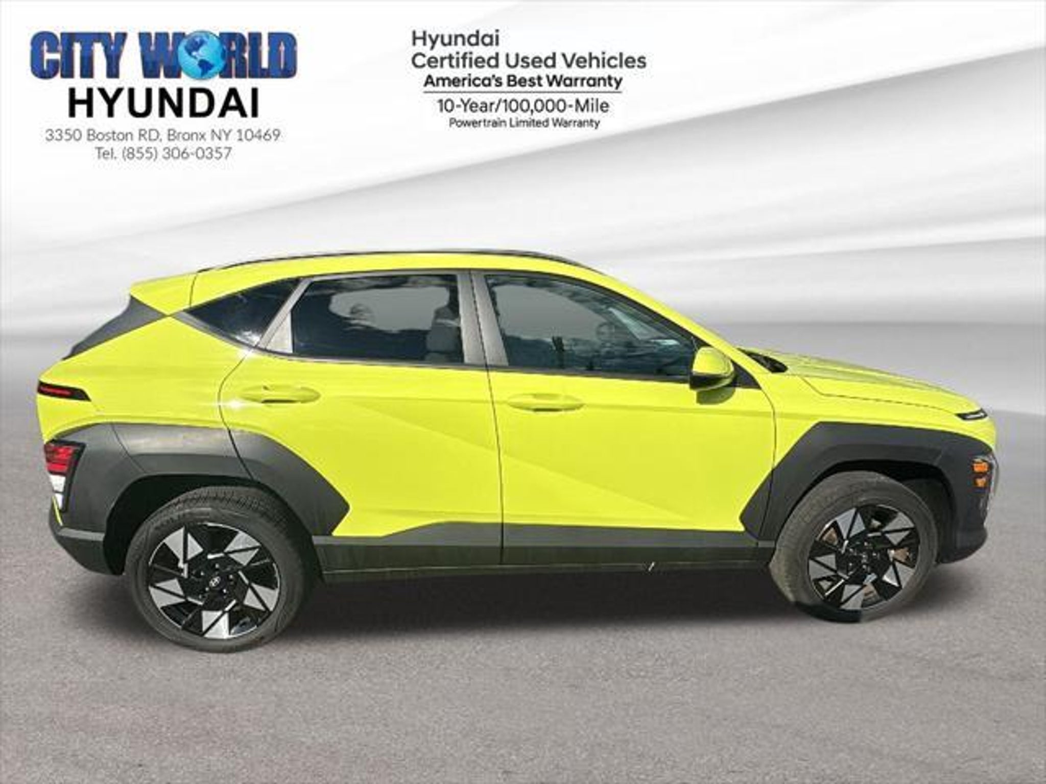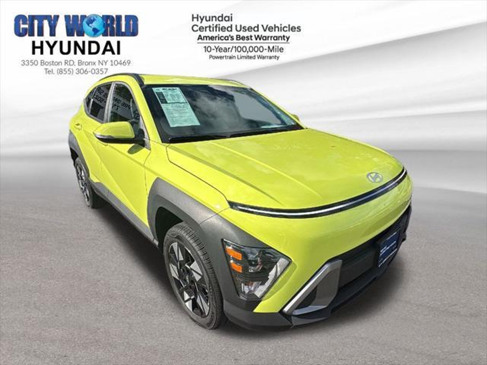 City World Hyundai is proud to present you with another True Market Priced Pre-Owned Vehicle. Priced to sell fast, $175 Doc FEE not included on price, in our location we have full transparent pricing policy, we dont charge any DEALER or PREP FEES. Simply Best price listed online Taxes based on your registration address and Motor Vehicle. This 2024 Hyundai Kona SEL Hyundai Certified Used Vehicles is loaded with the following Factory Options: Hyundai Certified Used Vehicles Certified Convenience Package (12.3 LCD Cluster, Auto-Dimming Rear-View Mirror, Column-Mounted Shift-By-Wire, FCA w/Junction Turning, Direct Oncoming, Heated Front Seats, Highway Driving Assist 1 (HDA 1), Hyundai Digital Key 2 Touch, LED Interior Lighting, Navigation-Based Smart Cruise Control (NSCC), Option Group 02, Paddle Shifters, Power Windows w/Front Auto-Down/Up, Radio: AM/FM/HD Radio/SiriusXM w/Navigation, Wi-Fi Hotspot, and Wireless Device Charging), Hyundai Certified Used Vehicles Certified, 4-Wheel Disc Brakes, 6 Speakers, 6.052 Axle Ratio, ABS brakes, Air Conditioning, Alloy wheels, AM/FM radio: SiriusXM, Apple CarPlay & Android Auto, Auto High-beam Headlights, Automatic temperature control, Brake assist, Bumpers: body-color, Cargo Tray, Carpeted Floor Mats, Cloth Seat Trim, Cross Rails, Delay-off headlights, Driver door bin, Driver vanity mirror, Dual front impact airbags, Dual front side impact airbags, Electronic Stability Control, Emergency communication system: Bluelink, Exterior Parking Camera Rear, First Aid Kit, Four wheel independent suspension, Front anti-roll bar, Front Bucket Seats, Front Center Armrest, Front dual zone A/C, Front reading lights, Fully automatic headlights, Heated door mirrors, Illuminated entry, Leather Shift Knob, Leather steering wheel, Low tire pressure warning, Occupant sensing airbag, Outside temperature display, Overhead airbag, Panic alarm, Passenger door bin, Passenger vanity mirror, Power door mirrors, Power driver seat, Power steering, Power windows, Radio: AM/FM/HD Radio/SiriusXM Audio System, Rear anti-roll bar, Rear seat center armrest, Rear window defroster, Rear window wiper, Remote keyless entry, Security system, Speed control, Speed-sensing steering, Split folding rear seat, Spoiler, Steering wheel mounted audio controls, Tachometer, Telescoping steering wheel, Tilt steering wheel, Traction control, Trip computer, Turn signal indicator mirrors, Variably intermittent wipers, and Wheels: 18 x 7.0J Glossy Black Alloy!! City World Hyundai in Bronx, NY treats the needs of each individual customer with paramount concern. We know that you have high expectations, and as a car dealer we enjoy the challenge of meeting and exceeding those standards each and every time. Allow us to demonstrate our commitment to excellence!