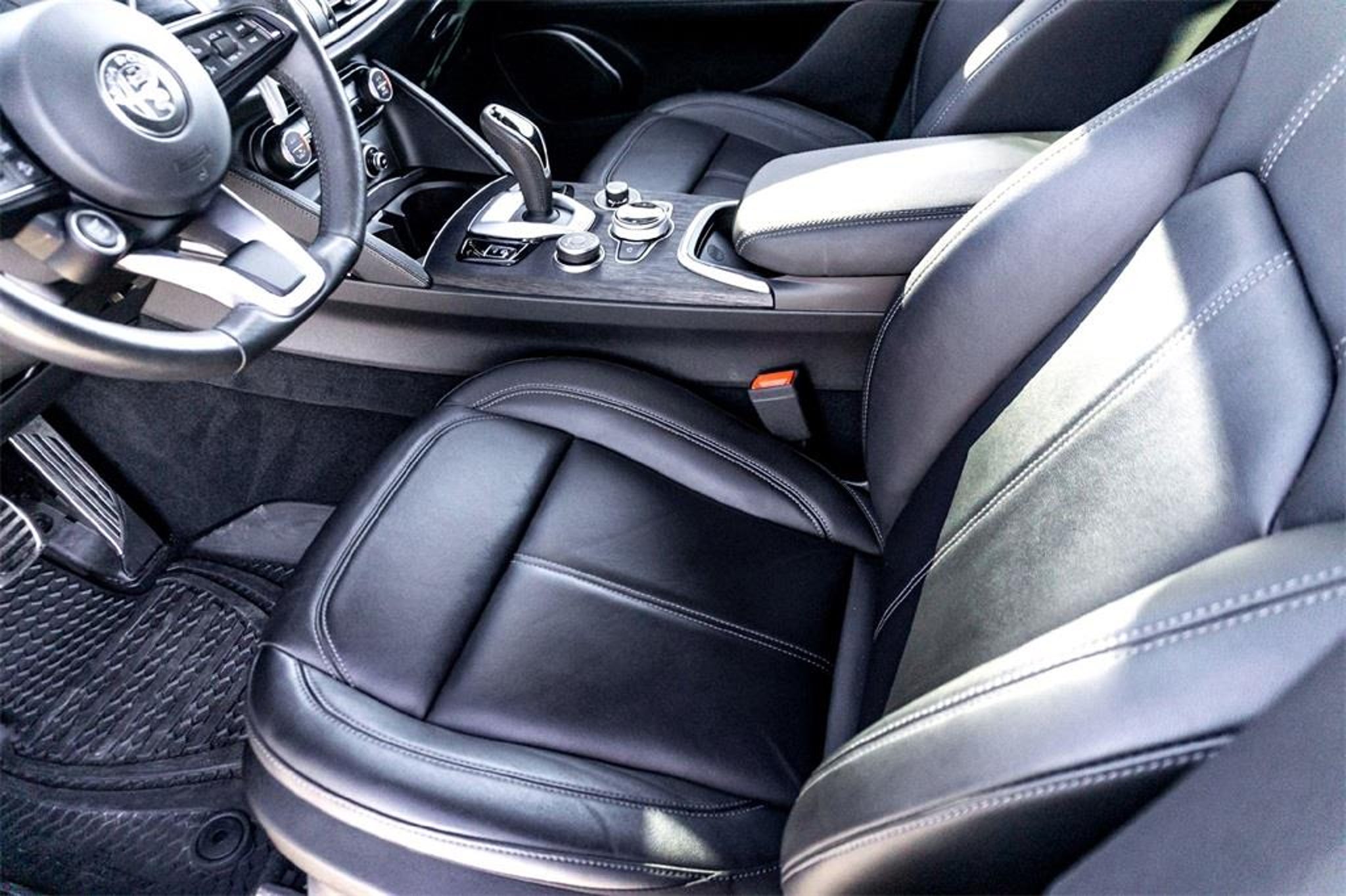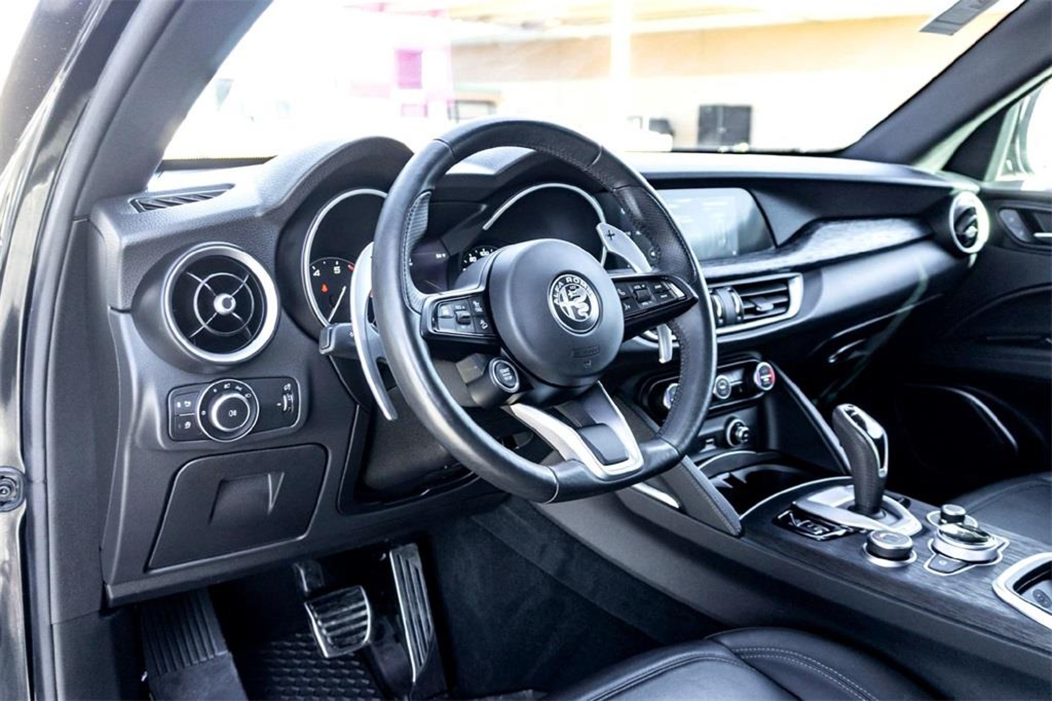We deliver!! We'll bring the test drive to you and completely sanitize the vehicle. If you have a trade, we also conduct accurate remote valuation. When you're satisfied with your selection, complete our online finance application and a member of our team will contact you to schedule delivery. Quick Order Package 22M Sprint, 3.73 Axle Ratio, 4-Wheel Disc Brakes, 8 Speakers, ABS brakes, Air Conditioning, Alloy wheels, AM/FM radio: SiriusXM, Apple CarPlay/Android Auto, Auto High-beam Headlights, Auto-dimming door mirrors, Auto-dimming Rear-View mirror, Automatic temperature control, Brake assist, Bumpers: body-color, Compass, Delay-off headlights, Driver door bin, Driver vanity mirror, Dual front impact airbags, Dual front side impact airbags, Electronic Stability Control, Emergency communication system: SiriusXM Guardian - included trial, Four wheel independent suspension, Front anti-roll bar, Front Bucket Seats, Front Center Armrest, Front dual zone A/C, Front reading lights, Fully automatic headlights, Garage door transmitter, Heated door mirrors, Heated front seats, Heated rear seats, Heated steering wheel, High intensity discharge headlights: Bi-Xenon, Illuminated entry, Knee airbag, Leather Seats, Leather Shift Knob, Leather steering wheel, Low tire pressure warning, Manufacturer's Statement of Origin, Memory seat, Navigation System, Occupant sensing airbag, Outside temperature display, Overhead airbag, Overhead console, Panic alarm, ParkView Rear Back-Up Camera, Passenger door bin, Passenger vanity mirror, Power door mirrors, Power driver seat, Power Liftgate, Power passenger seat, Power steering, Power windows, Radio data system, Radio: AM/FM/HD 8.8 w/Navigation, Rain sensing wipers, Rear anti-roll bar, Rear audio controls, Rear fog lights, Rear reading lights, Rear seat center armrest, Rear window defroster, Rear window wiper, Remote keyless entry, Security system, Speed control, Speed-sensing steering, Speed-Sensitive Wipers, Split folding rear seat, Spoiler, Sport steering wheel, Steering wheel mounted audio controls, Tachometer, Telescoping steering wheel, Tilt steering wheel, Traction control, Trip computer, Turn signal indicator mirrors, Variably intermittent wipers, Wheels: 18 x 8.0 Multi Spoke, and Wheels: 19 x 8.0 Sport 5-Hole Aluminum. Vulcano Black Metallic 2022 Alfa Romeo Stelvio Sprint I4 AWD 22/28 City/Highway MPG
