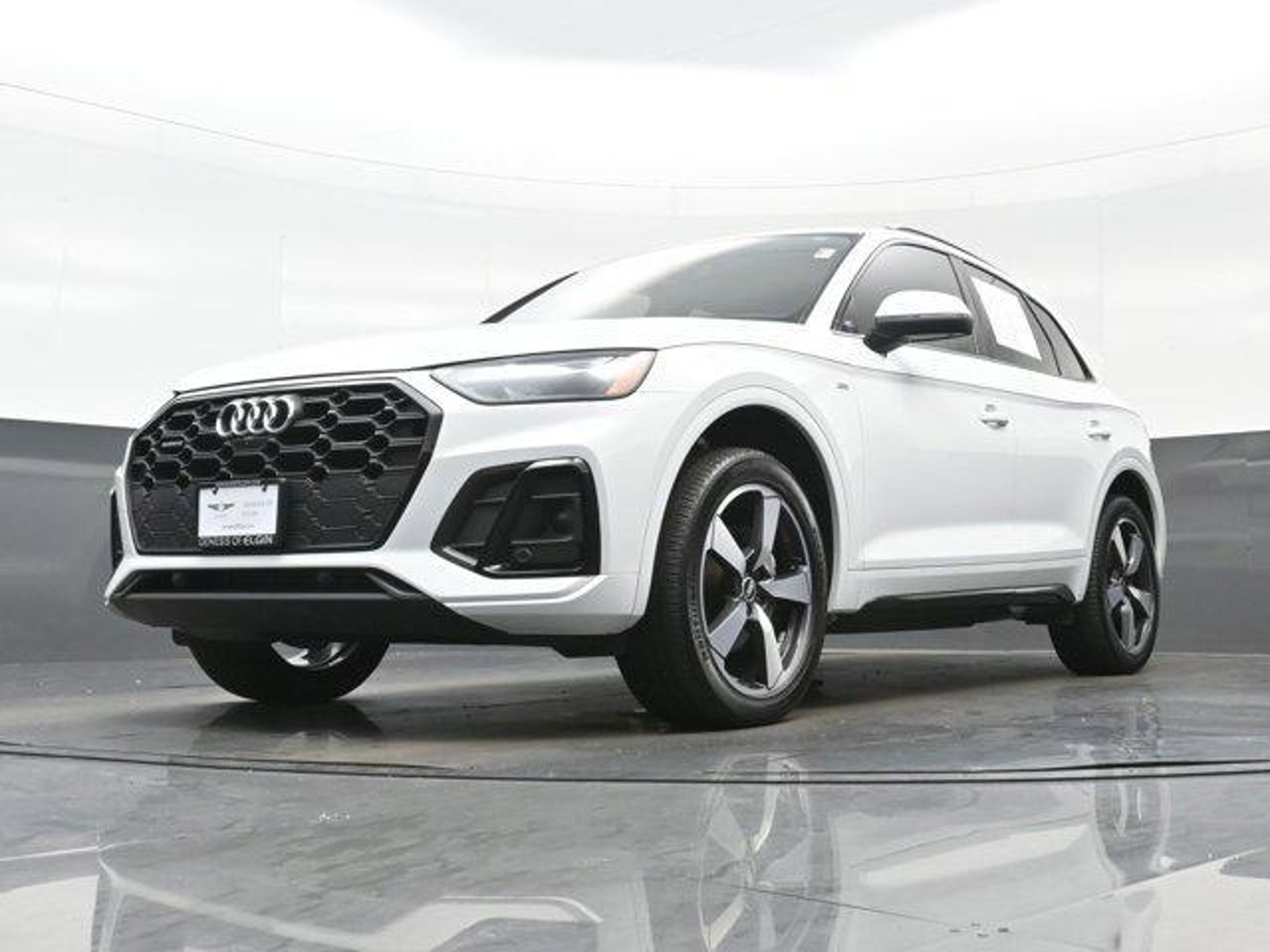 2022 Audi Q5 45 Sline Premium quattro Sporty Luxury, AllWheel Confidence & Advanced Tech Available at Elgin HyundaiElevate your driving experience with the 2022 Audi Q5 45 Sline Premium quattro. This compact luxury SUV delivers the perfect balance of performance, refinement, and utility. With its quattro all-wheel-drive system, sporty Sline styling, and premium comfort, the Q5 is a standout for drivers who want performance and sophistication in one refined package. Now available at Elgin Hyundai, part of the Bob Loquercio Auto Group, this Q5 is designed to elevate both your everyday drive and your weekend adventures.Performance & Driving DynamicsEquipped with a 2.0liter turbocharged 4-cylinder engine, producing approximately 261 horsepower and 273 lb-ft of torque for responsive acceleration.quattro all-wheel-drive system provides excellent traction and stability in all weather conditions.7-speed S tronic dual-clutch automatic transmission delivers smooth, lightning-fast shifts and efficient performance.Sport-tuned suspension in Sline trim offers a firmer ride and sharper handling for spirited driving.Drive Mode selector (Comfort, Auto, Dynamic, Individual) allows you to tailor driving dynamics to your mood and conditions.Strong braking performance and precise steering deliver confidence at every turn.Exterior Design & Sline StylingBold and athletic Sline exterior design with aggressive body accents and sporty grille.LED Matrix headlights and LED daytime running lights for superior illumination and modern aesthetics.Sporty 20-inch Sline alloy wheels (or optional upgrades) for enhanced visual presence.Gloss-black exterior trim, Sline badging, and a more aggressive rear diffuser elevate the SUVs style.Power liftgate for easy cargo access, even with your hands full.Heated, power-adjustable side mirrors with integrated turn signals.Subtle roof rails for added utility and a refined look.Luxurious & Comfortable InteriorPremium interior with Sline sport seats wrapped in leather and Alcantara for both comfort and performance feel.Heated front seats to keep you warm in colder weather.Power-adjustable drivers seat with memory settings ensures personalized comfort.Dual-zone automatic climate control keeps the cabin perfectly balanced.Flat-bottomed steering wheel with Sline badge and paddle shifters for a dynamic, sporty grip.Ambient interior lighting provides a refined, upscale atmosphere.Ample rear legroom and supportive back seatsgreat for passengers and long journeys.Split-folding rear seats expand cargo space for gear or longer items.Technology & InfotainmentMMI touch display with intuitive interface for audio, navigation, and vehicle settings.Audi virtual cockpit plus: fully digital 12.3 gauge cluster with customizable views (including performance telemetry).Apple CarPlay and Android Auto integration for seamless smartphone connectivity.Premium Audi sound system (or available Bang & Olufsen upgrade) for immersive in-cabin audio.Multiple USB ports and a wireless charging pad help keep devices powered.Keyless Go keyless entry and ignition for convenience.Available head-up display projects key driving data directly in your line of sight.Safety & Driver AssistanceStandard Audi pre sense front system detects potential collisions and helps mitigate impact.Lane departure warning and active assist help keep you centered and safe.Blind Spot Monitoring and Rear Cross Traffic Alert improve situational awareness.Adaptive cruise control for more comfortable long-distance driving.Parking sensors plus rearview camera help with tight parking and city navigation.Multiple airbags, stability control, and strong chassis structur