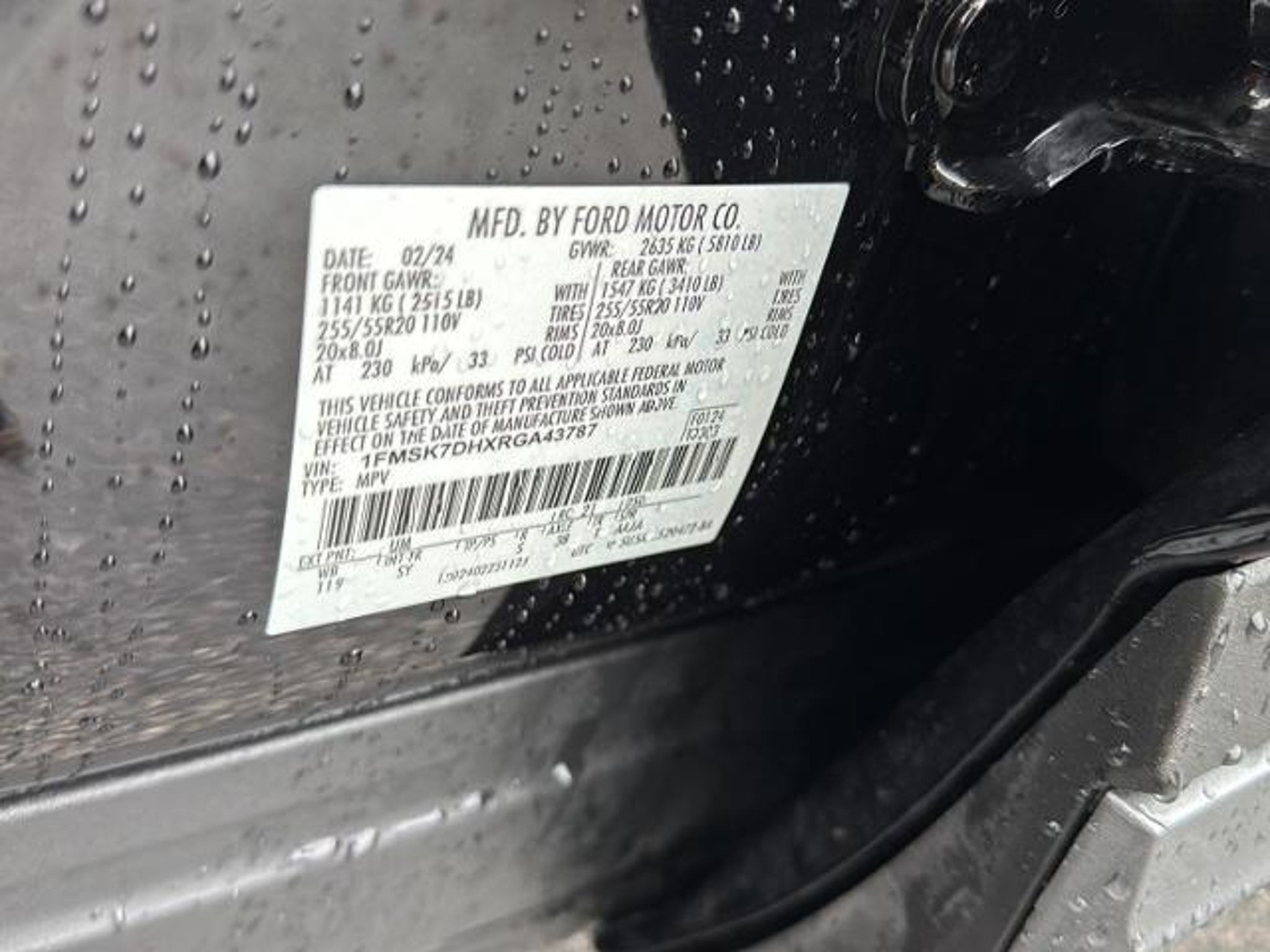 VIN 1FMSK7DHXRGA43787