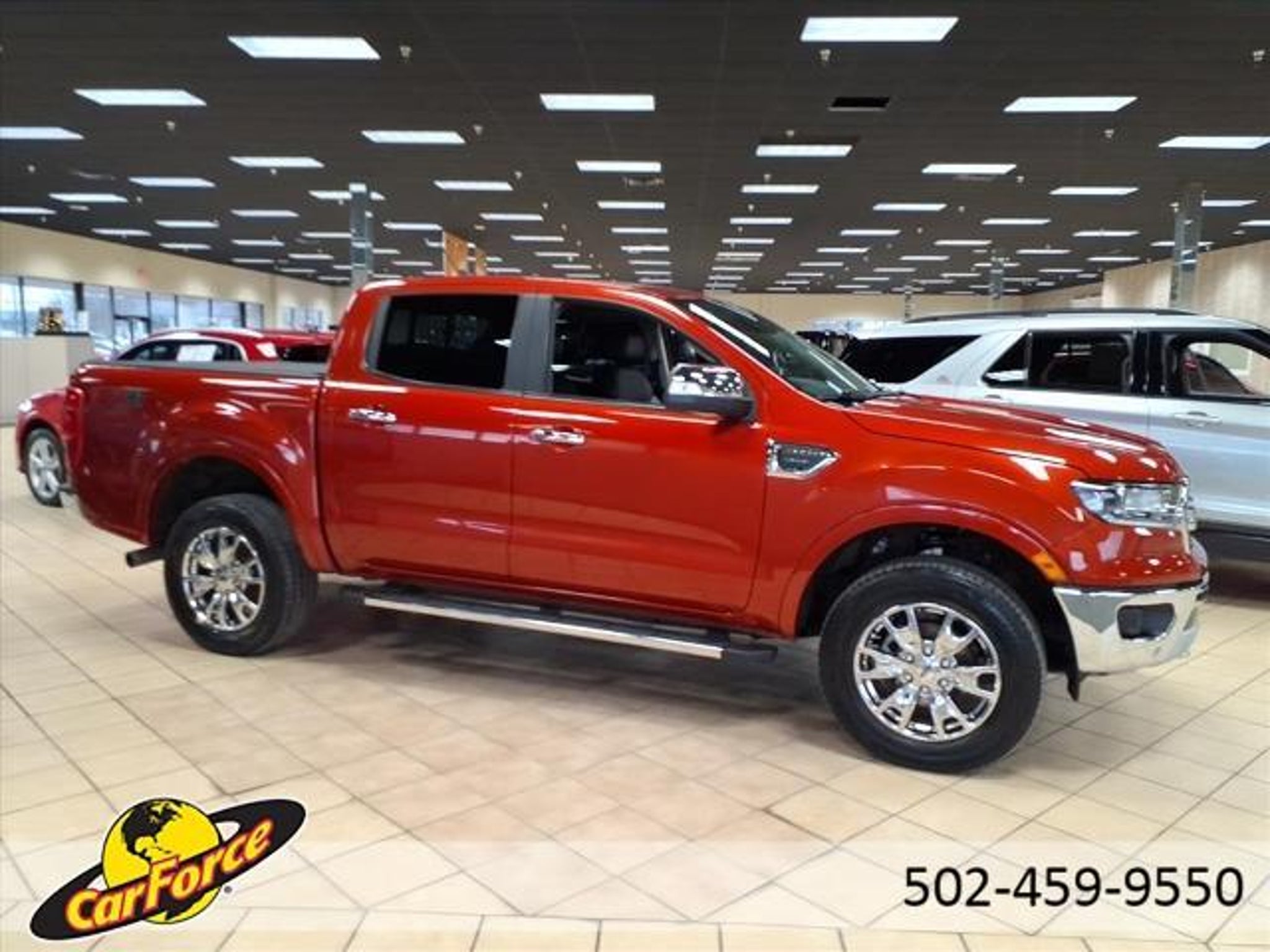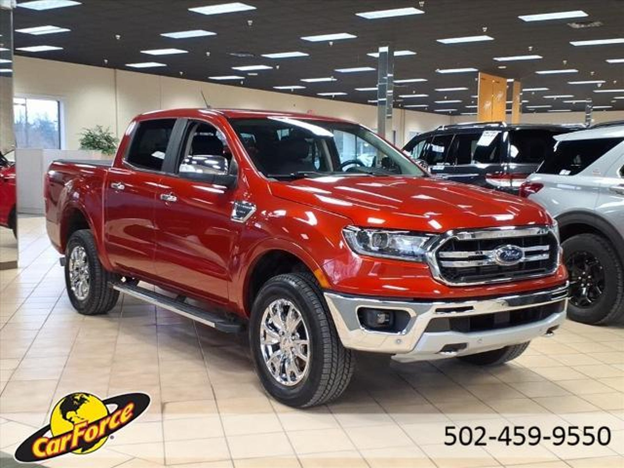 CARFAX One-Owner. Clean CARFAX. Chili Pepper Red 2019 Ford Ranger Lariat 4WD 10-Speed Automatic EcoBoost 2.3L I4 GTDi DOHC Turbocharged VCT 4WD, 4x4 FX4 Off-Road Bodyside Decal, Adaptive Cruise Control, Class IV Trailer Hitch Receiver, Electronic-Locking Rear Differential, Equipment Group 501A Mid, Exposed Front Tow Hooks, FX4 Off-Road Package, Navigation, Off-Road Screen in Cluster, Off-Road Tuned Suspension, Radio: B&O Sound System by Bang & Olufsen, Rain-Sensing Wipers, Remote Start, SiriusXM Satellite Radio, SYNC 3, Technology Package, Terrain Management System, Trailer Tow Package, Wheels: 18 Chrome-Like PVD, Windshield Wiper De-Icer. Welcome to Carforce by Bill Collins Ford proudly serving the Louisville, Shelbyville, Mt Washington, Elizabethtown, Crestwood, Prospect, Jeffersonville, Clarksville and all of Kentuckiana. We are conveniently located on Bardstown Road just 3 miles south of the Watterson Expressway. Odometer is 1276 miles below market average! Awards: * 2019 KBB.com 10 Favorite New-for-2019 Cars