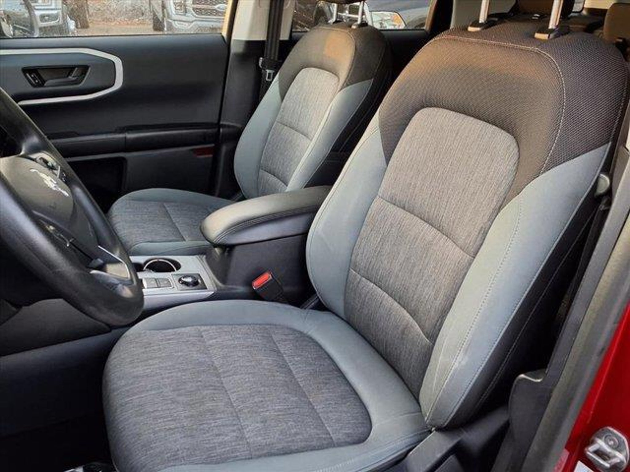 This vehicle is a 2021 Ford Bronco Sport Big Bend with an all wheel drive, 1.5 liter EcoBoost Turbo I3 181hp 190 lb-ft engine, direct injection. It has a rapid red metallic tinted clearcoat (d4) exterior and a medium dark slate (qv) interior. It has a fuel economy of 25 mpg in the city and 28 mpg on the highway, making it an efficient choice for those looking to save on gas. It also has a crash test rating of 5 out of 5 stars, making it safe for all passengers. This vehicle also comes with many features such as touch screen display, Bluetooth audio connection, blind spot sensor, hill start assist, on demand four wheel drive, Apple Carplay ready, and Bluetooth phone connectivity. With its impressive 76,127 miles, this car is sure to provide many years of reliable service. Call Bill Brown Ford Pre-owned at (734) 522-0030 to confirm availability and schedule a no-obligation test drive!