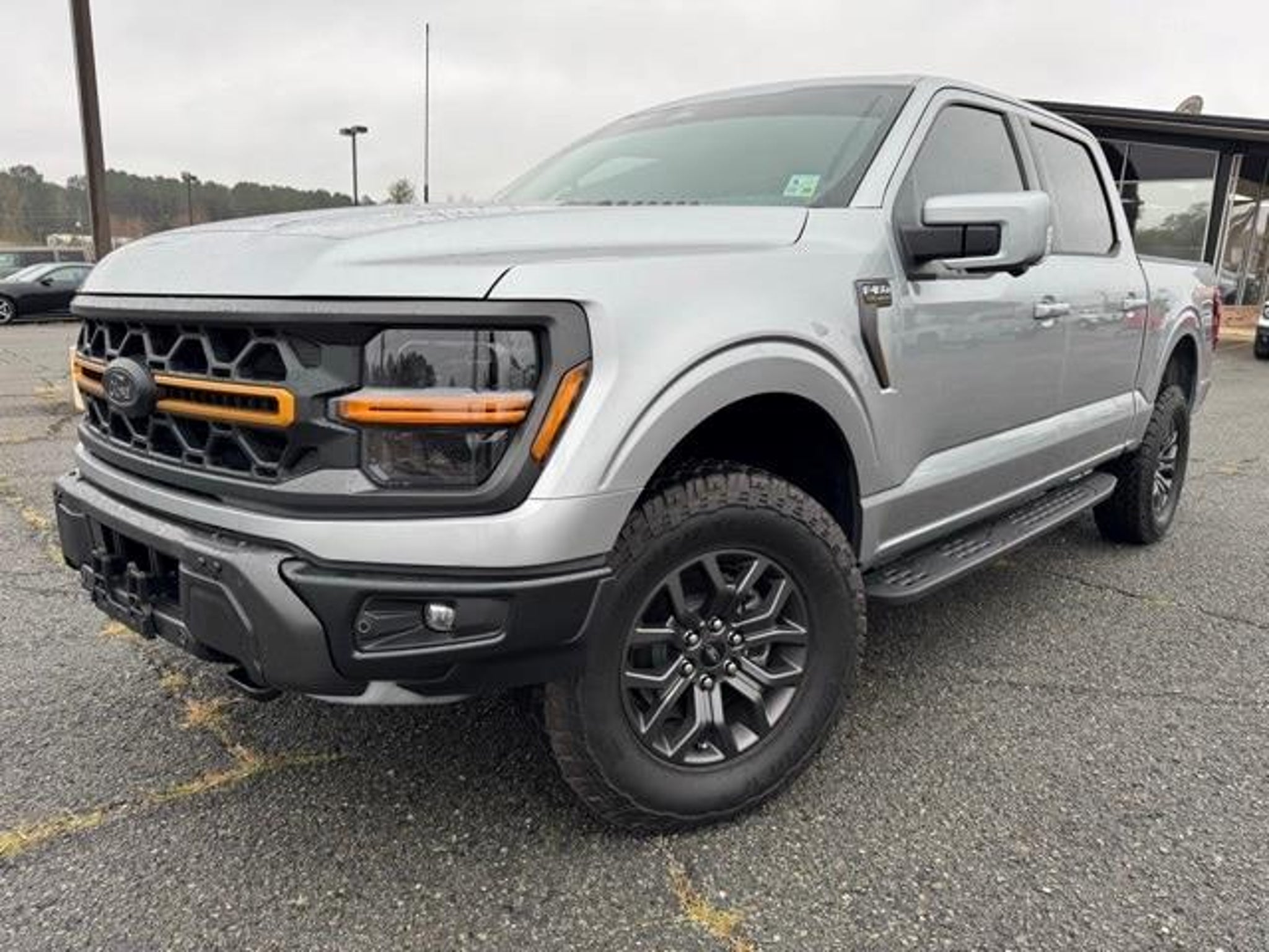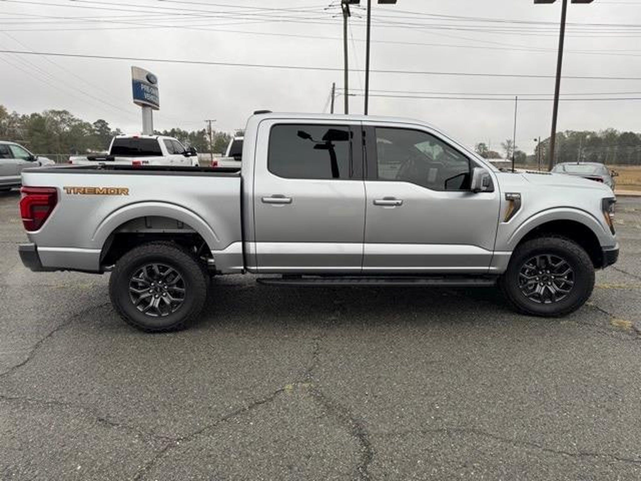 Heads-Up Display, B&O Unleashed Sound, Heated and Cooled Seats, Power Tailgate, Adaptive Cruise Control, Spray In Bedliner, Heated Steering Wheel, BlueCruise, Tow/Haul Package, 4WD, Ambient Lighting, Electronic Locking w/3.73 Axle Ratio, Front Axle w/Torsen Differential, LED Box Lighting, Modular Front Bumper & Carbon Black Rear Bumper, Rain-Sensing Wipers, Two-Speed Automatic AWD w/Mechanical Locking 4WD, Wheels: 18 Alloy w/Dark Matte Finish, Wireless Charging. CARFAX One-Owner. Clean CARFAX. Silver Metallic 2025 Ford F-150 Tremor 4WD 10-Speed Automatic 5.0L V8 Recent Arrival! See more photos at HebertsFord.com.