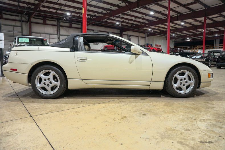 GR Auto Gallery is excited to present this 1993 Nissan 300ZX Convertible. Finished in Pearl White with a fresh black convertible top, this Z32 captures one of Nissan's most iconic designs of the 1990s. The clean lines, wide stance and factory 16 inch silver Nissan wheels give it that unmistakable sports car look, while the new top adds a crisp, well cared for appearance. The convertible layout adds open air enjoyment to what was already one of the most advanced sports cars of its era.