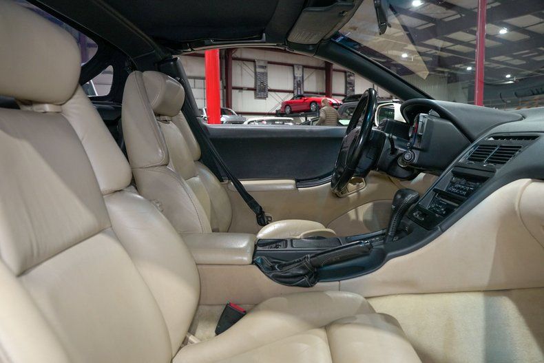 Inside, the car features its original tan leather interior, still carrying the sleek, driver focused layout that made the 300ZX so ahead of its time. The power driver seat, power windows, mirrors and locks, cruise control and air conditioning all add comfort to the sporty cabin. The signature door mounted seat belts remain a distinctive element of early 90s Z design, and everything has the classic Nissan look and feel of the era.