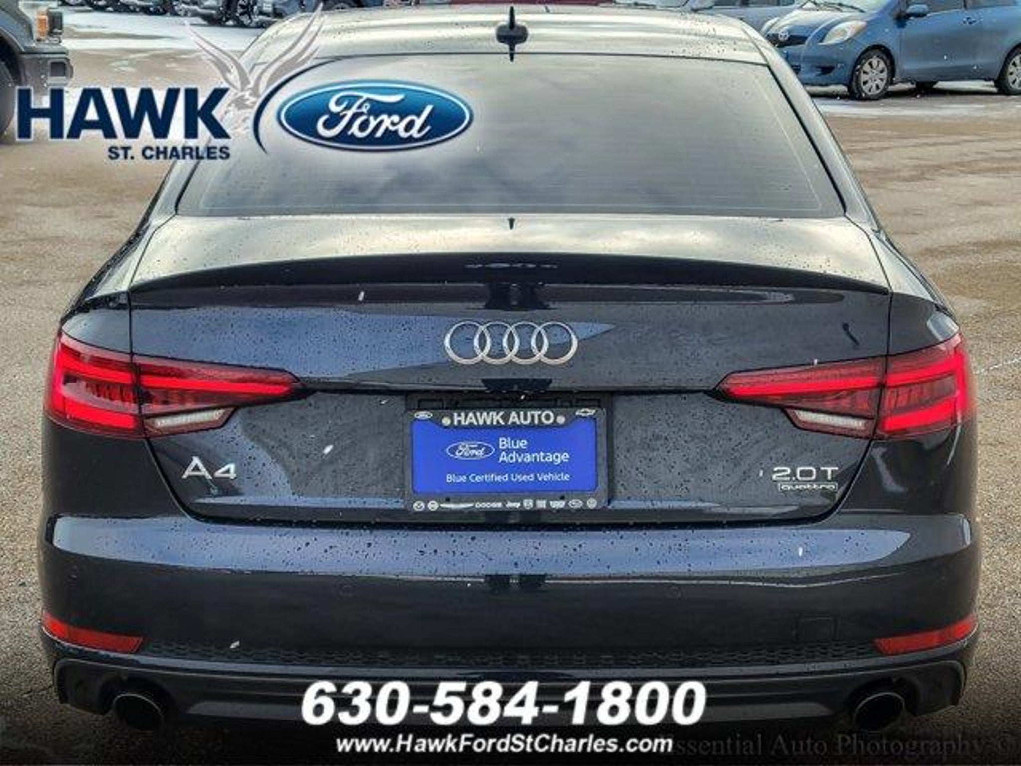 2018 Audi A4 2.0T Premium Plus quattro 2.0T Premium PlusMoonlight Blue 2.0L I4 TFSI DOHC quattroCome see this 2018 Audi A4 2.0T Premium Plus! It's the one you've been longing for! This A4 comes equipped with these options:7-Speed Automatic S tronic, quattro, Black Leather, 3-Spoke Flat Bottom Steering Wheel w/S Badge, Audi Connect PRIME & PLUS Online Services, Audi smartphone interface (Apple CarPlay/Android Auto), Audi Virtual Cockpit, Automatic temperature control, Black Optic Exterior Package, Black Optic Plus Package, Carbon Fiber Trunk Lid Spoiler, Front dual zone A/C, Front fog lights, Heated 3-Step Front Bucket Seats, Heated front seats, High intensity discharge headlights: Xenon plus, High-Gloss Black Exterior Side Mirrors w/Memory, High-Gloss Black Side Sill Blades & Rr Lip Spoiler, Leather Seating Surfaces, Leatherette Covered Center Console & Door Armrests, Navigation & Telematics Package, Piano Black Inlays, Power driver seat, Power passenger seat, Radio: Audi MMI Navigation Plus w/MMI Touch, Rain sensing wipers, Red Brake Calipers, Remote keyless entry, Titanium Black Exterior Side Mirrors, Titanium Black Singleframe Grille, Wheels: 18 10-Y-Spoke Gloss Black.24/34 City/Highway MPGCertified. Certification Program Details: Certification Program Details: The Ford Blue Advantage BLUE CERTIFIED program helps provide some peace of mind when buying a previously owned vehicle. A Hawk Ford Certified Technician has fully inspected and reconditioned the vehicle. The vehicle is also eligible for the following coverage when registered Blue Certified with Ford: *90-day/4,000-mile Comprehensive Limited Warranty coverage (whichever comes first). *139-Point Inspection by a Hawk Ford Certified Technician. *11,000 FordPassTM Rewards Points to use toward scheduled maintenance visits or other rewards. *CARFAXÂ Vehicle History Report. *SiriusXMÂ complimentary 3-month trial. *Ford cars, SUVs and trucks (up to 350-Series) that are current or nine previous model years and have fewer than 120,000 miles can qualify, including many non-Ford vehicles. *A full tank of fuel, fresh oil and filter, and new wiper blades. *Service available at any Ford Dealer in the 50 states. *Pricing discounts for extended service contracts adding additional coverage to your vehicle in terms of miles, time, and covered components.Awards:* 2018 KBB.com 10 Most Awarded BrandsHere at Hawk Ford of St. Charles, we always strive to ensure that you enjoy the best car-shopping and dealership experience. We make that possible by offering a vast col